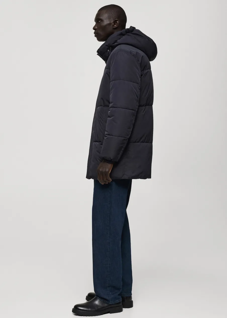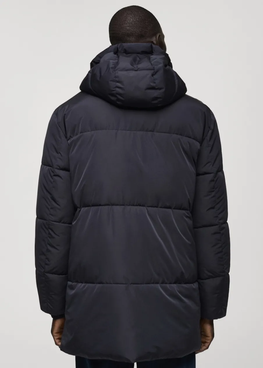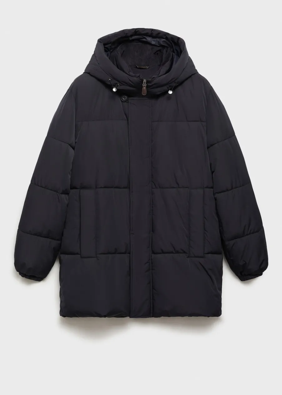 Materiały z recyklingu. Model pikowany. Model długi. Zapięcie z przodu. Model prosty. Długi rękaw. Dwie kieszenie z wypustkami z przodu. Zapięcie na zamek i zatrzaski z przodu. Wstawki ze sztruksu od wewnątrz. Model ma 185 cm wzrostu i nosi rozmiar M. Water Repellent: trwałe wykończenie tego modelu chroni przed lekkim deszczem, odpycha cząsteczki wody i krople deszczu. Windproof: ten wytrzymały materiał zapewnia ochronę przed wiatrem dla większego komfortu podczas aktywności na świeżym powietrzu. Kaptur. Ciężka struktura.