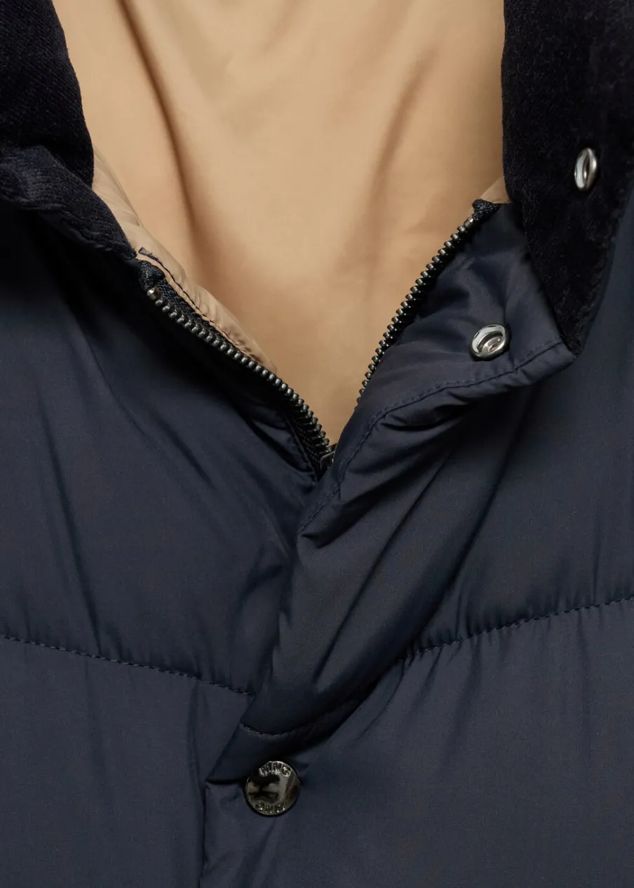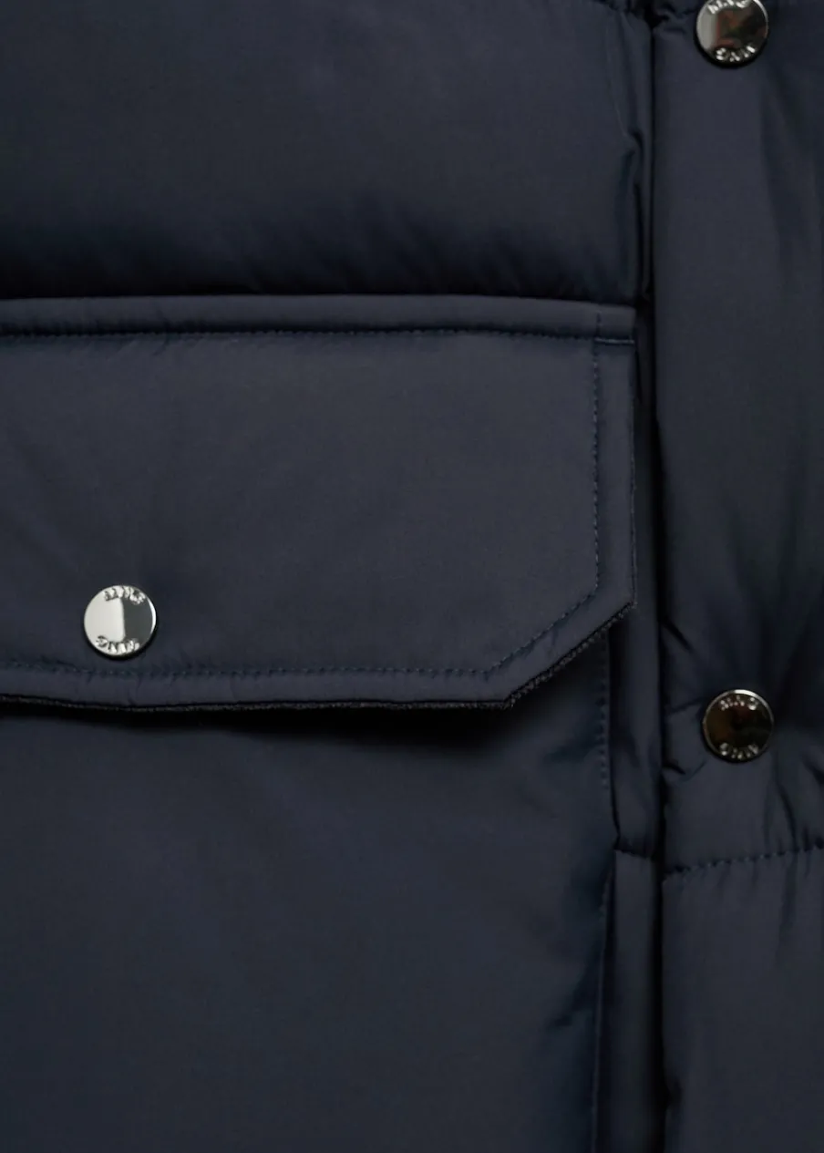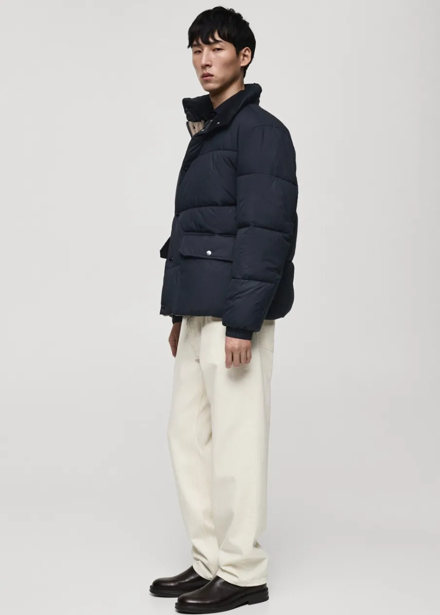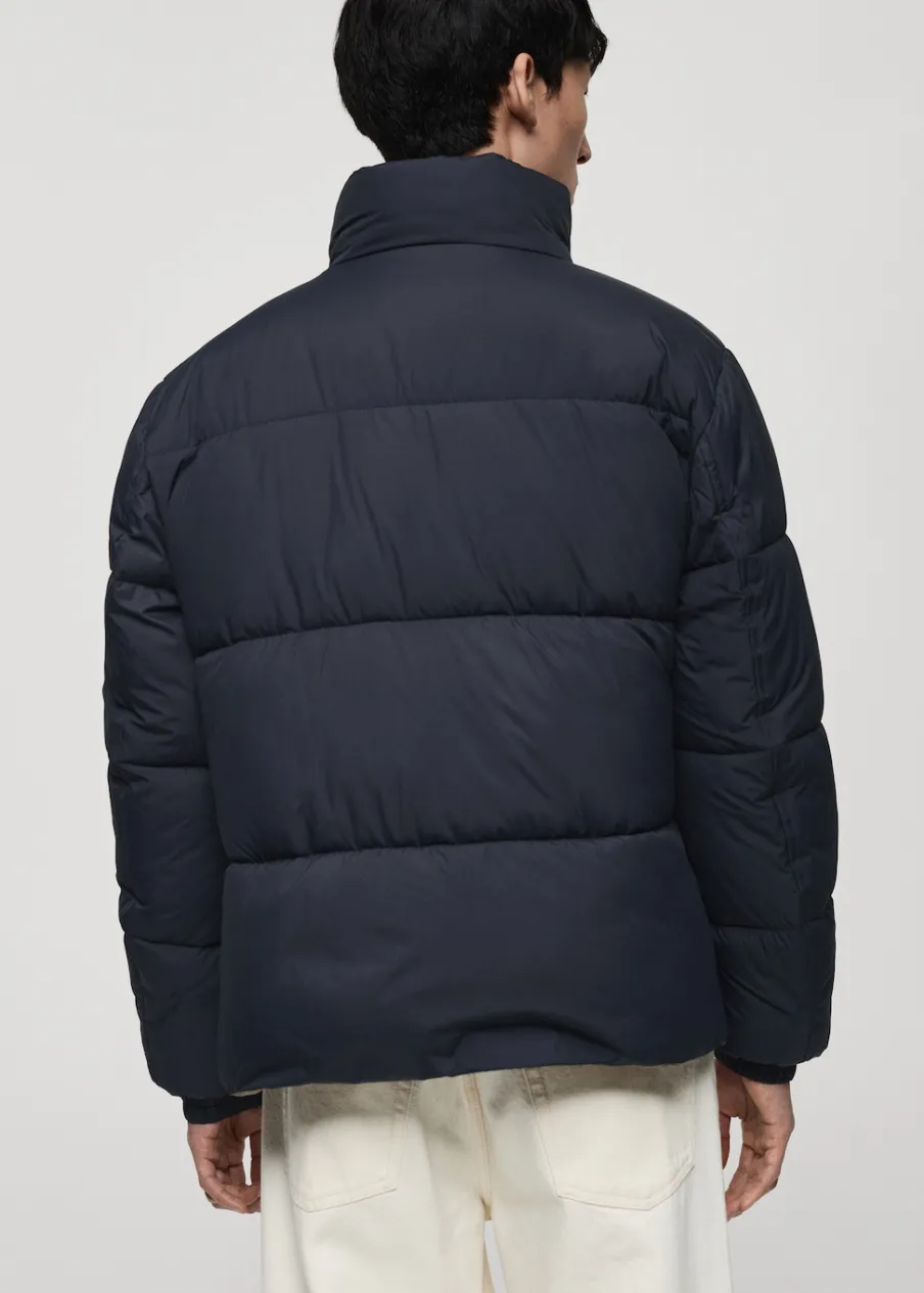 Materiały z recyklingu. Model pikowany. Water Repellent: trwałe wykończenie tego modelu chroni przed lekkim deszczem, odpycha cząsteczki wody i krople deszczu. Półgolf. Wewnętrzna kieszeń. Model ma 185 cm wzrostu i nosi rozmiar M. Zapięcie na zamek i zatrzaski z przodu. Dwie naszywane kieszenie z patkami na guzik z przodu.