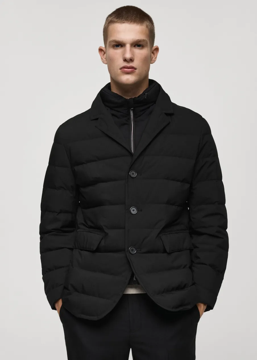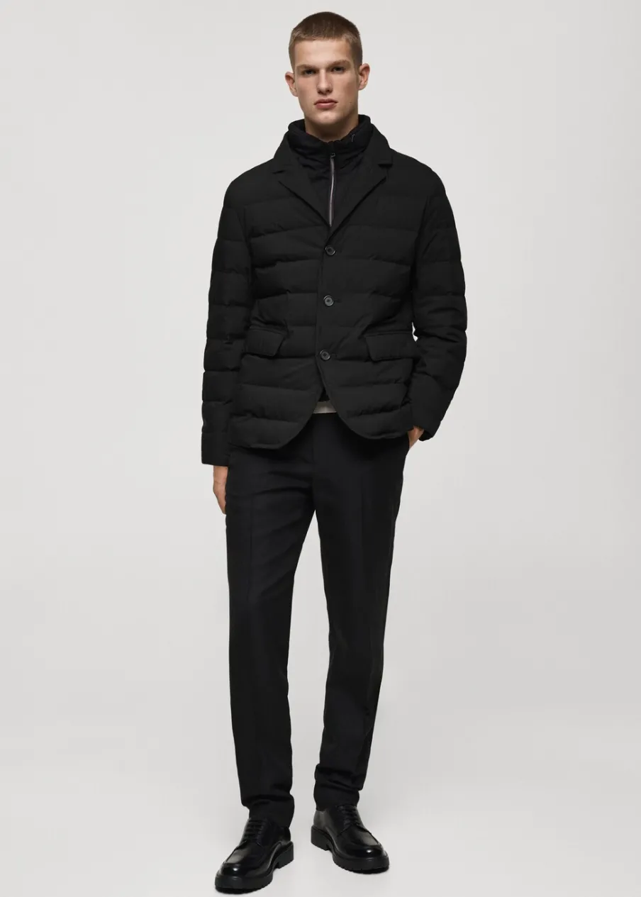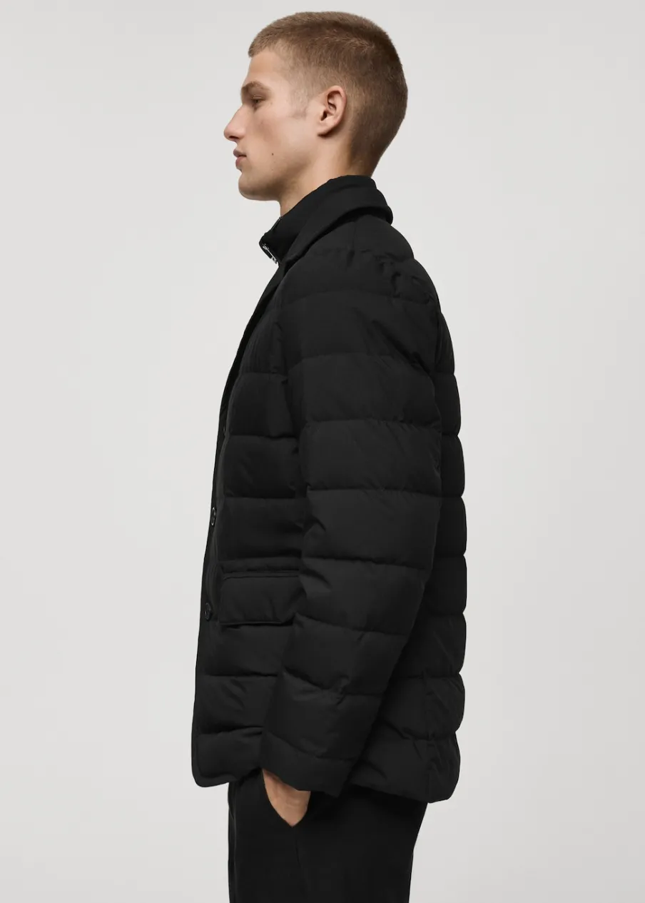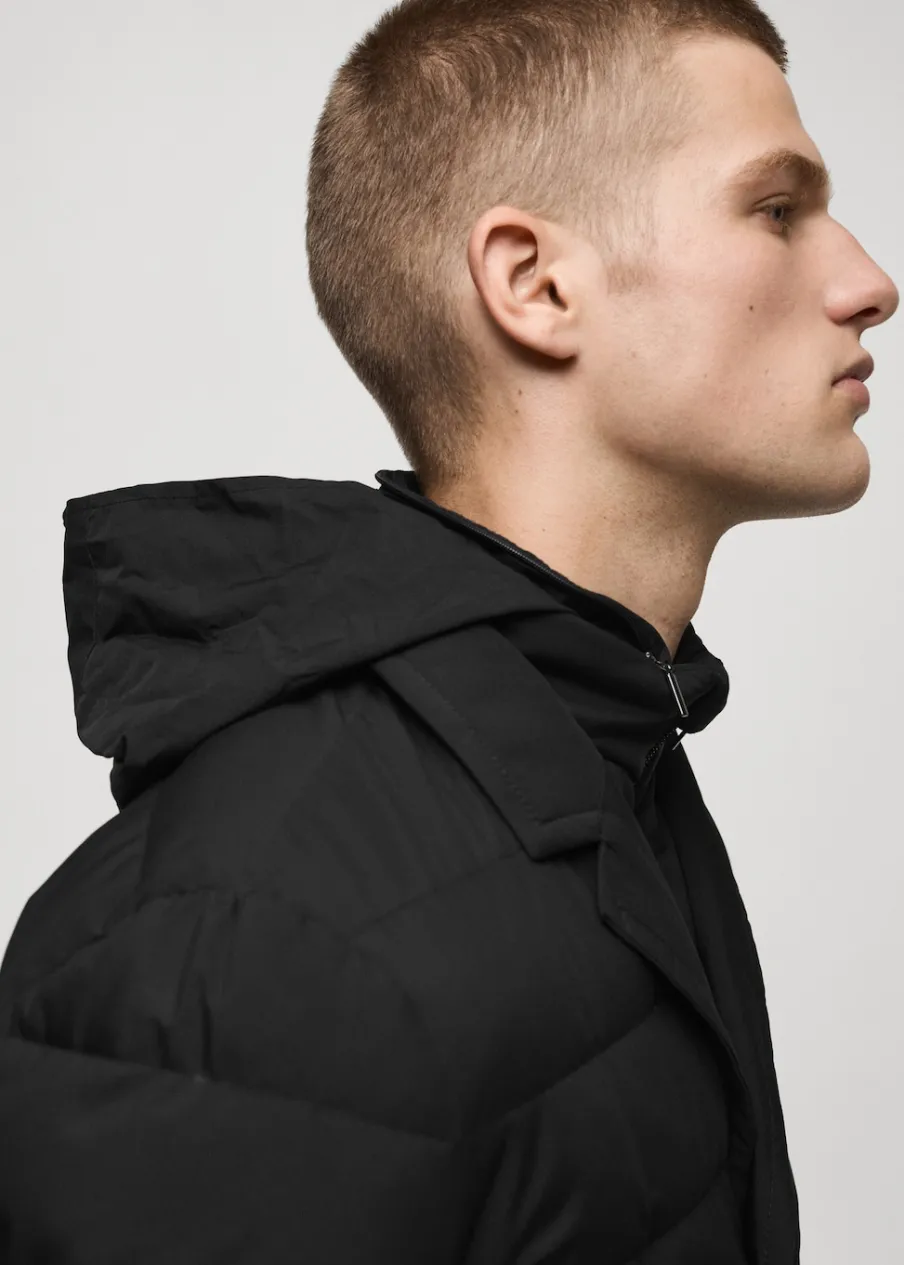 Model pikowany. Kołnierz z klapami. Długi rękaw. Odpinany półgolf z zapięciem na zamek. Składany i chowany kaptur. Dwie kieszenie z patkami z przodu. Prosty dół. Wewnętrzna kieszeń zapinana na suwak. Model ma 190 cm wzrostu i nosi rozmiar M. Wypełnienie z puchu i pierza 70/30. Water Repellent: trwałe wykończenie tego modelu chroni przed lekkim deszczem, odpycha cząsteczki wody i krople deszczu. Windproof: ten wytrzymały materiał zapewnia ochronę przed wiatrem dla większego komfortu podczas aktywności na świeżym powietrzu. Zapięcie na guziki z przodu.