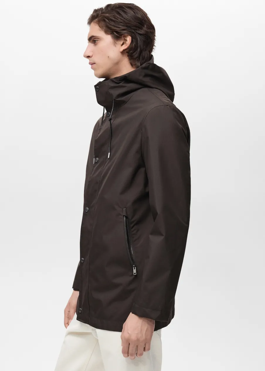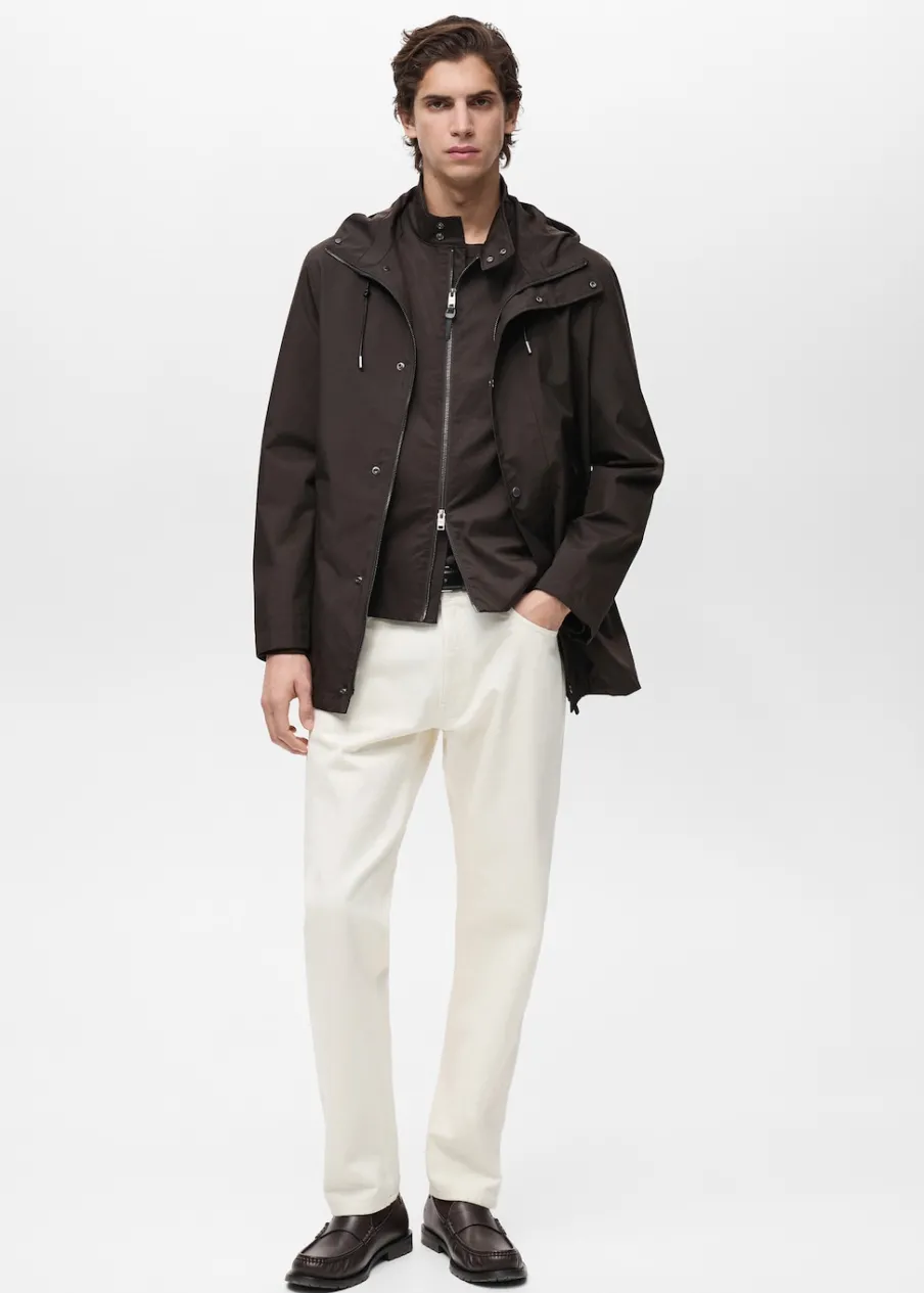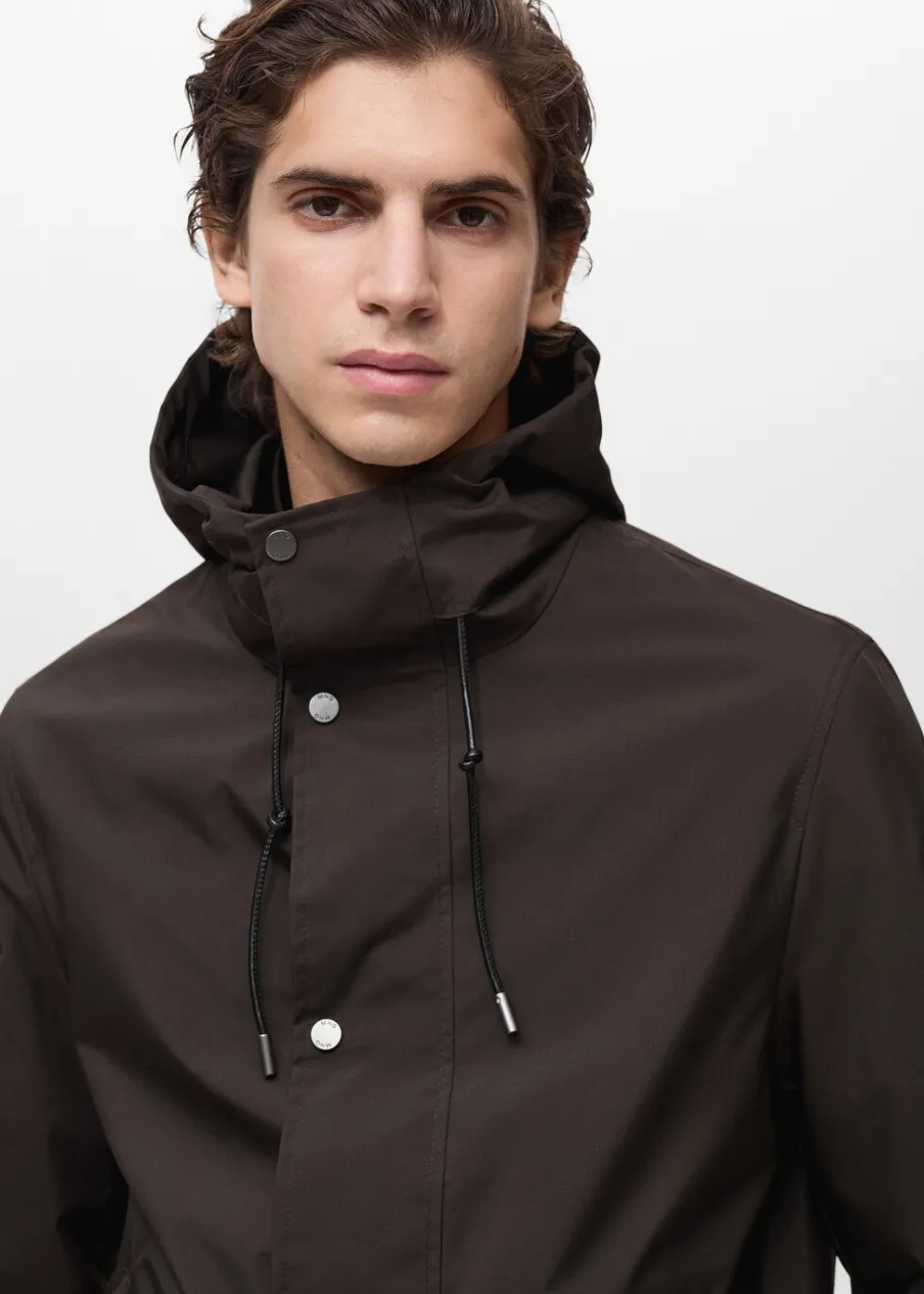 ESSENTIALS: Made to last. Water Repellent: trwałe wykończenie tego modelu chroni przed lekkim deszczem, odpycha cząsteczki wody i krople deszczu. Windproof: ten wytrzymały materiał zapewnia ochronę przed wiatrem dla większego komfortu podczas aktywności na świeżym powietrzu. Krój regular. Kaptur z troczkami. Zapięcie na zamek i zatrzaski z przodu. Zasuwane kieszenie z przodu. Długi rękaw. Prosty dół. Wewnętrzna podszewka. Wewnętrzna kieszeń. Model ma 190 cm wzrostu i nosi rozmiar M.