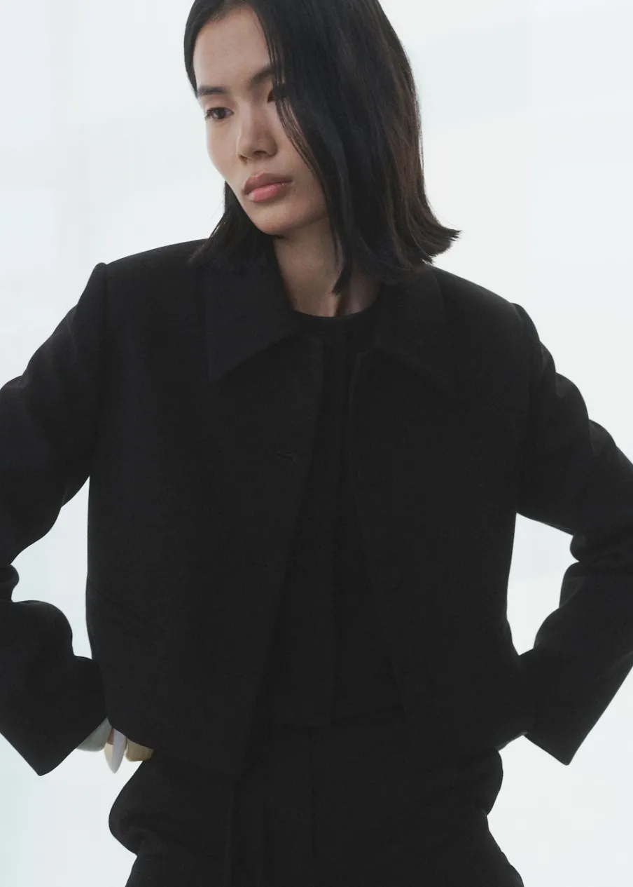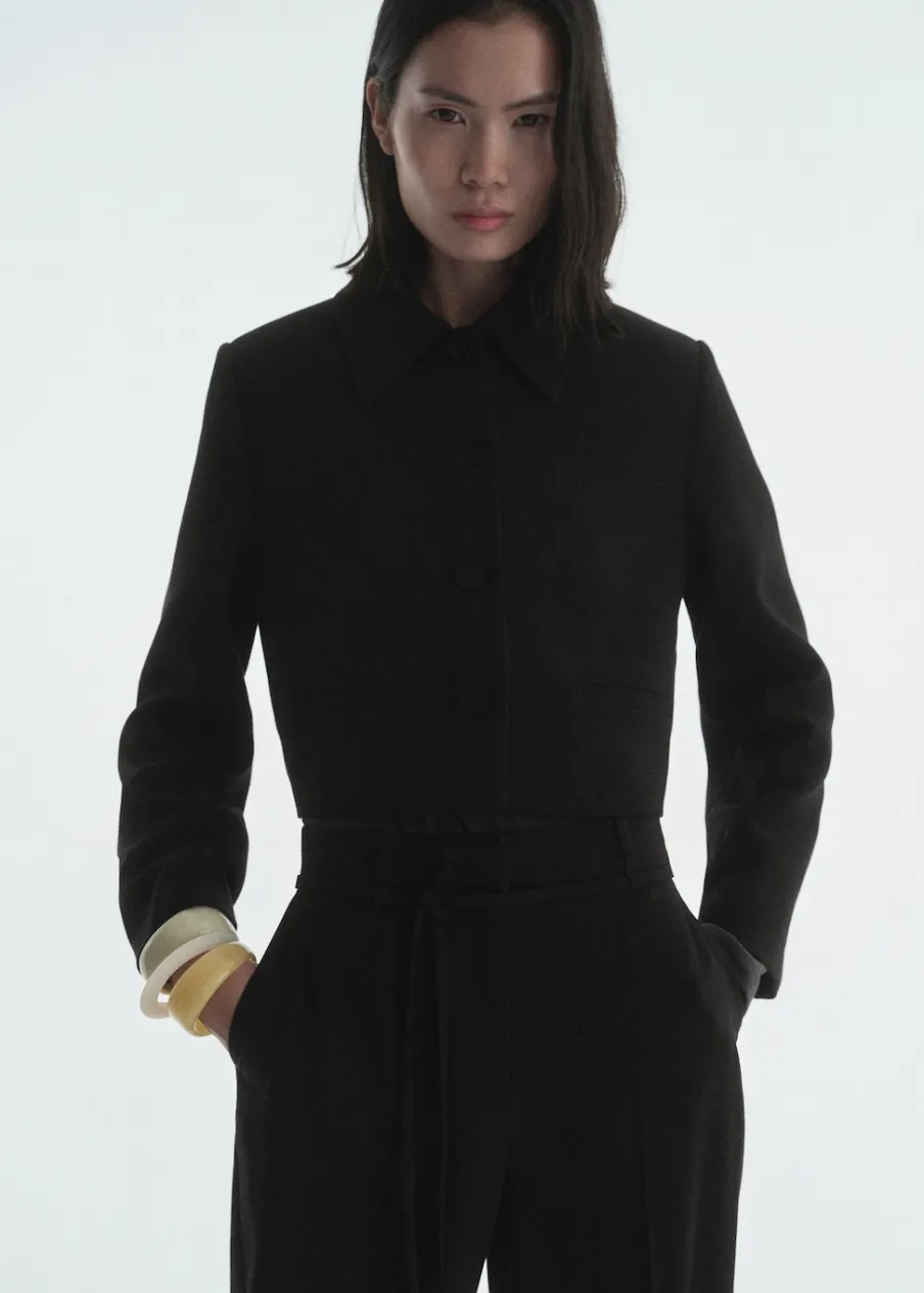 Tkanina mieszanka wełny. Model prosty. Krótki krój. Kołnierz z klapami. Długi rękaw. Dwie wpuszczane kieszenie boczne. Zapięcie z przodu na guziki. Wewnętrzna podszewka. Total look.