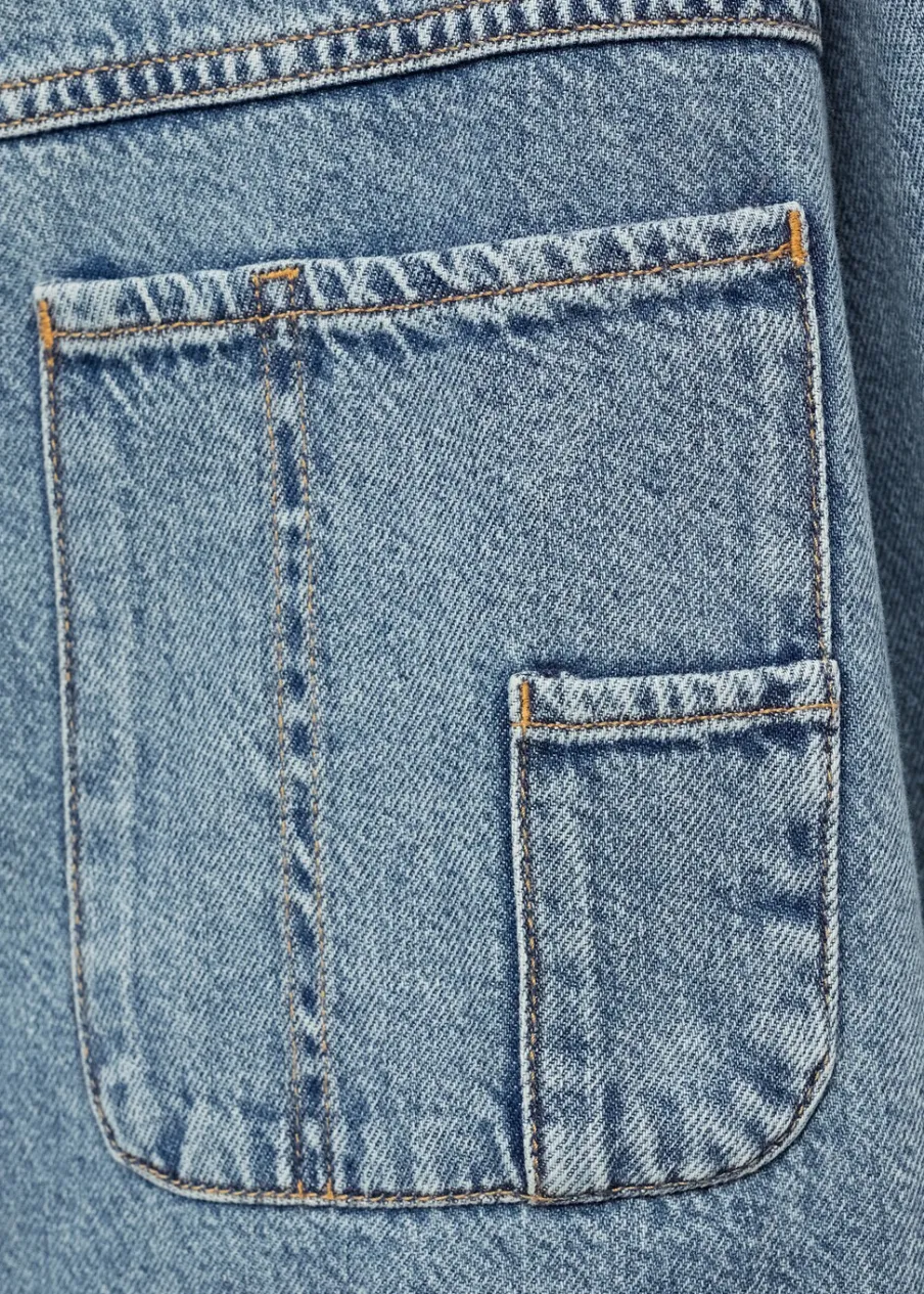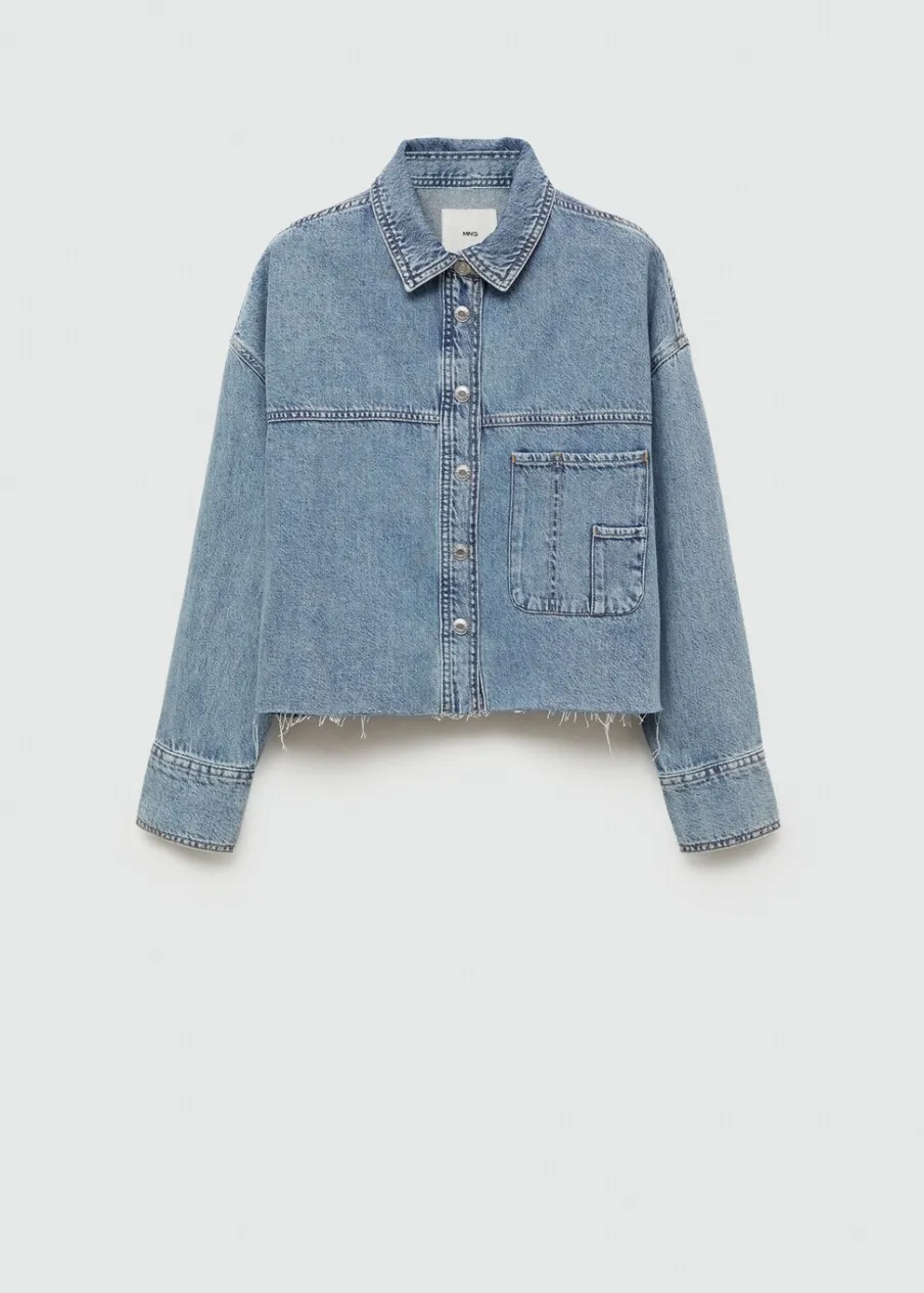 Tkanina bawełniana w dżinsowym stylu. Model prosty. Koszulowy kołnierz. Długi rękaw z guzikami na mankietach. Nakładana kieszeń przednia. Zapięcie na guziki z przodu.