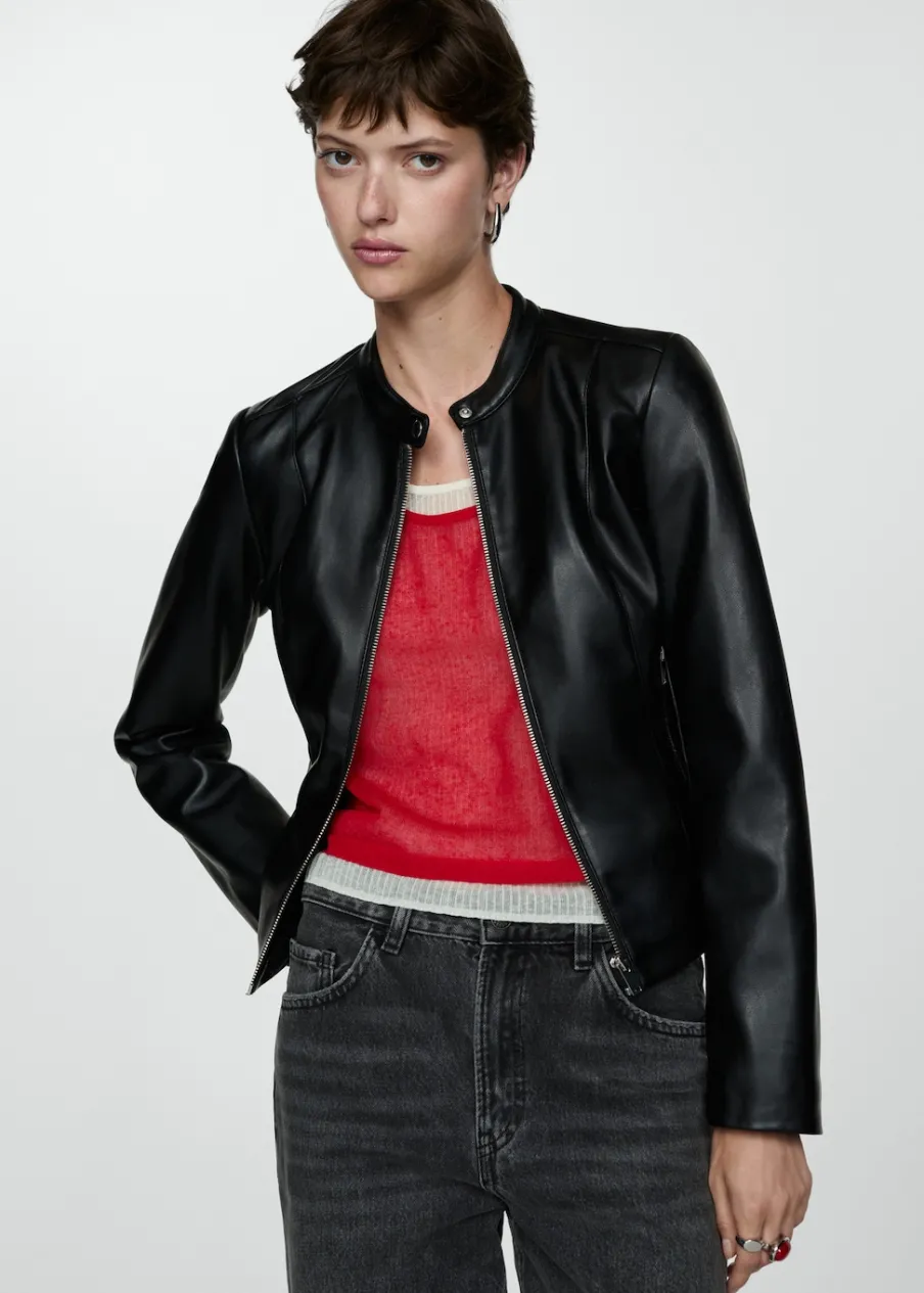 OpisOkrągły dekolt. Model pikowany. Efekt skóry. Model biker. Slim-fit. Krótki krój. Zapięcie na zamek z przodu. Z…