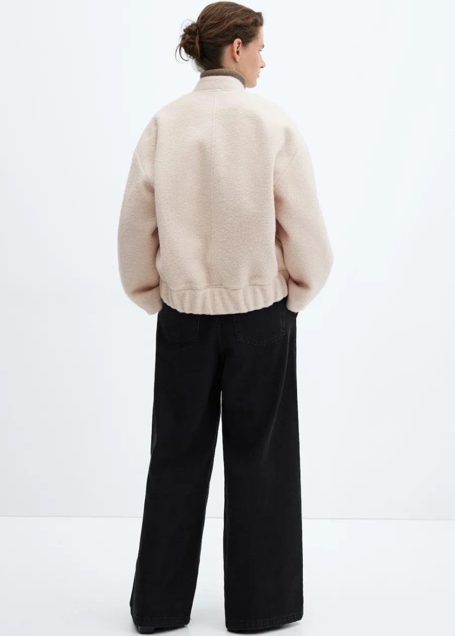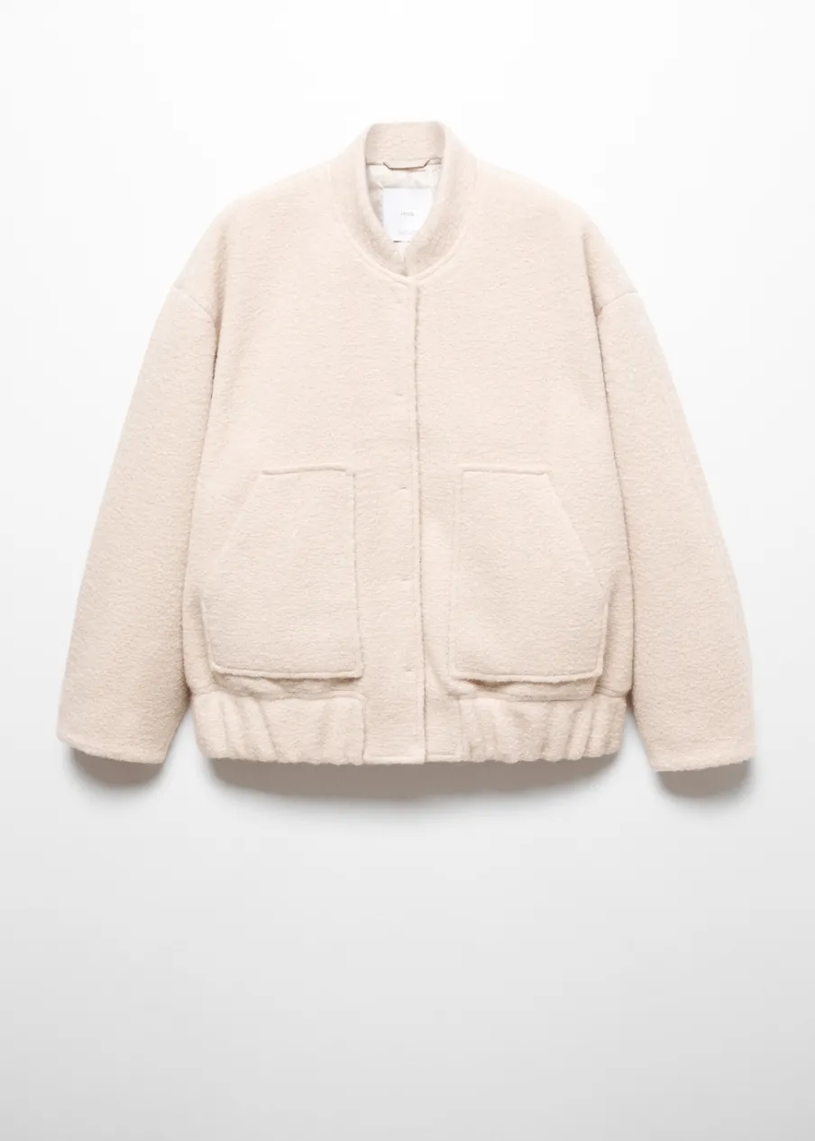 Miękka tkanina, model oversize, model bomber, kołnierzyk typu bomber, długi rękaw, zapięcie z przodu na zatrzaskowe guziki, dwie kieszenie nakładane z przodu, ozdobne szwy, wewnętrzna podszewka.