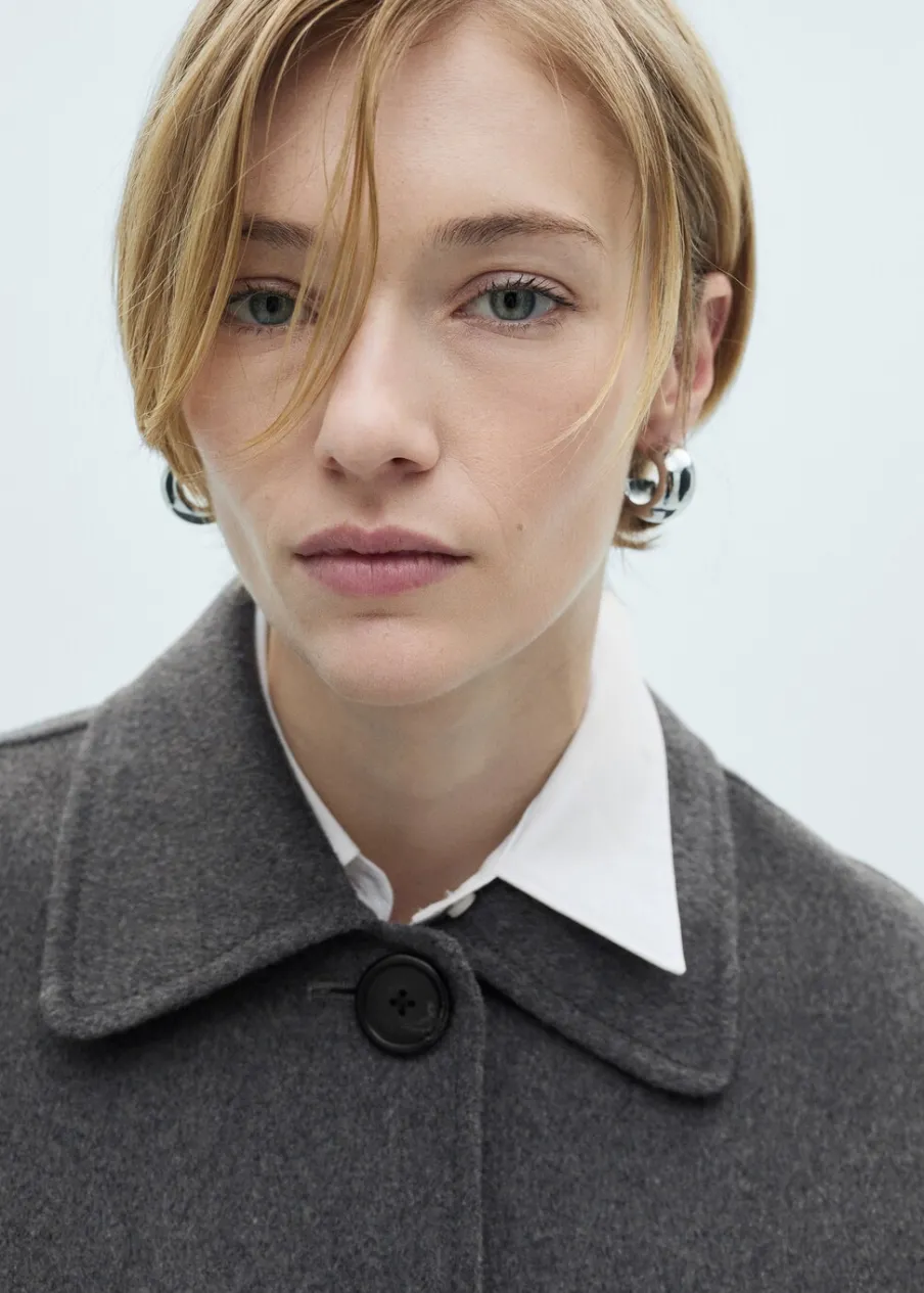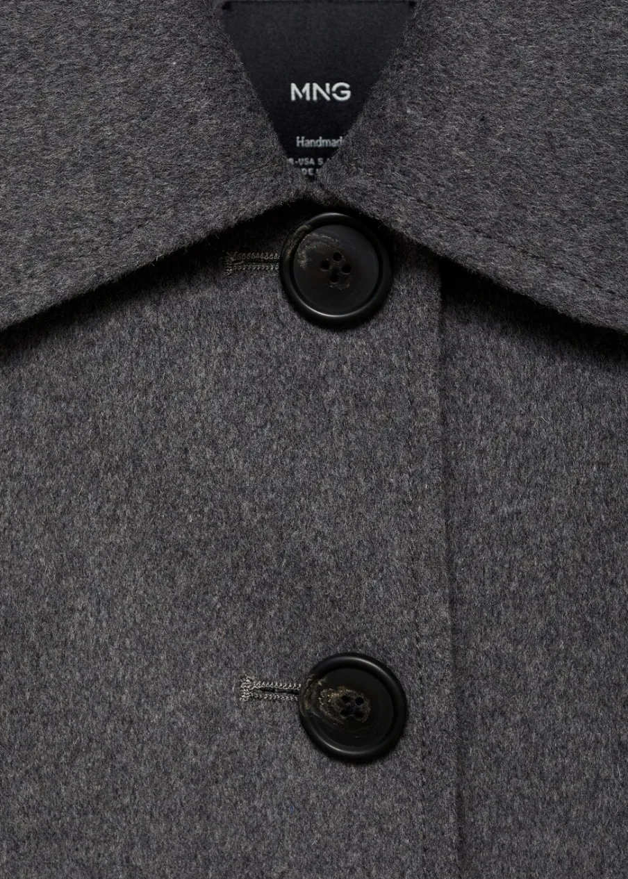 Tkanina mieszanka wełny. Model prosty. Koszulowy kołnierz. Długi rękaw. Dwie kieszenie z patkami z przodu. Modelka ma 181 cm wzrostu i nosi rozmiar S/36. Zapięcie na guziki z przodu.