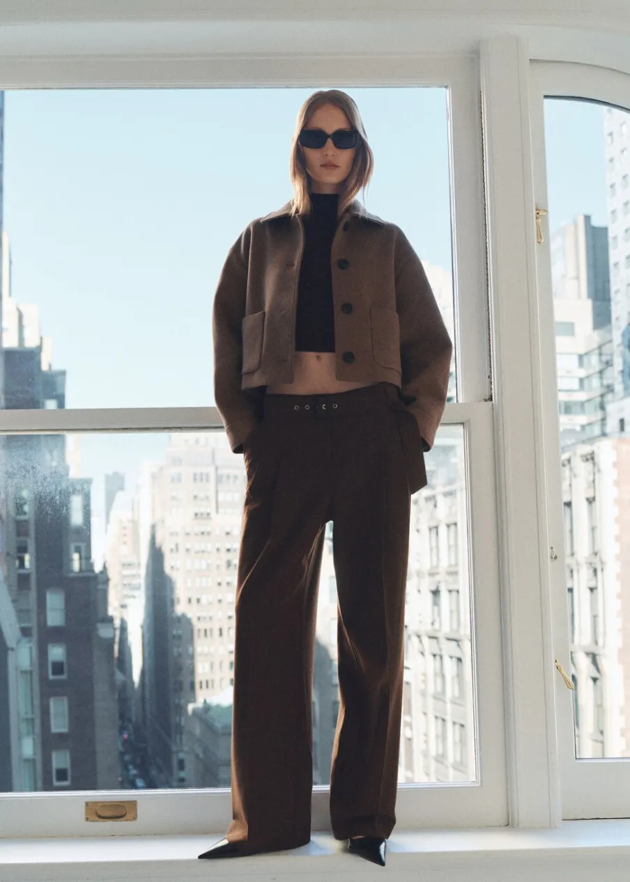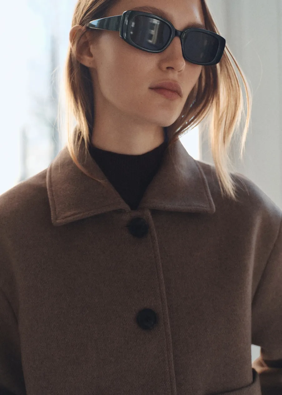 OpisTkanina mieszanka wełny. Krótki krój. Model prosty. Kołnierz z klapami. Długi rękaw. Mankiety z odpinanymi guz…