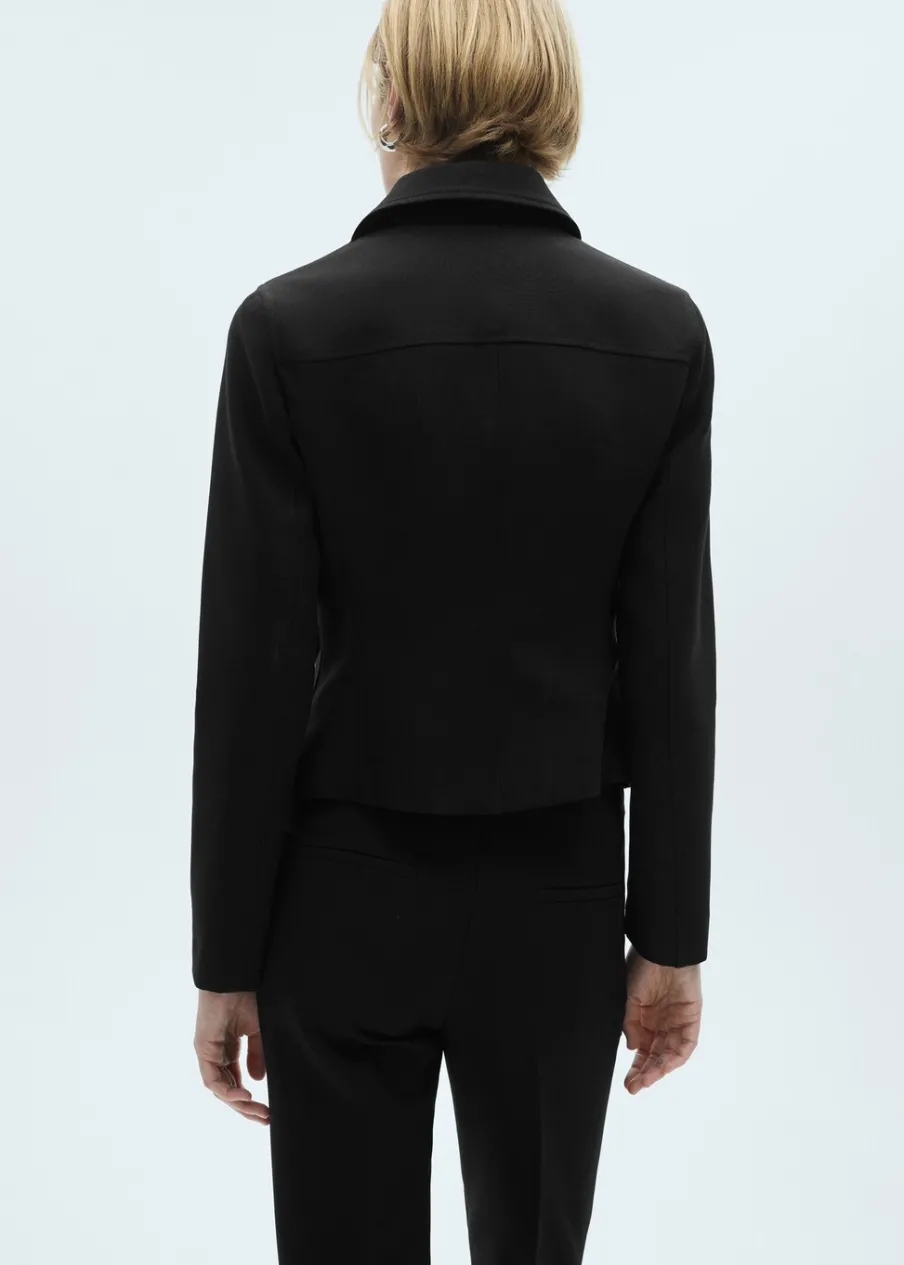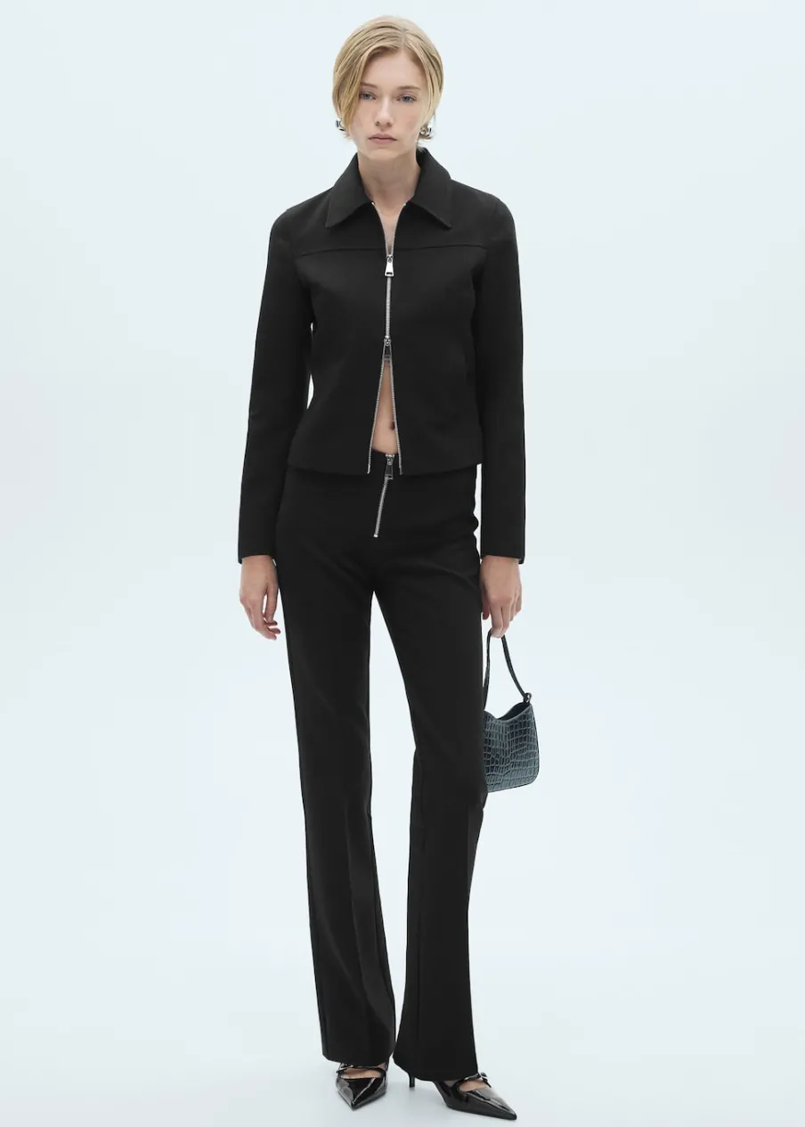 Model prosty. Koszulowy kołnierz. Długi rękaw. Zapięcie na podwójny suwak. Total look. Modelka ma 181 cm wzrostu i nosi rozmiar S/36.