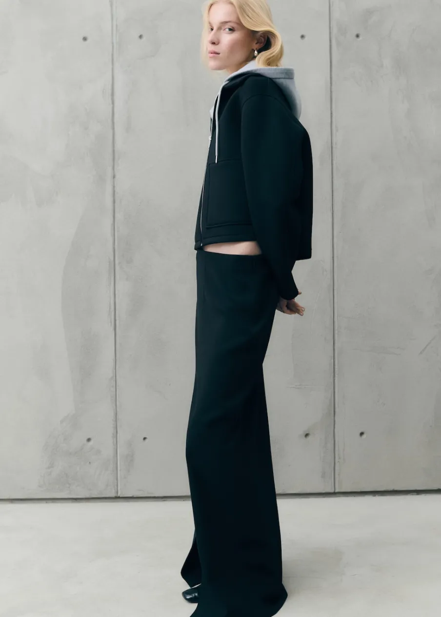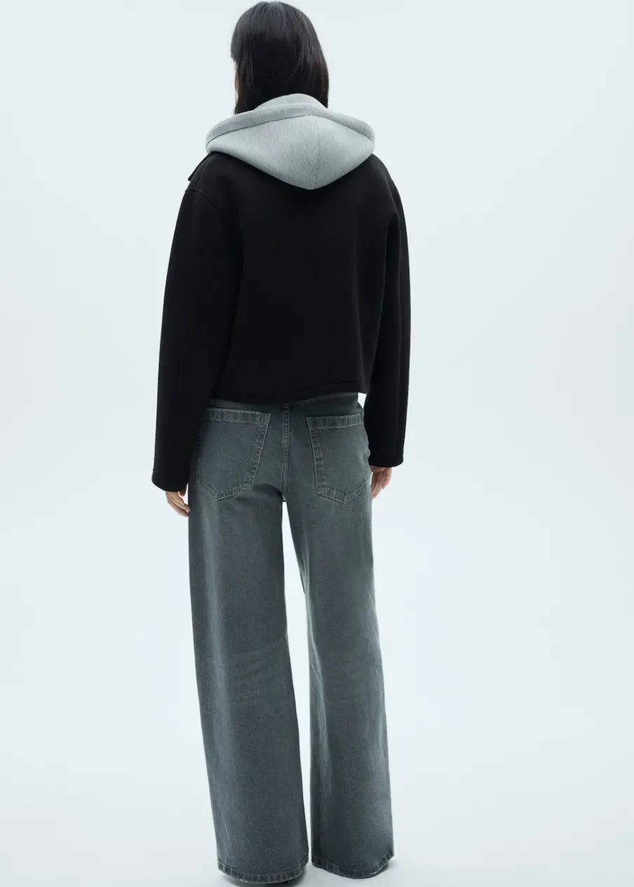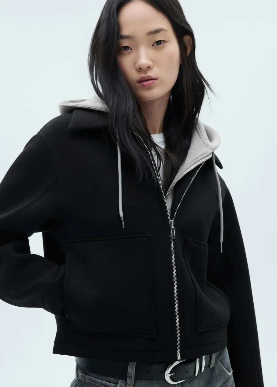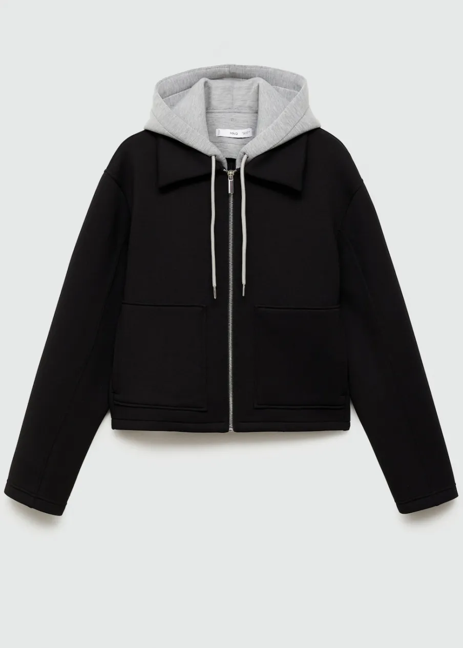 Model prosty. Kontrastowy kaptur. Regulowany kaptur. Koszulowy kołnierz. Zapięcie na podwójny suwak. Długi rękaw. Elastyczna gumka u dołu. Kieszenie boczne. Modelka ma 175 cm wzrostu i nosi rozmiar S/36. Odpinany kaptur.