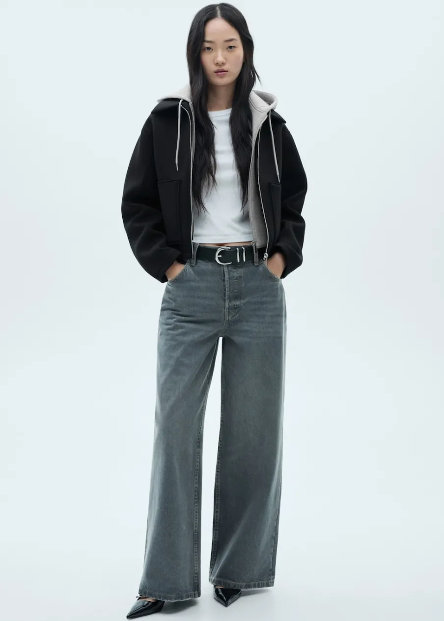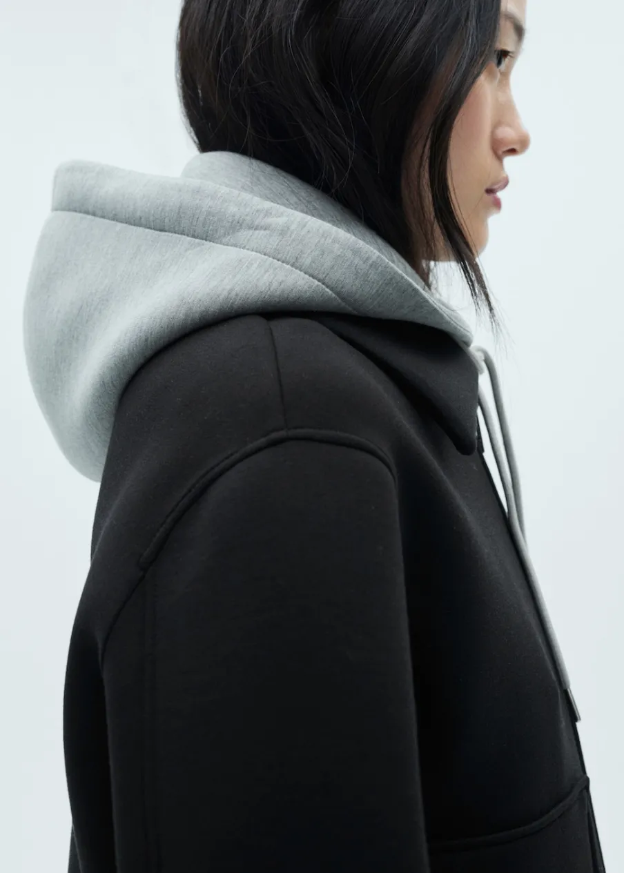 OpisModel prosty. Kontrastowy kaptur. Regulowany kaptur. Koszulowy kołnierz. Zapięcie na podwójny suwak. Długi ręka…