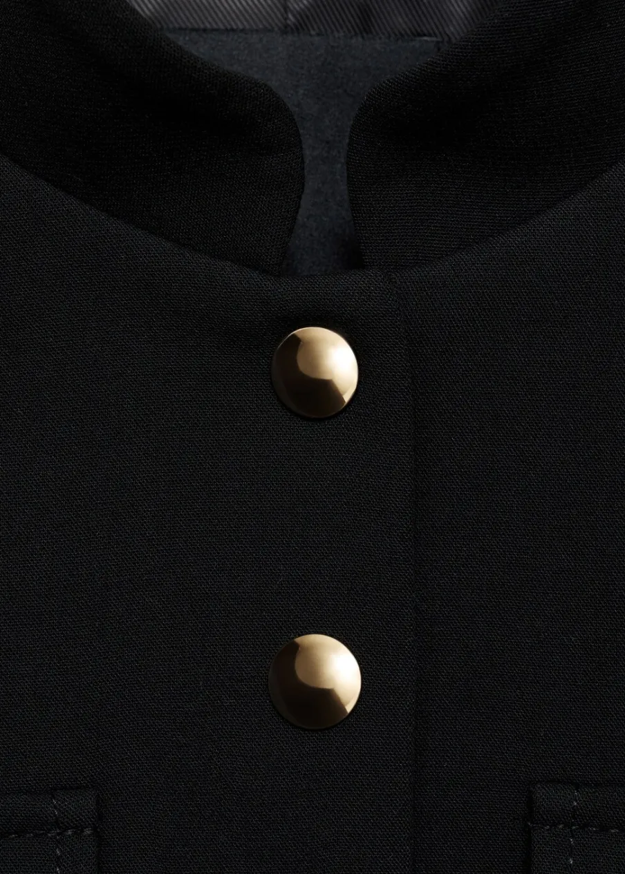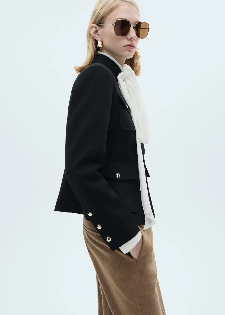 Model prosty. Okrągły dekolt. Długi rękaw. Cztery kieszenie z patkami z przodu. Zapięcie z przodu na guziki. Metalowe guziki. Wewnętrzna podszewka.