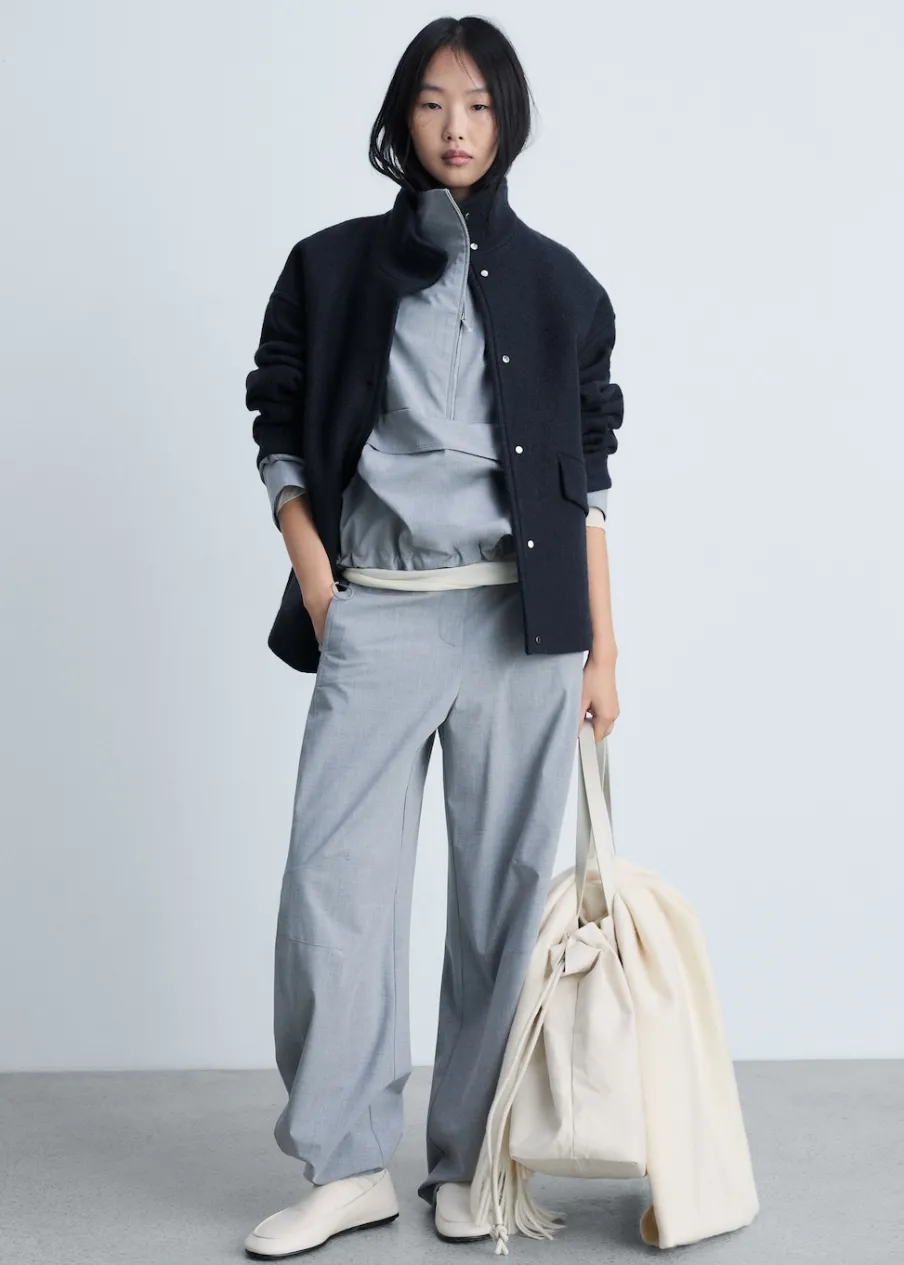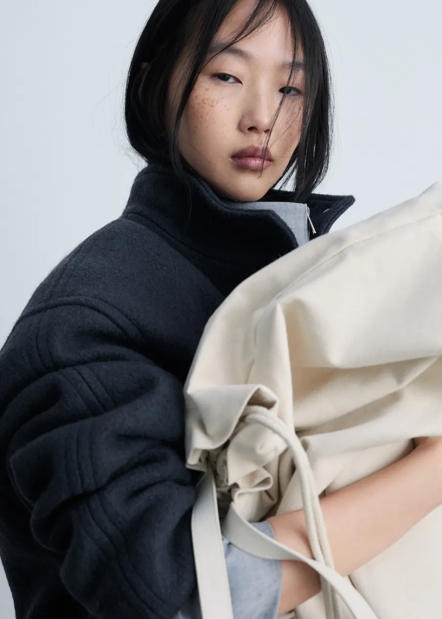 OpisTkanina mieszanka wełny. Model prosty. Golf. Długi rękaw. Dwie kieszenie z patką z przodu. Kryte zapięcie na gu…