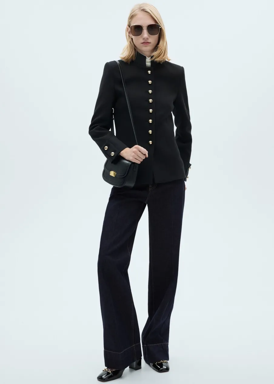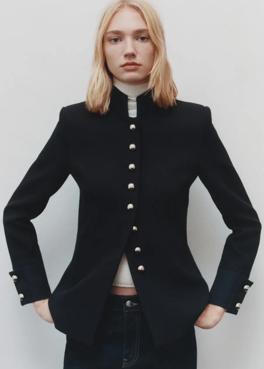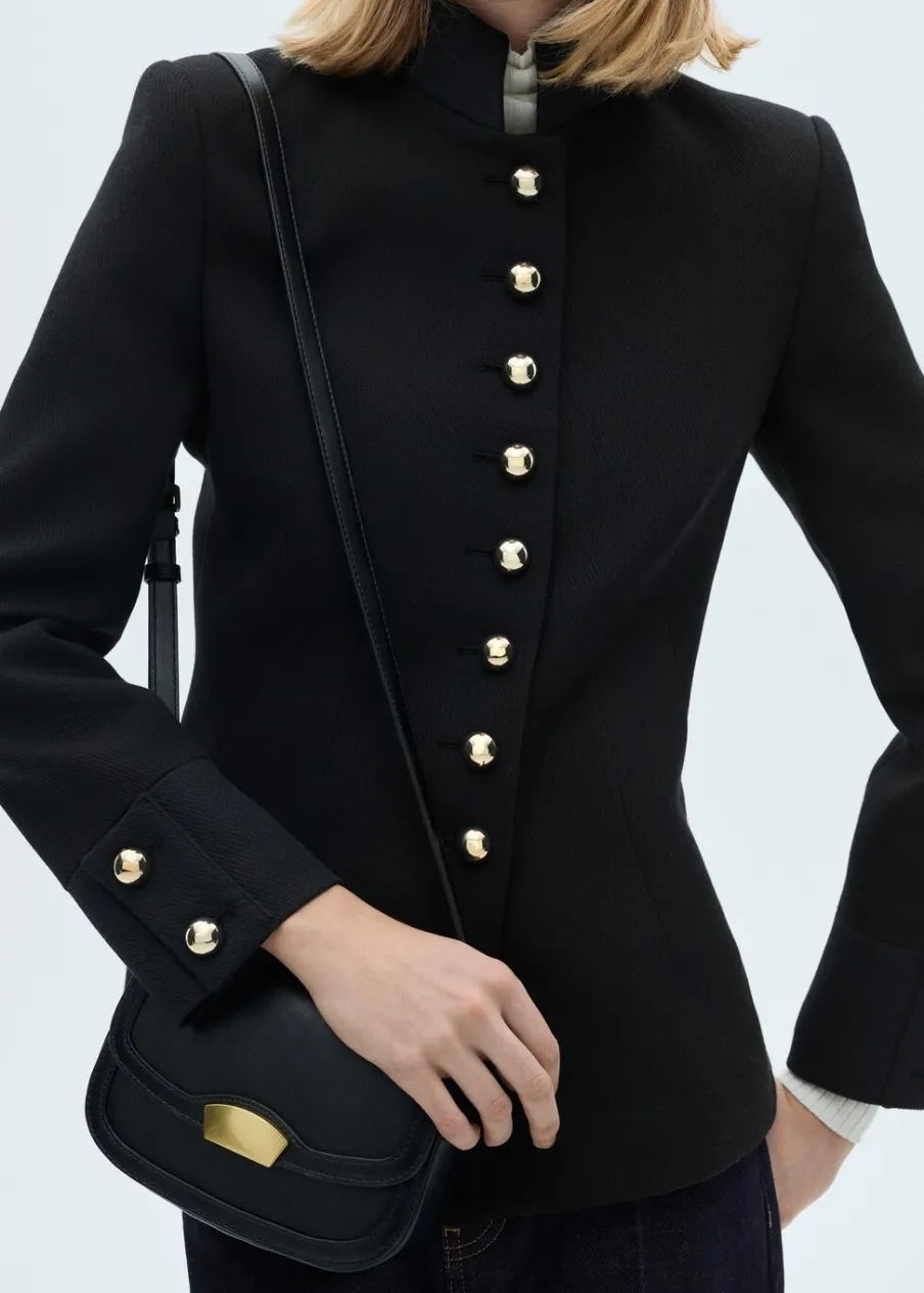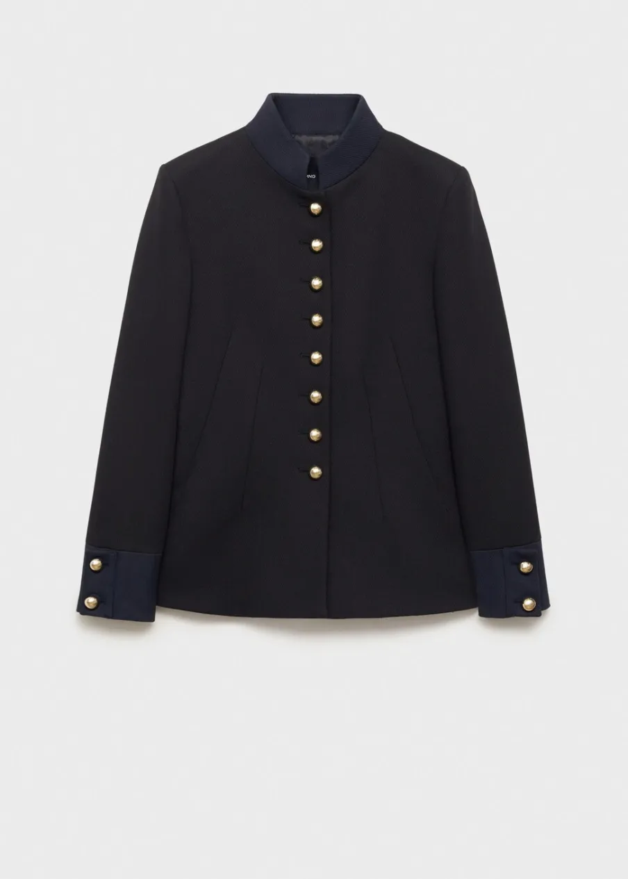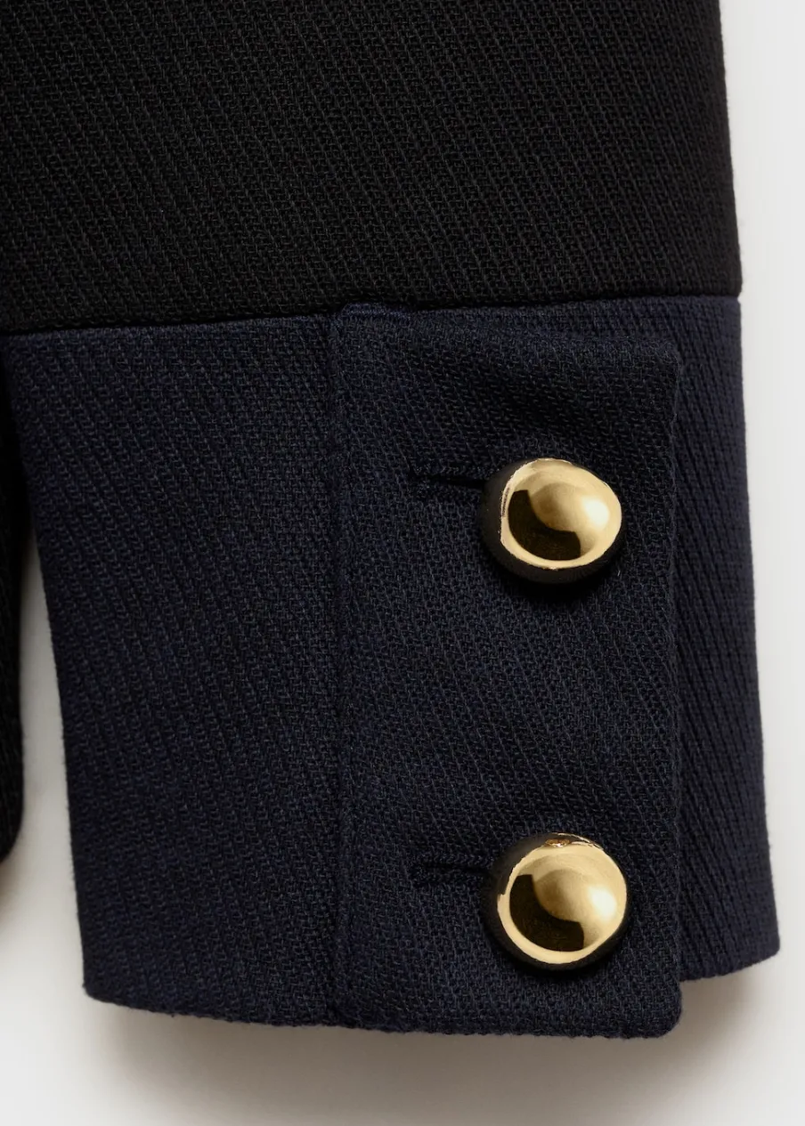Tkanina mieszanka bawełny. Model strukturalny. Model prosty. Dekolt z listwą. Długi rękaw. Zapięcie na guziki z przodu. Biżuteryjne guziki. Wewnętrzna podszewka.