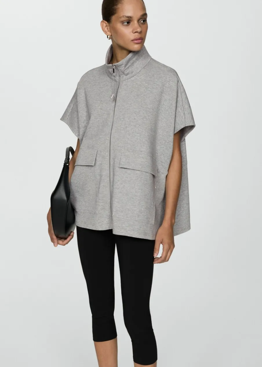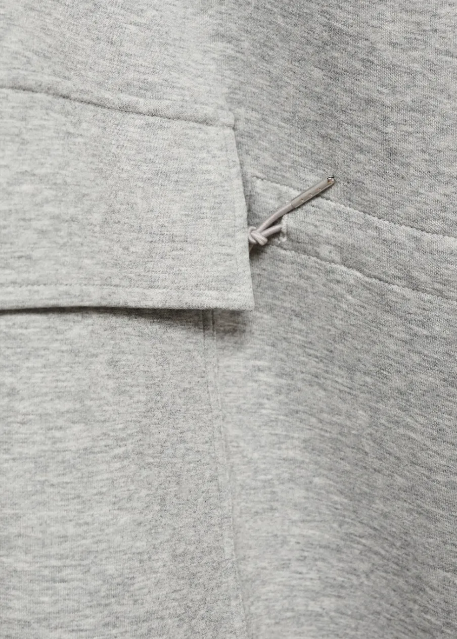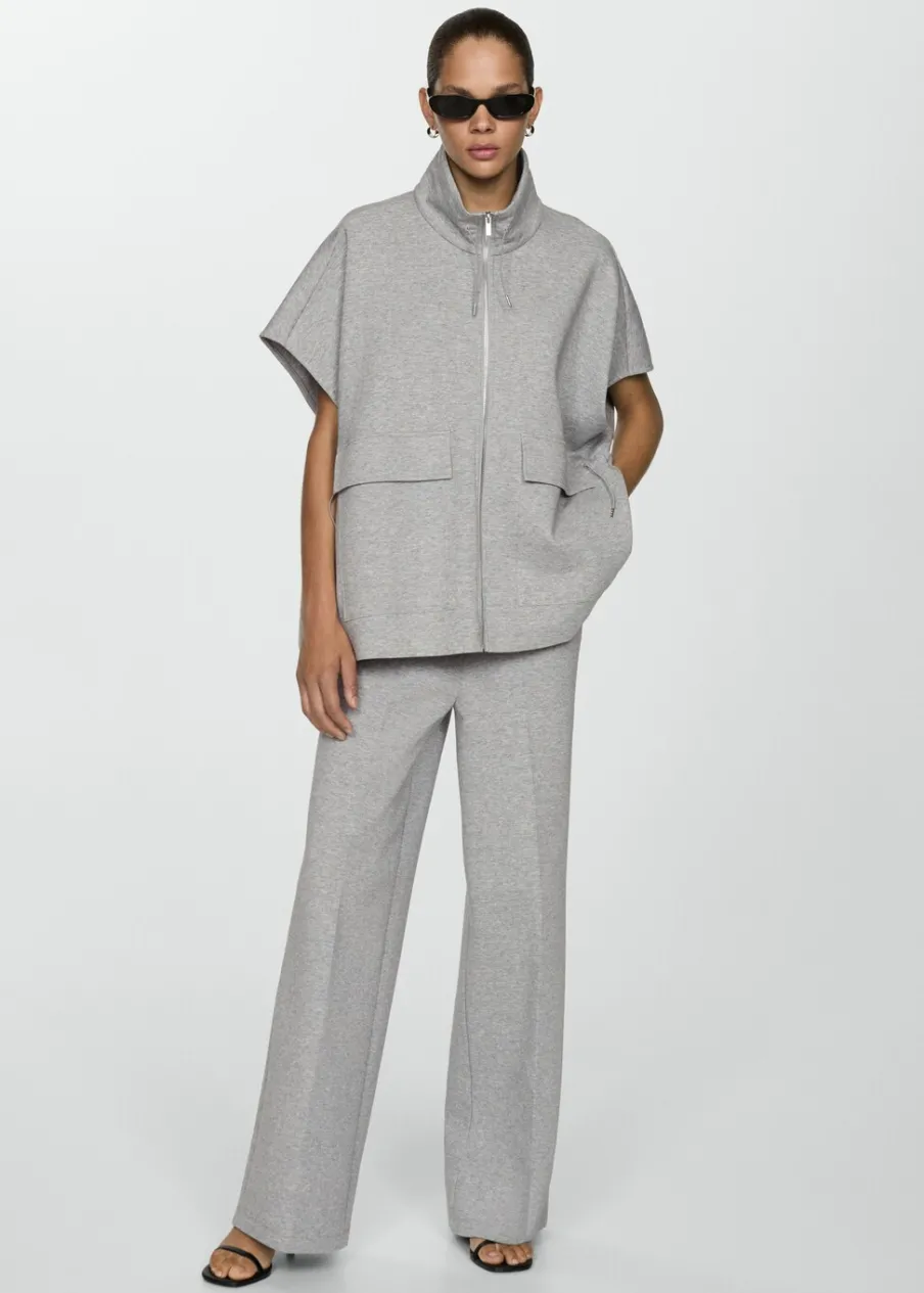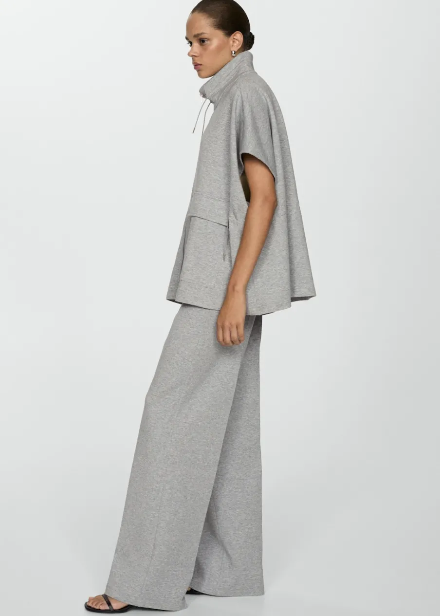 Tkanina mieszanka bawełny. Model długi. Model oversize. Kominowy kołnierz. Sznurki przy dekolcie. Zapięcie na zamek z przodu. Krótki rękaw. Regulowany pasek. Dwie kieszenie z patkami z przodu. Bez podszewki. Total look.