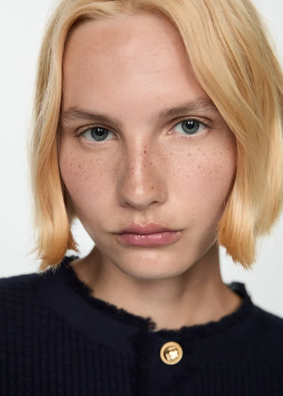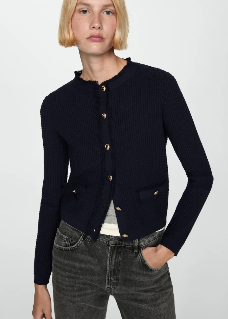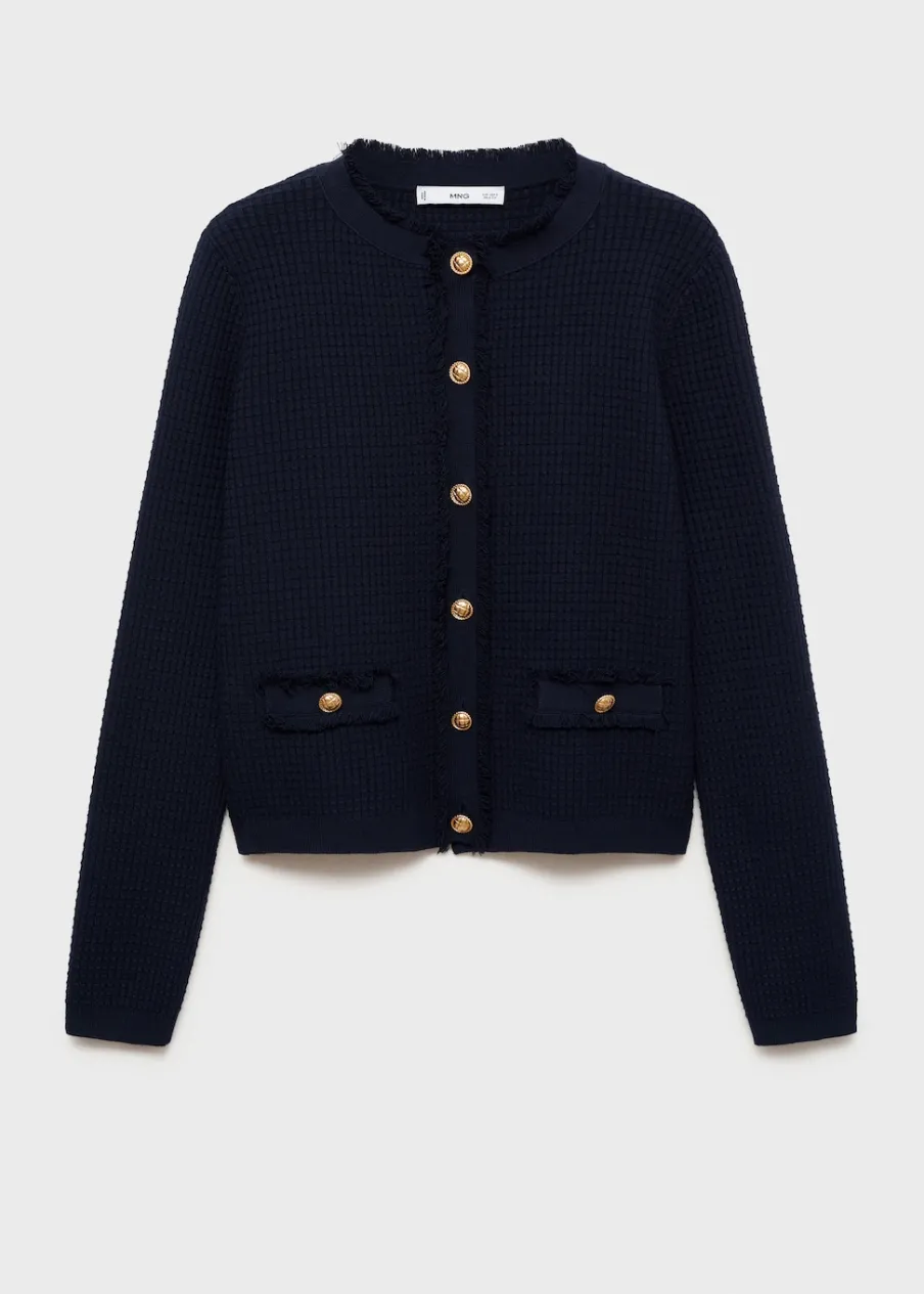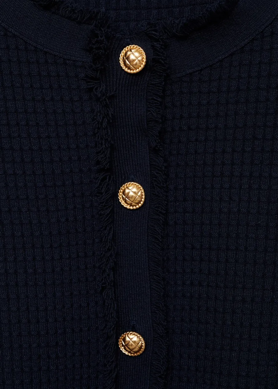 Dzianinowa tkanina. Dzianina średniej grubości. Model prosty. Okrągły dekolt. Długi rękaw. Dwie kieszenie z przodu. Ozdobne guziki. Dostępne w Plus Size. Zapięcie na guziki z przodu.