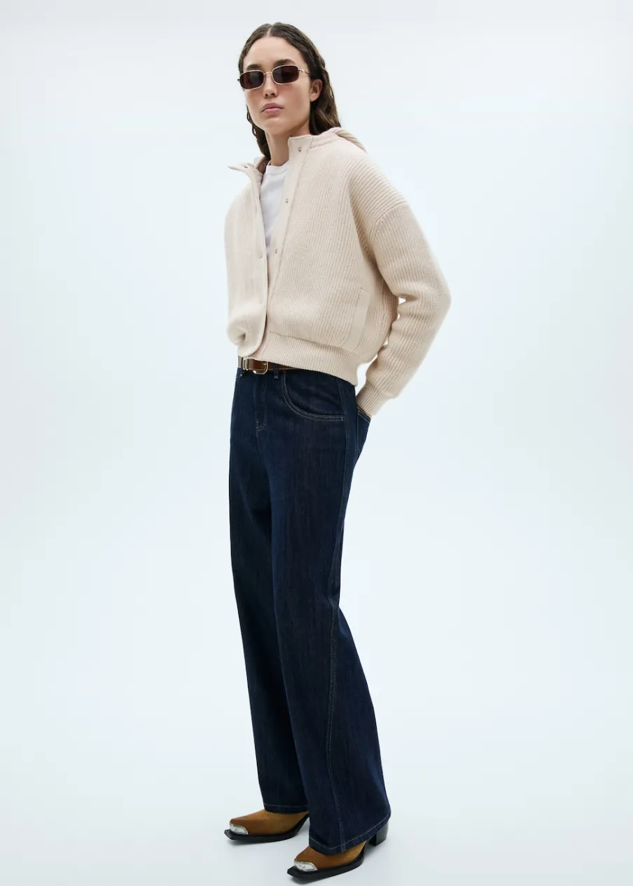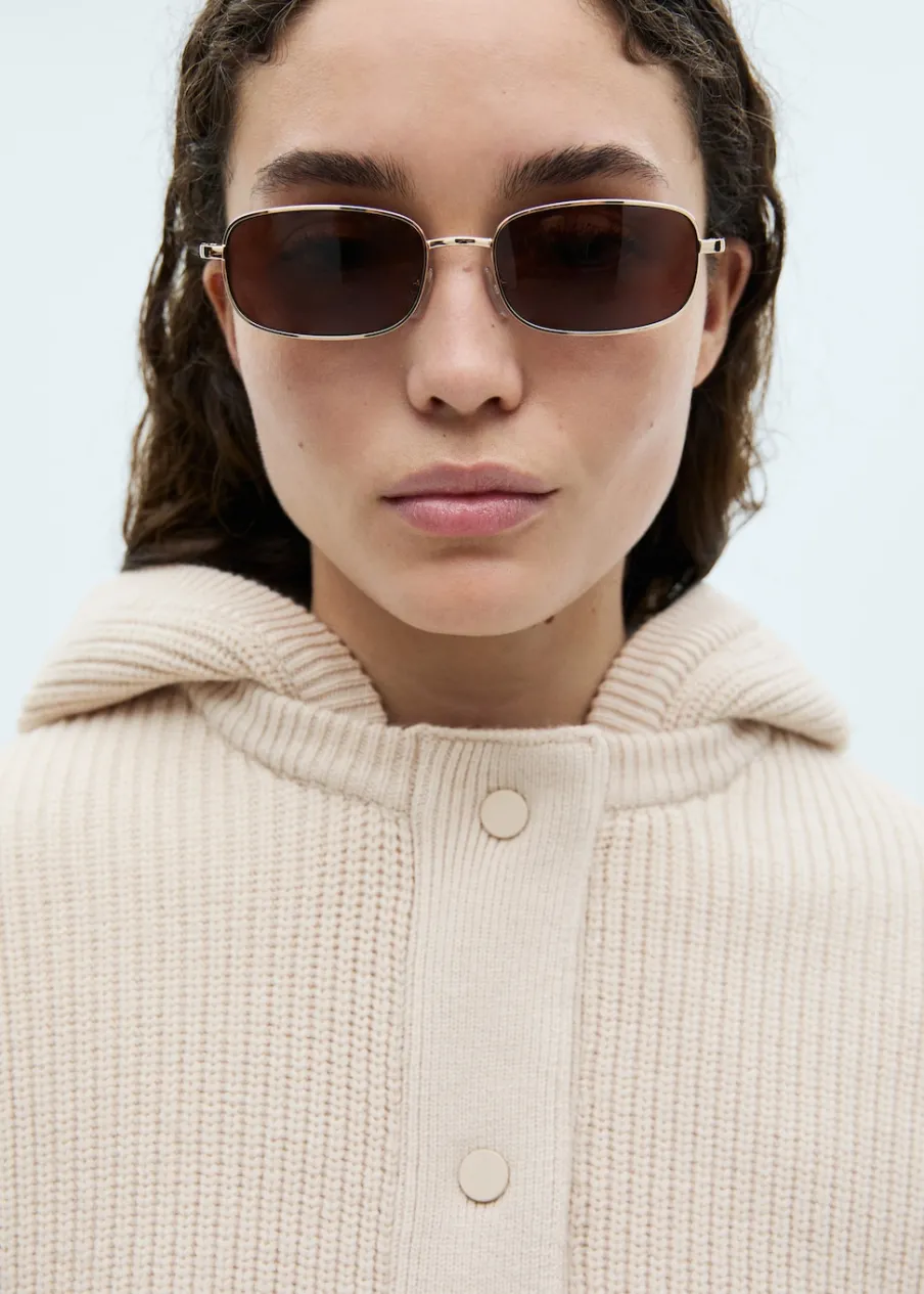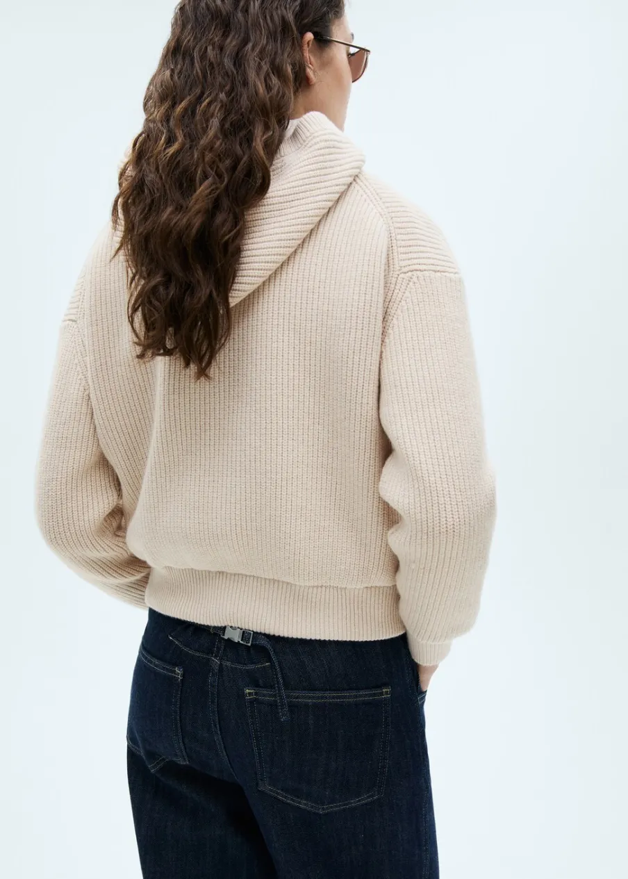 Model pikowany. Długi rękaw. Wewnętrzna podszewka. Modelka ma 175 cm wzrostu i nosi rozmiar S/36. Model prosty. Tkanina z grubej dzianiny. Kaptur. Zapięcie na zatrzaski z przodu.