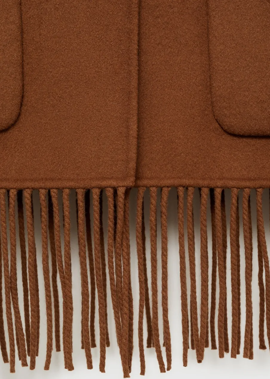 OpisTkanina mieszanka wełny. Model oversize. Koszulowy kołnierz. Długi rękaw. Frędzlowe wykończenie. Dwie kieszeni…