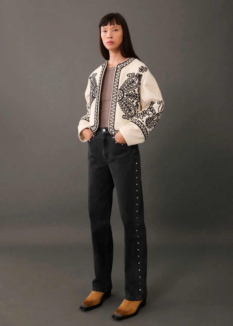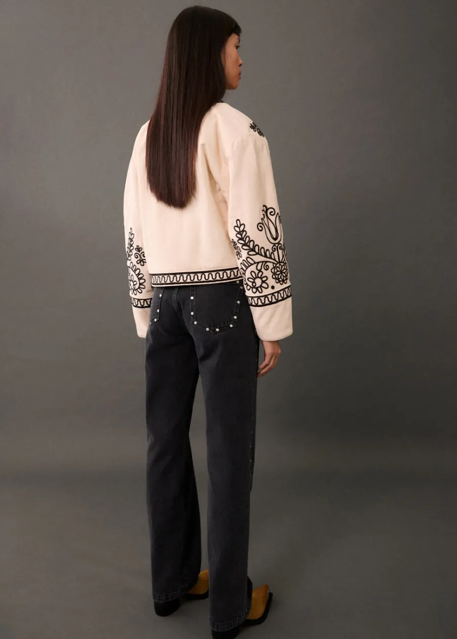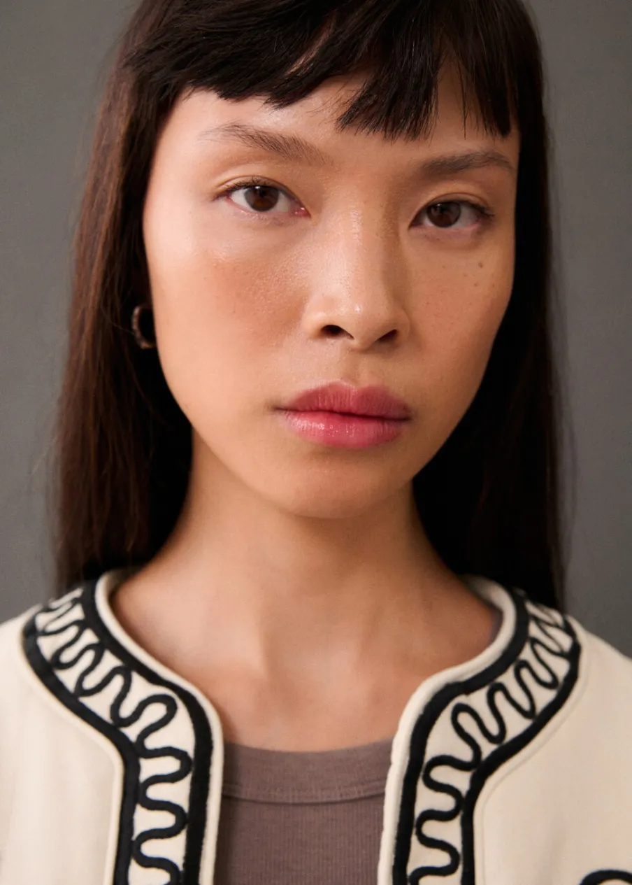 Bawełna 100%. Model prosty. Model pikowany. Okrągły dekolt. Długi rękaw. Wewnętrzna podszewka. Ozdobny haft. Modelka ma 177 cm wzrostu i nosi rozmiar S/36.
