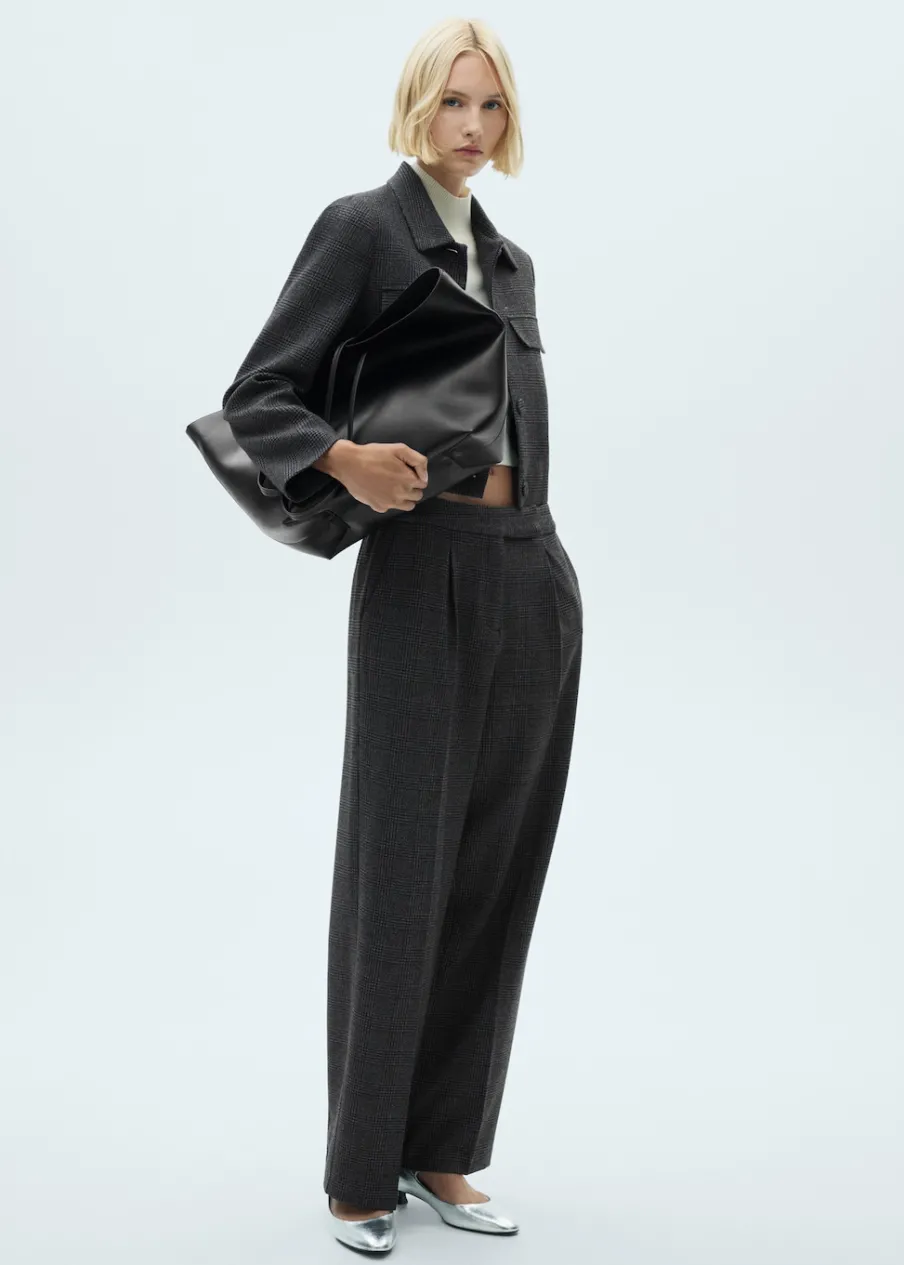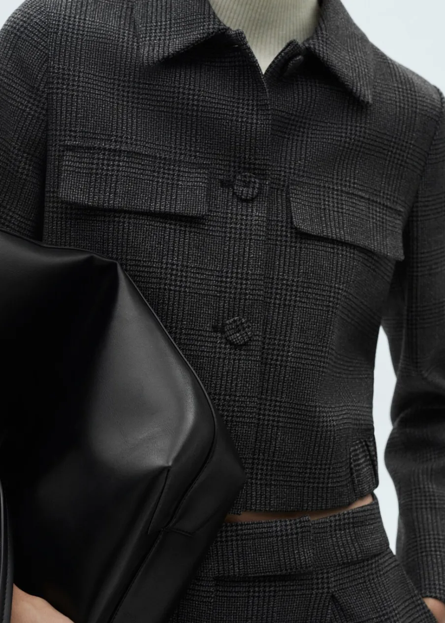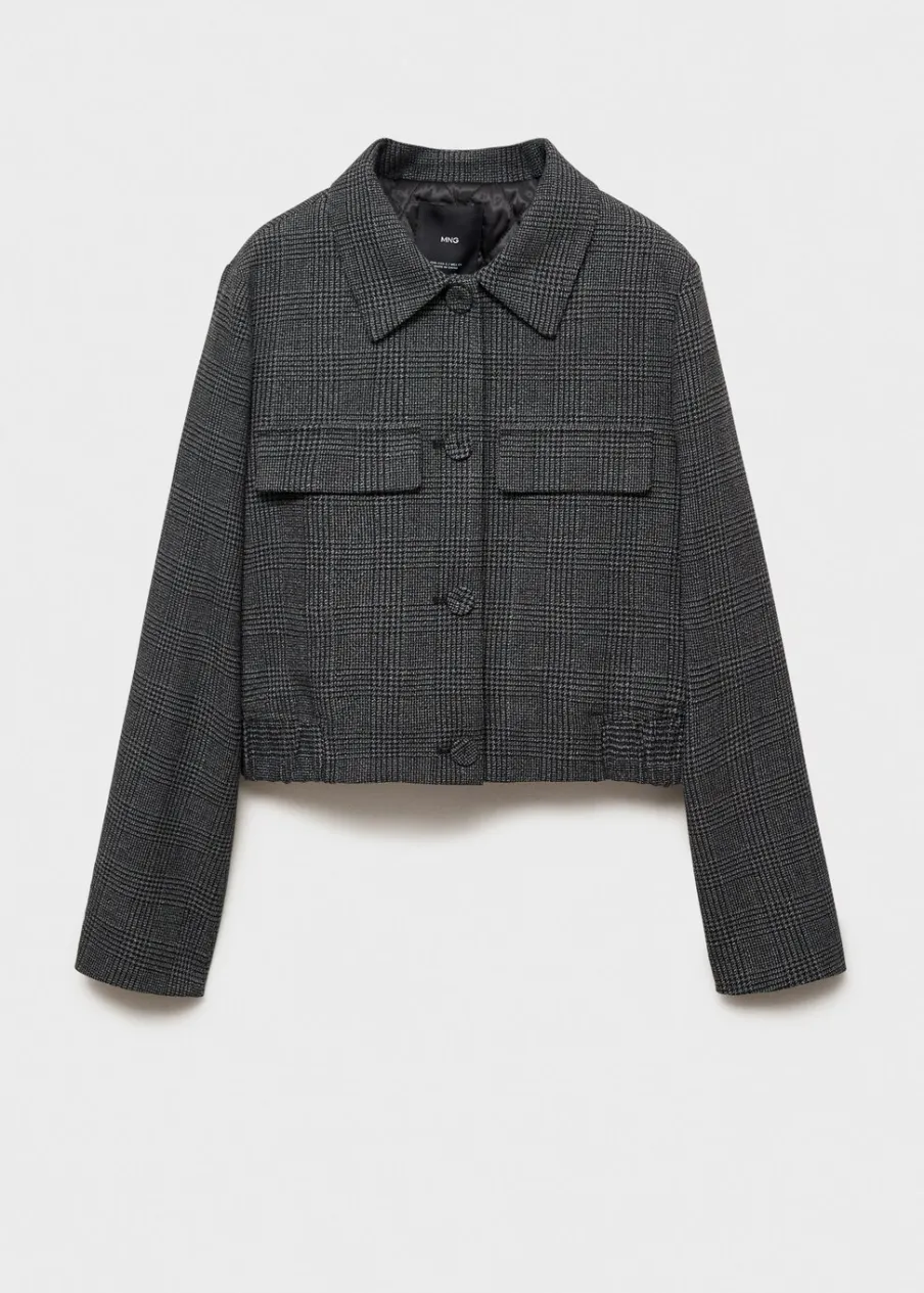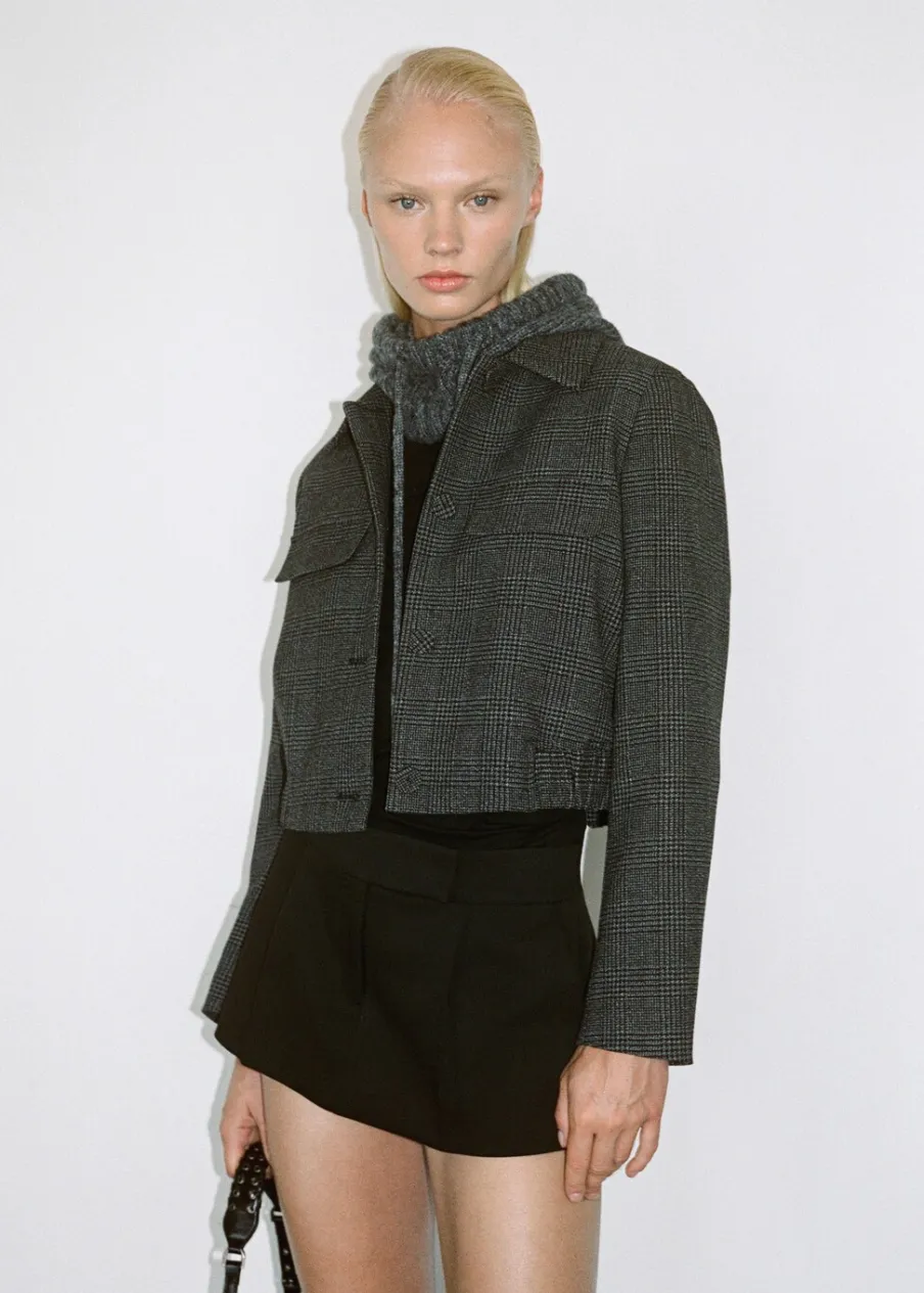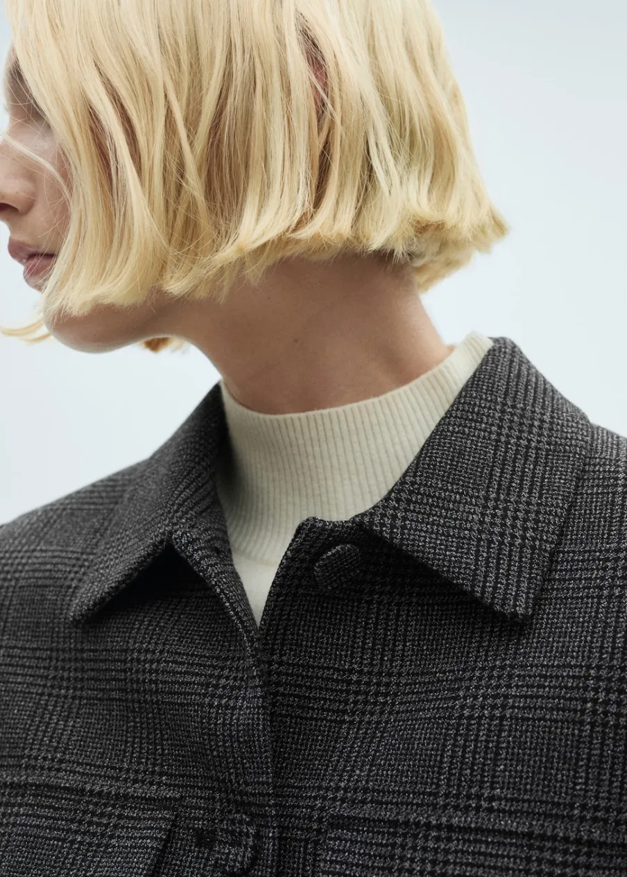 Tkanina tweedowa. Zapięcie na guziki. Dekoracyjne klapy z przodu. Koszulowy kołnierz. Elastyczna gumka u dołu. Total look. Modelka ma 179 cm wzrostu i nosi rozmiar S/36.
