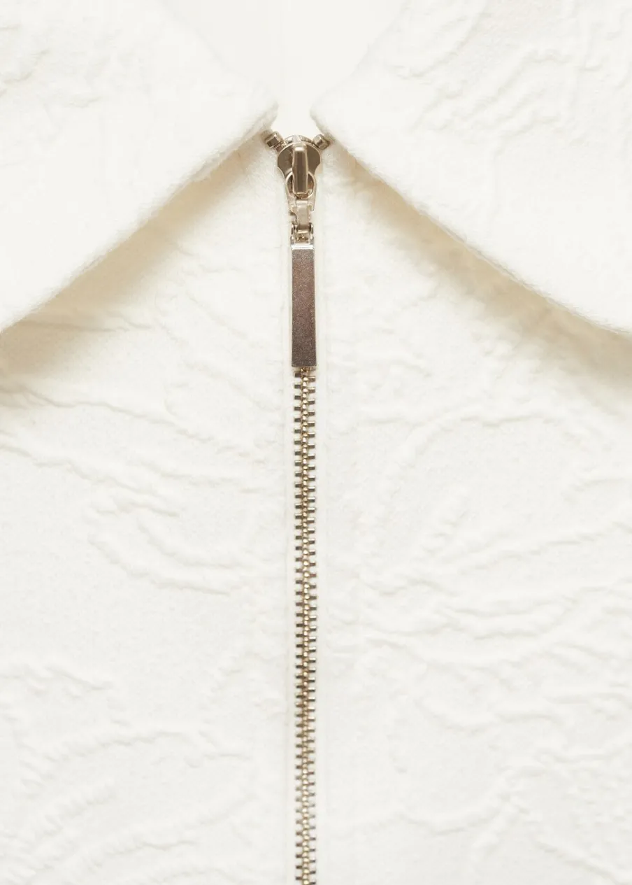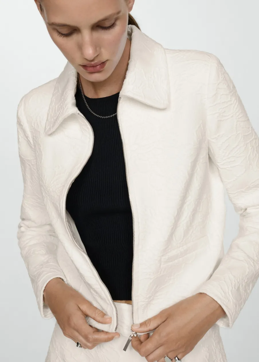 Tkanina mieszanka bawełny. Teksturowana tkanina. Model prosty. Koszulowy kołnierz. Długi rękaw. Dwie kieszenie z wypustkami z przodu. Zapięcie na zamek z przodu. Wewnętrzna podszewka. Total look. Modelka ma 180 cm wzrostu i nosi rozmiar S.