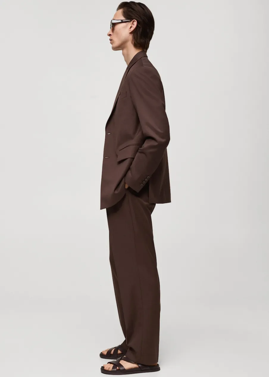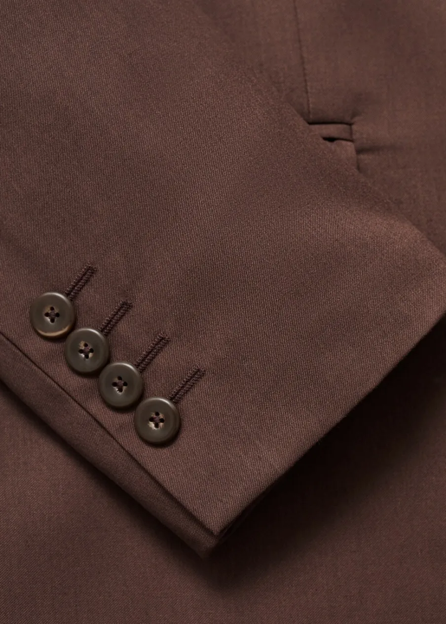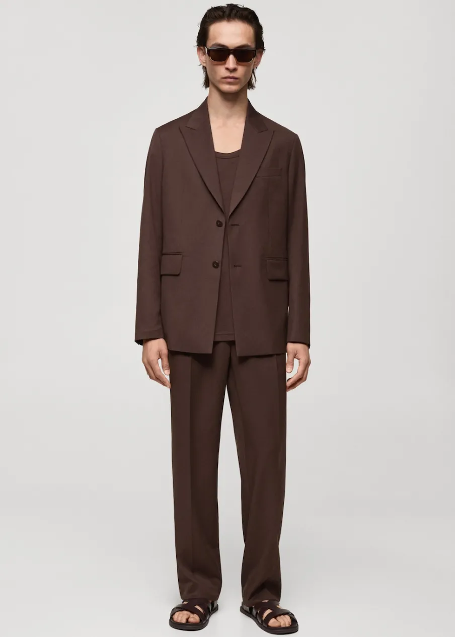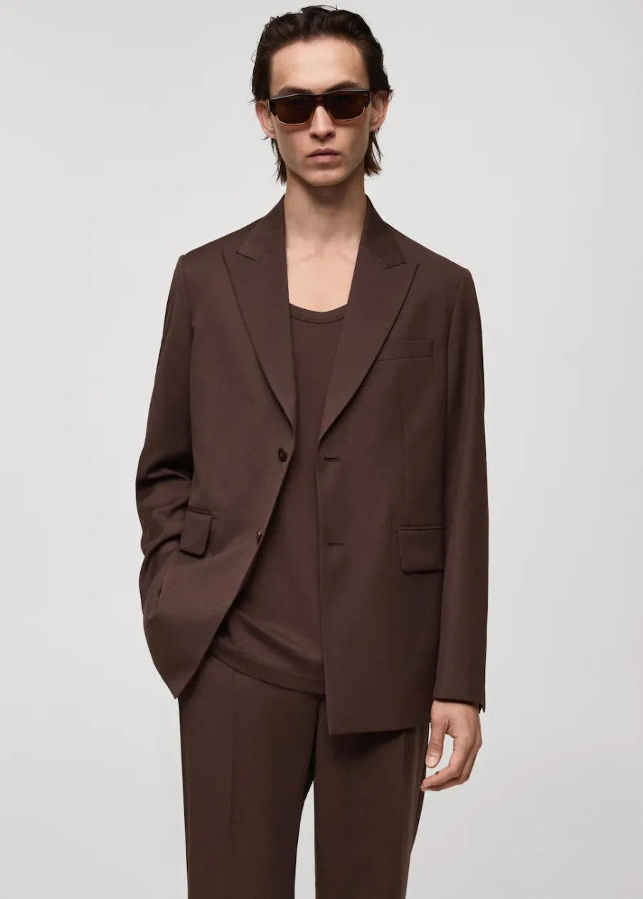 Krój regular. Klapy z nacięciem. Zapięcie na dwa guziki z przodu. Długi rękaw z guzikami na mankietach. Kieszeń wpuszczana na piersi. Dwie kieszenie z patkami z przodu. Trzy kieszenie z wypustkami po wewnętrznej stronie. Wewnętrzna podszewka. Podwójne rozcięcie z tyłu. Model ma 185 cm wzrostu i nosi rozmiar 50.