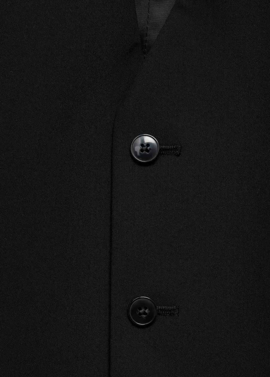Super slim-fit. Tkanina stretch, która zapewnia maksymalną wygodę i swobodę ruchów. Dekolt V. Zapięcie na guziki z przodu. Dwie kieszenie z wypustkami z przodu. Klamerka do regulacji z tyłu. Wewnętrzna podszewka. Wewnętrzna kieszeń. Model ma 190 cm wzrostu i nosi rozmiar 50.