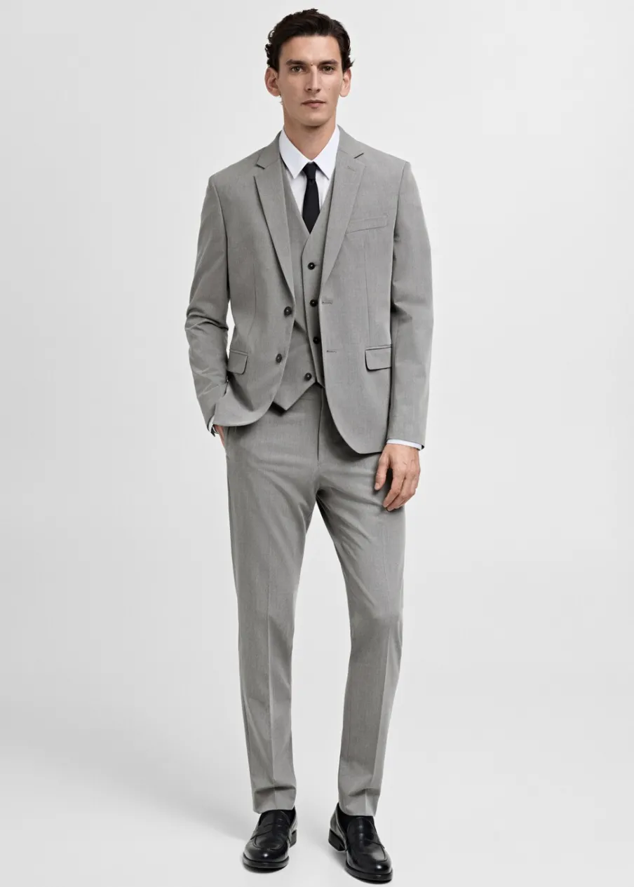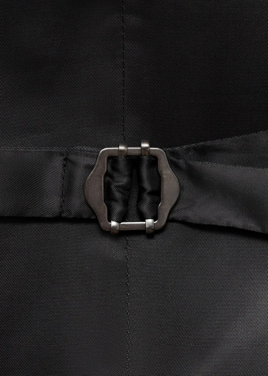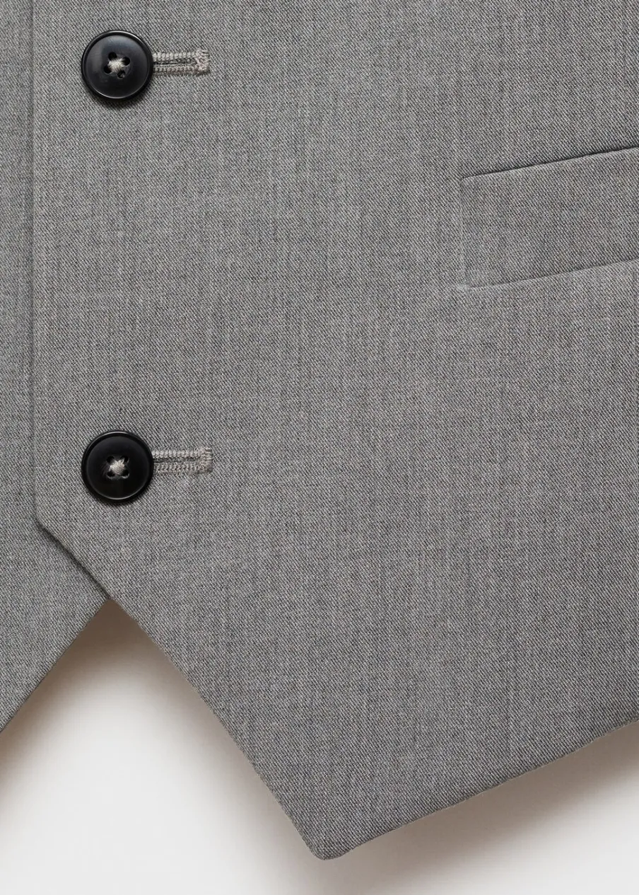 Super slim-fit. Tkanina stretch, która zapewnia maksymalną wygodę i swobodę ruchów. Dekolt V. Zapięcie na guziki z przodu. Dwie kieszenie z wypustkami z przodu. Bez rękawów. Regulacja na klamerkę z tyłu. Wewnętrzna podszewka. Wewnętrzna kieszeń. Model ma 190 cm wzrostu i nosi rozmiar 50.