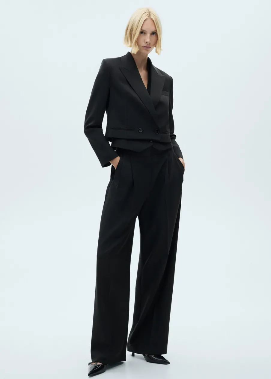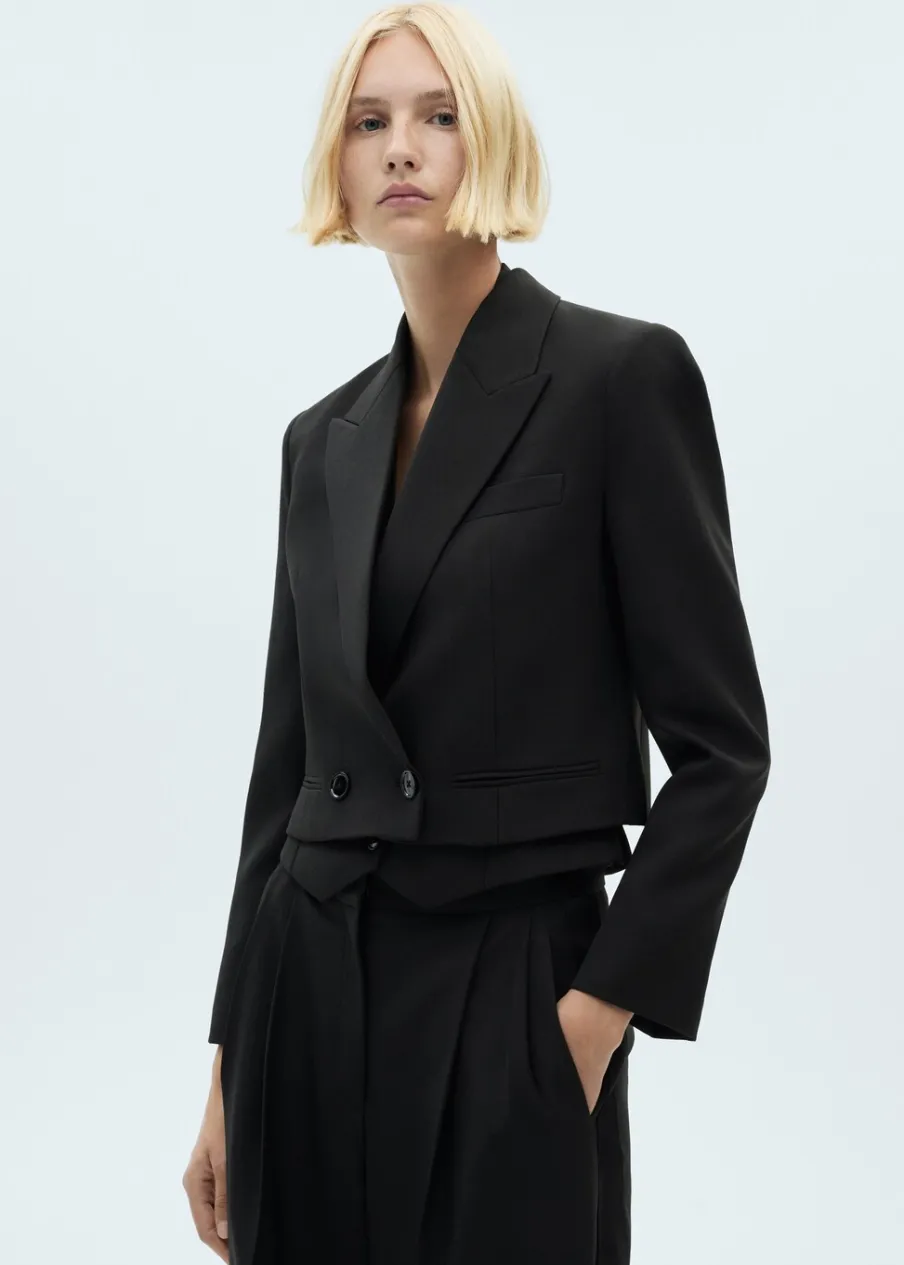 Deseń crop. Model prosty. Dekolt w szpic z kołnierzykiem. Długi rękaw. Kieszenie wpuszczane. Dwurzędowe zapięcie. Wewnętrzna podszewka. Kolekcja wizytowa. Total look.