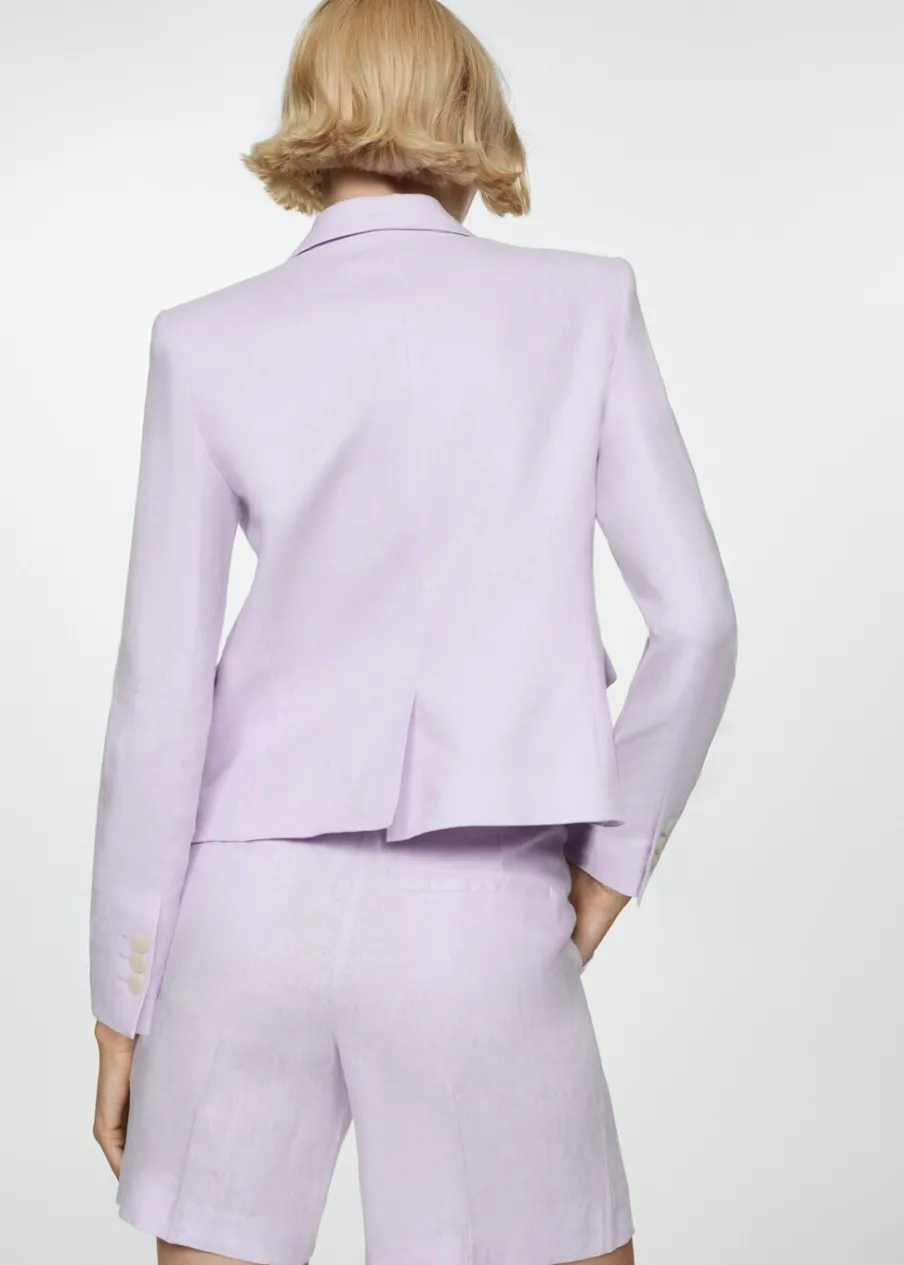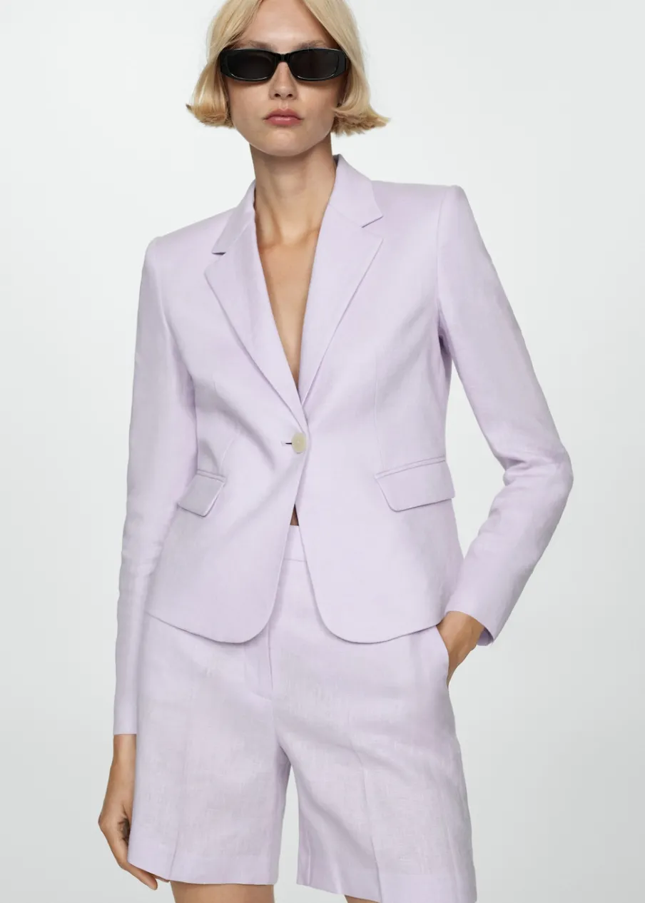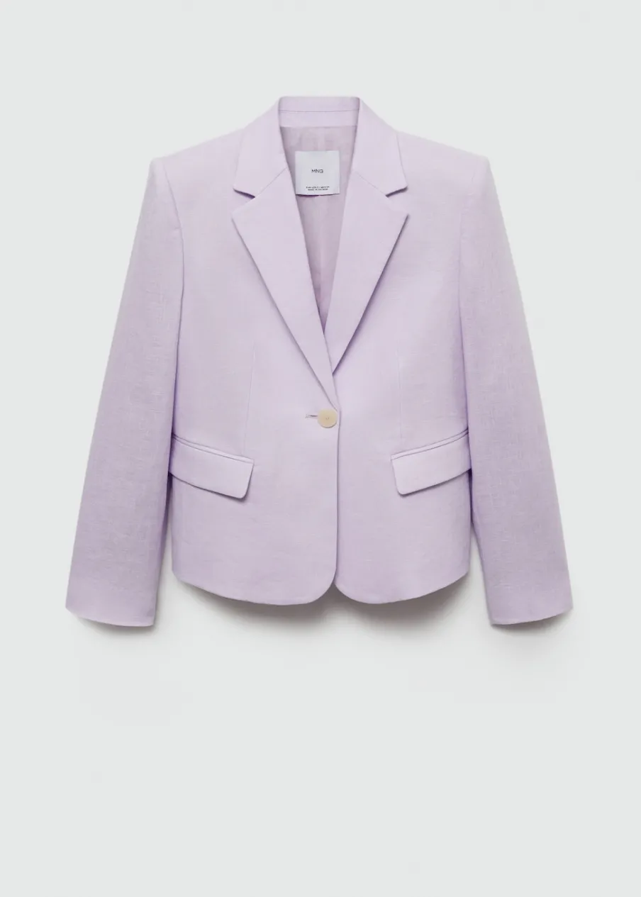 Tkanina z 100% lnu. Model prosty. Dekolt w szpic z kołnierzykiem. Klapy z nacięciem. Długi rękaw z guzikami na mankietach. Dwie kieszenie z patkami z przodu. Zapięcie z przodu na guzik. Wewnętrzna podszewka. Total look.