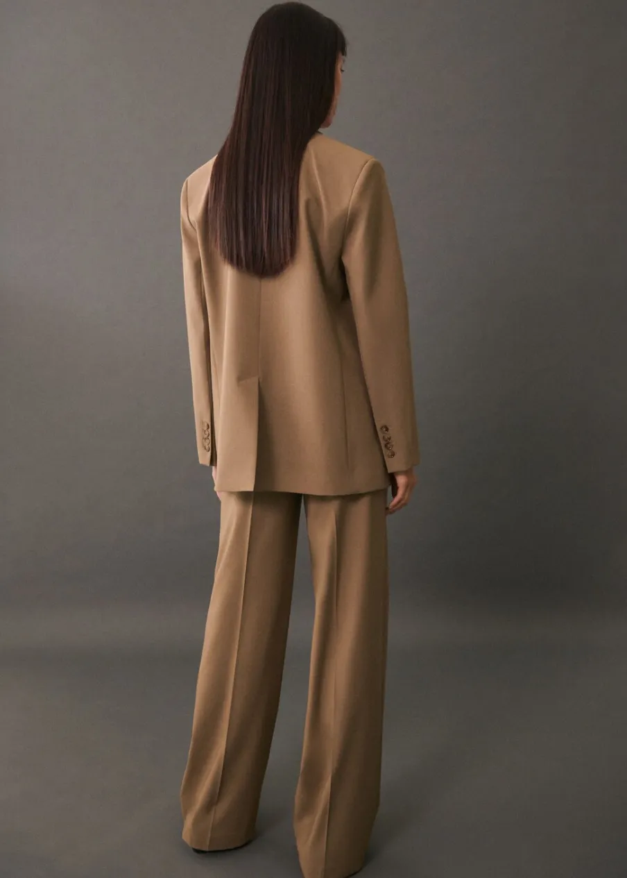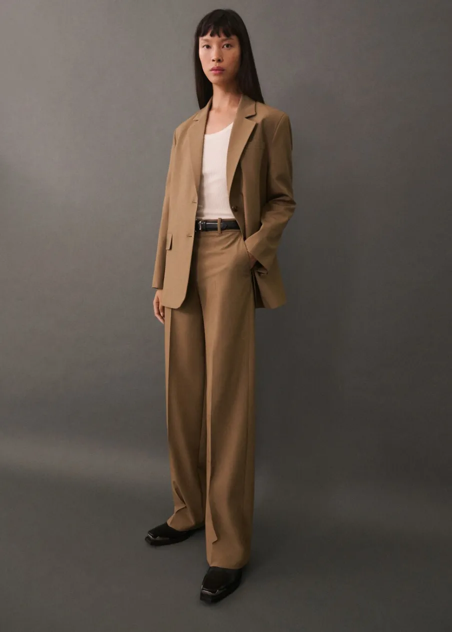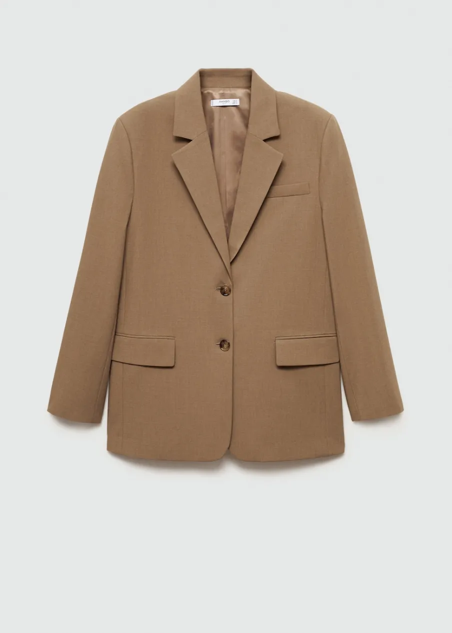 OpisModel prosty. Dekolt w szpic z kołnierzykiem. Klapy z nacięciem. Długi rękaw z guzikami na mankietach. Dwie kies…