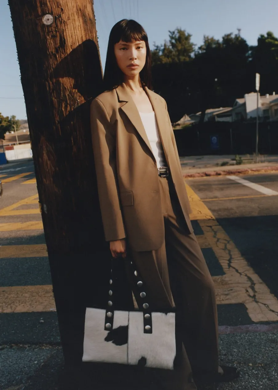 Model prosty. Dekolt w szpic z kołnierzykiem. Klapy z nacięciem. Długi rękaw z guzikami na mankietach. Dwie kieszenie z patkami z przodu. Kieszeń wpuszczana na piersi. Wewnętrzna podszewka. Zapięcie na guziki z przodu.