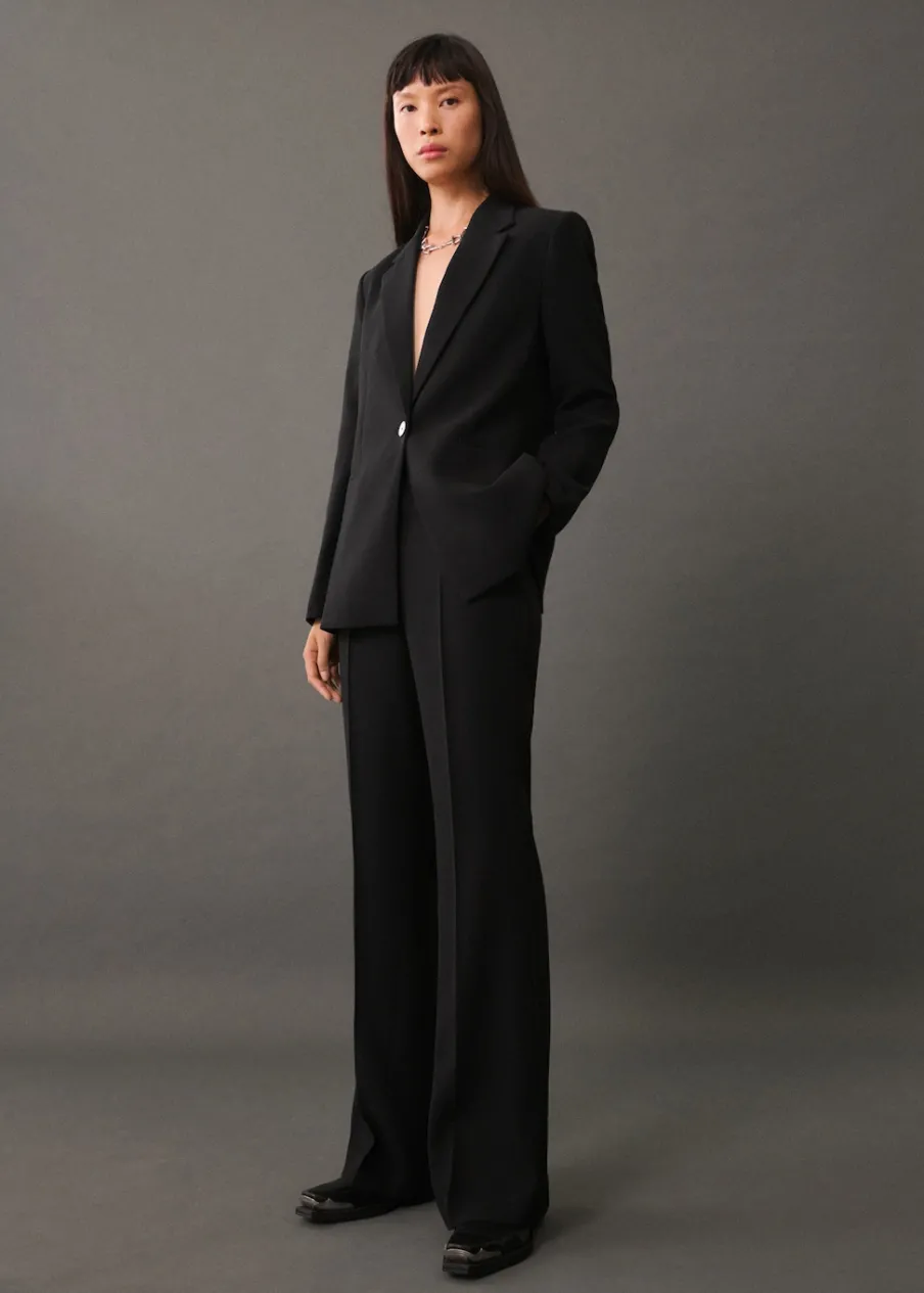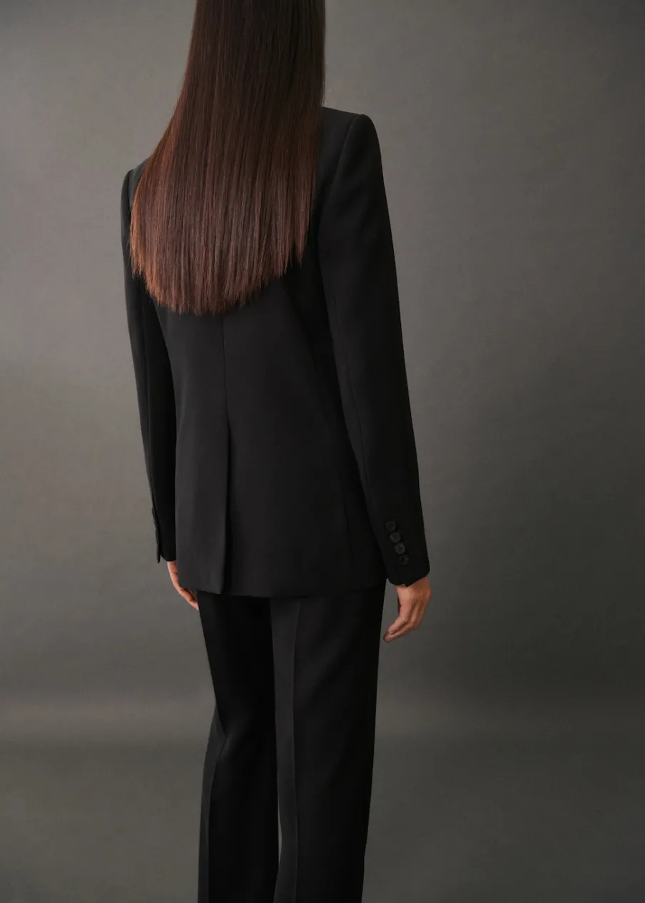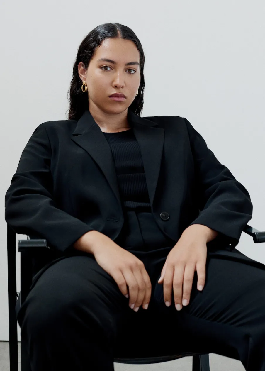 Model prosty. Dekolt w szpic z kołnierzykiem. Klapy z nacięciem. Długi rękaw z guzikami na mankietach. Dwie kieszenie z przodu z wypustkami i patką. Zapięcie na dwa guziki z przodu. Total look. Wewnętrzna podszewka. Stylizacje biurowe. Dostępne w Plus Size.