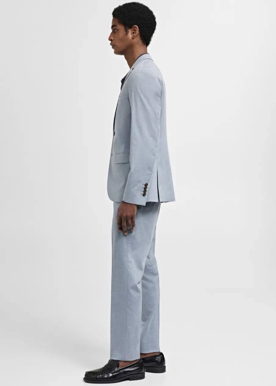 Super slim-fit. Comfort stretch: elastyczna tkanina dla większego komfortu. Klapy otwarte z butonierką. Zapięcie na dwa guziki z przodu. Kieszeń wpuszczana na piersi. Dwie kieszenie z patką z przodu. Długi rękaw z guzikami na mankietach. Podwójne rozcięcie z tyłu. Wewnętrzna podszewka. Dwie kieszenie z wypustkami po wewnętrznej stronie. Model ma 185 cm wzrostu i nosi rozmiar 50. Komfort: to ubranie zapewnia pełną swobodę ruchu i odzyskuje swój pierwotny kształt.