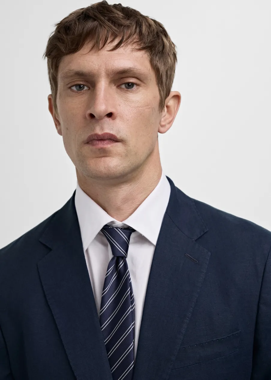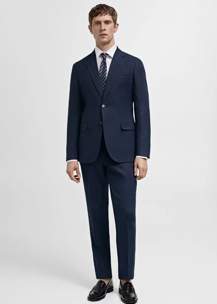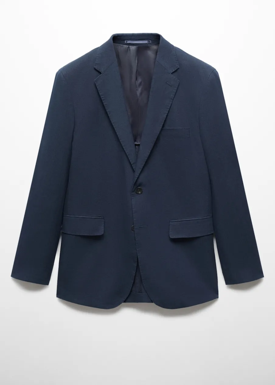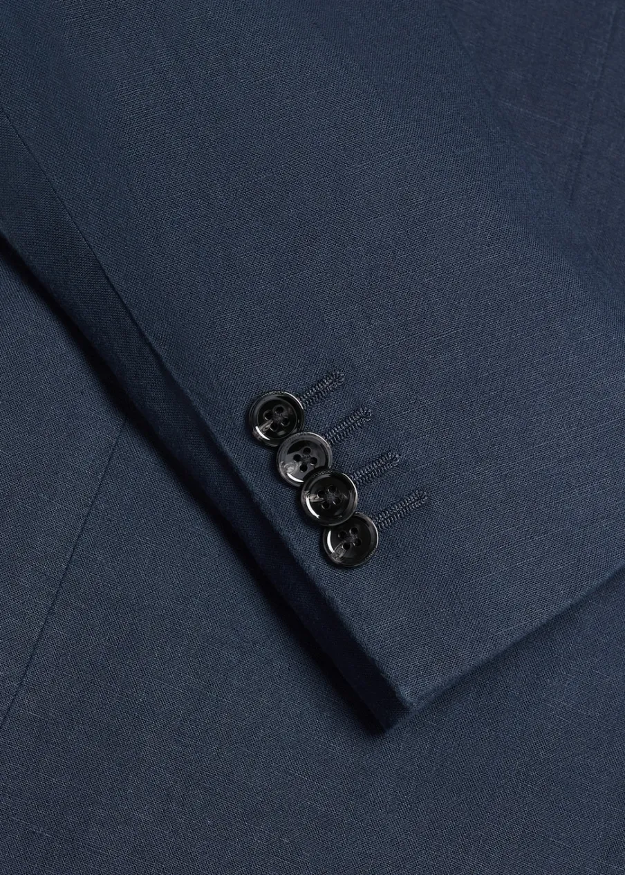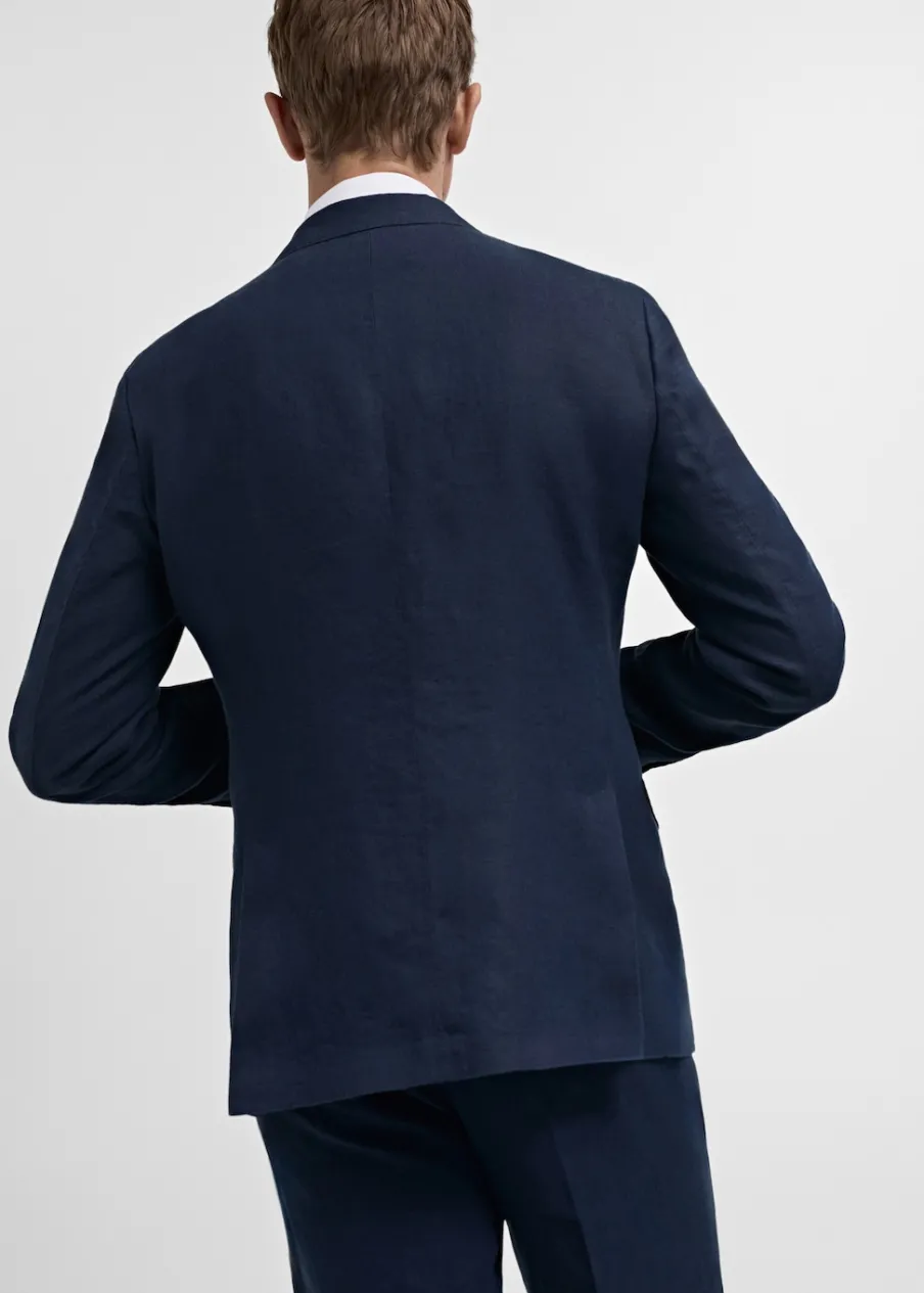 Kampania z Antoinem Griezmannem. Slim-fit. Tkanina z 100% lnu. Klapy otwarte z butonierką. Kieszeń wpuszczana na piersi. Dwie kieszenie z patkami z przodu. Długi rękaw z patkami na guziki na mankiecie. Wewnętrzna podszewka. Trzy kieszenie wewnętrzne. Model ma 185 cm wzrostu i nosi rozmiar 50. Dwie szlice z tyłu. Zapięcie na guziki z przodu.