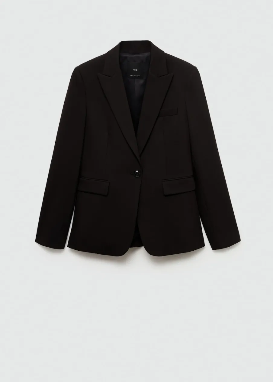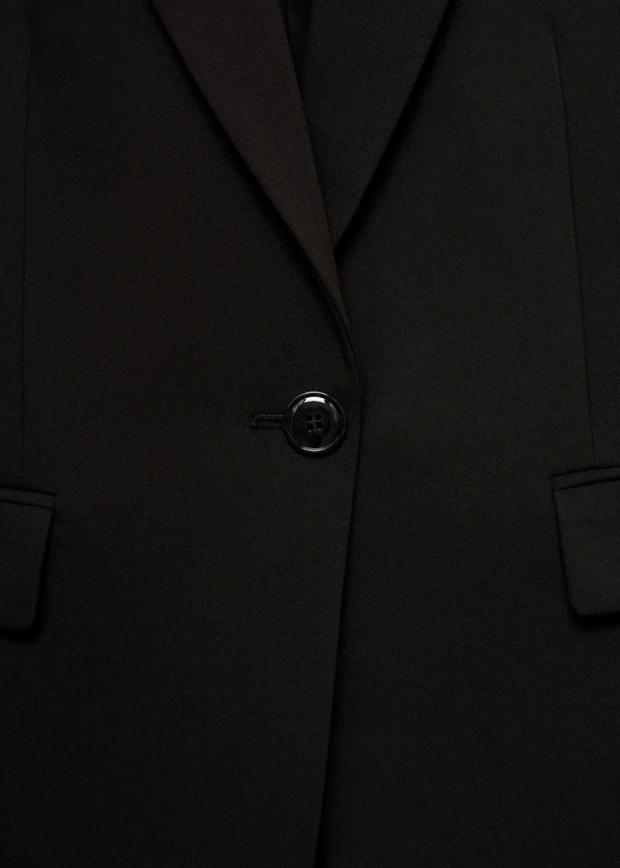 OpisModel prosty. Dekolt w szpic z kołnierzykiem. Klapy z nacięciem. Długi rękaw. Usztywnione ramiona. Detal z zakł…
