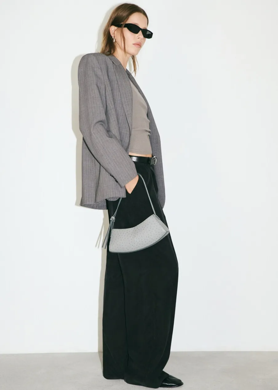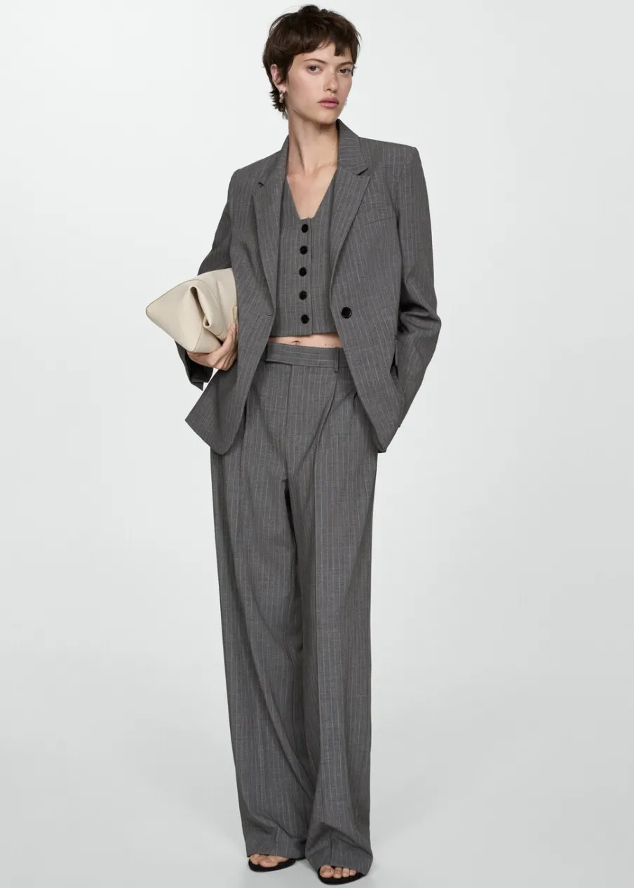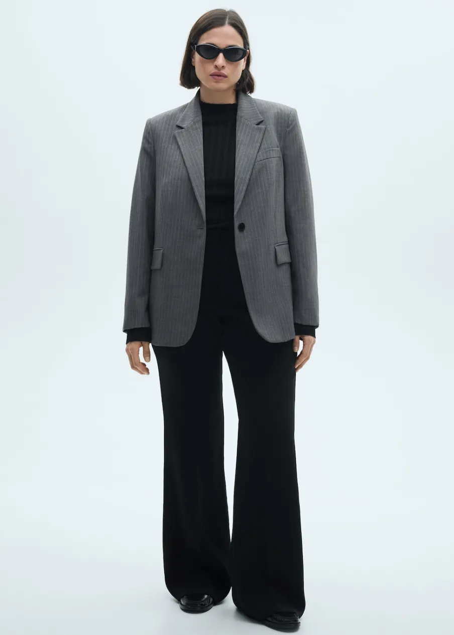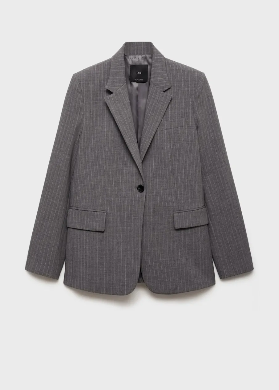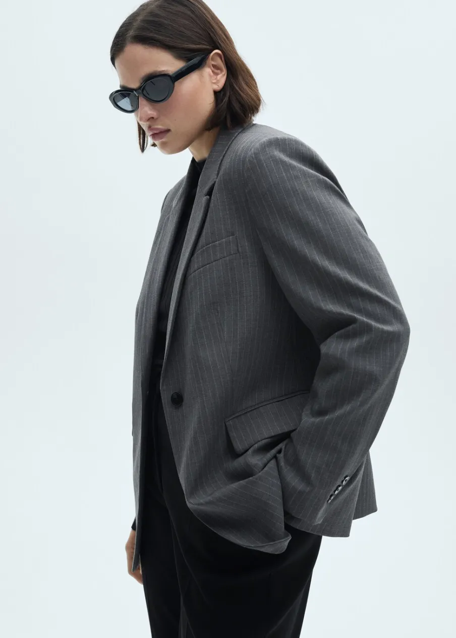 Model prosty. Deseń w prążki. Dekolt w szpic z kołnierzykiem. Kieszeń wpuszczana z ozdobną patką. Zapięcie z przodu na guzik. Wewnętrzna podszewka. Total look. Długi rękaw z zapięciem na guziki.