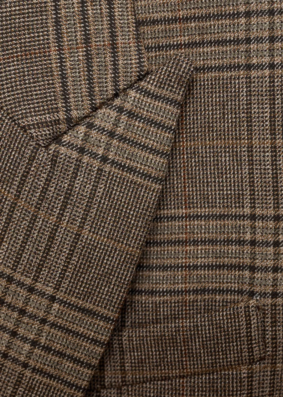 Deseń w kratę. Model prosty. Dekolt w szpic z kołnierzykiem. Długi rękaw z zapięciem na guziki. Dwie kieszenie z przodu z wypustkami i patką. Zapięcie z przodu na guzik. Wewnętrzna podszewka.