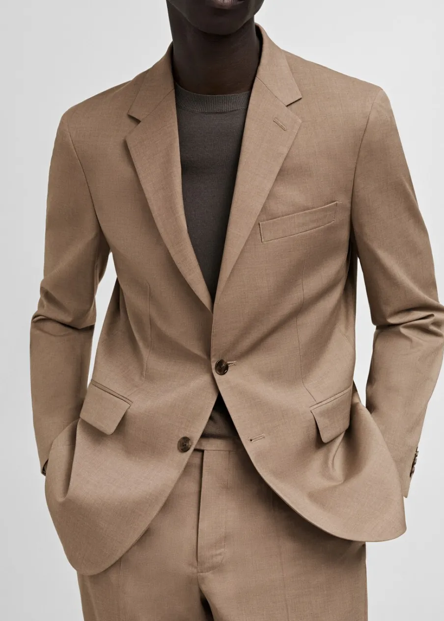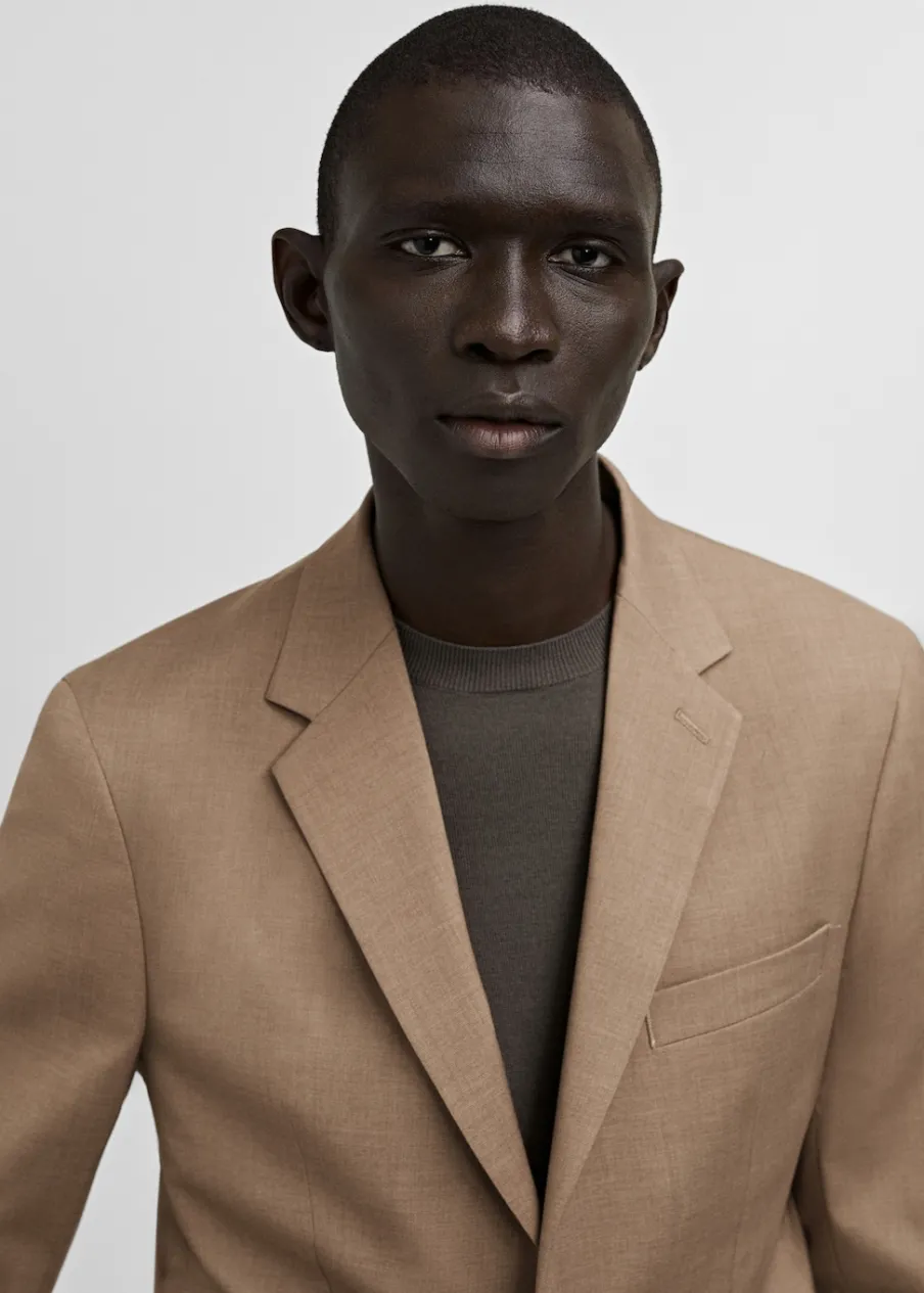 OpisSlim Fit. Kołnierz z klapami. Dwurzędowe zapięcie. Dwie kieszenie z patkami z przodu. Kieszeń wpuszczana na pier…