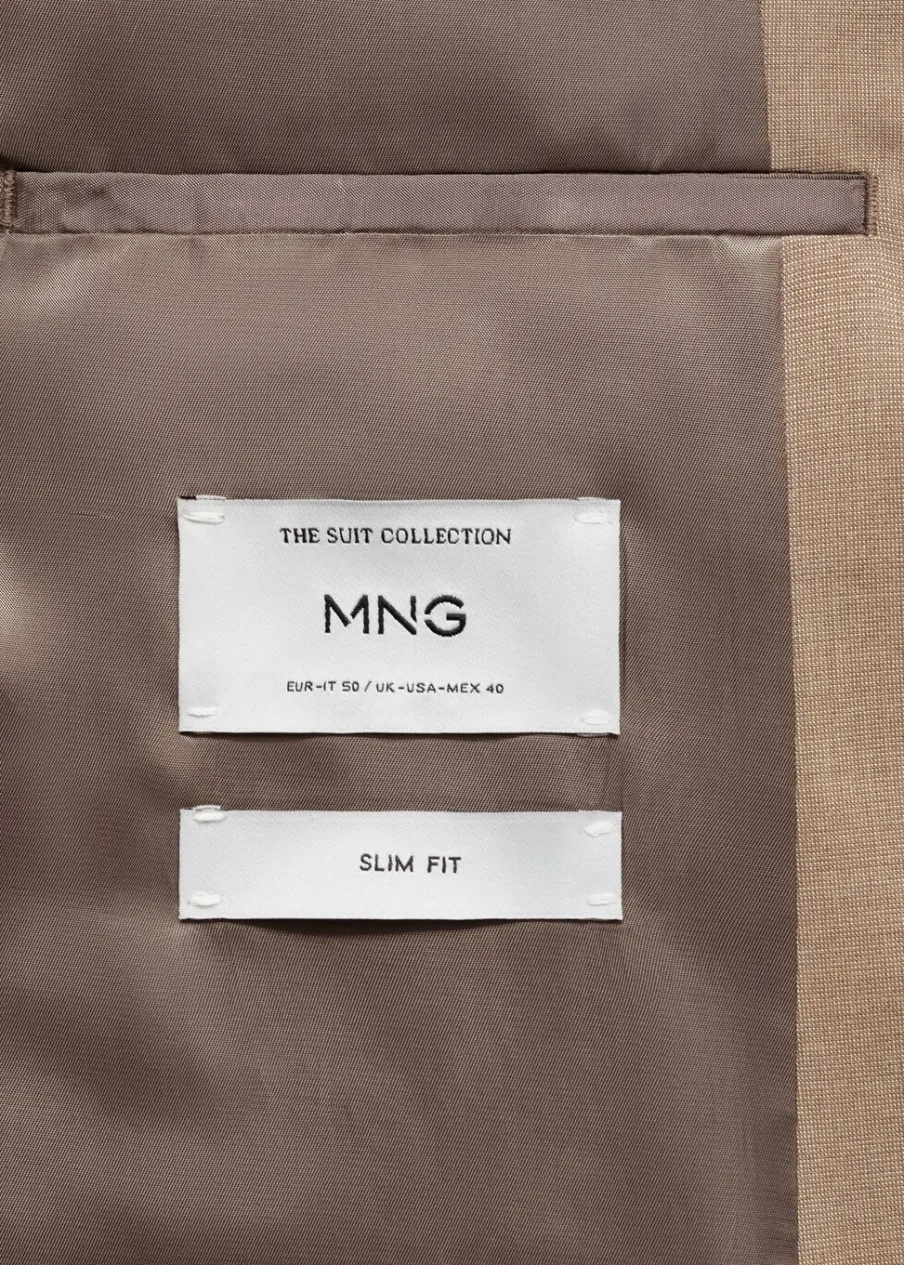 Slim Fit. Kołnierz z klapami. Dwurzędowe zapięcie. Dwie kieszenie z patkami z przodu. Kieszeń wpuszczana na piersi. Wewnętrzna podszewka. Wewnętrzna kieszeń. Rozcięcie z tyłu. Model ma 185 cm wzrostu i nosi rozmiar 50.