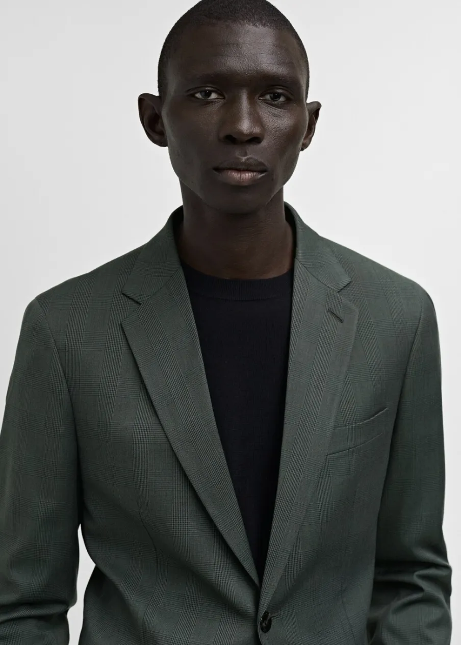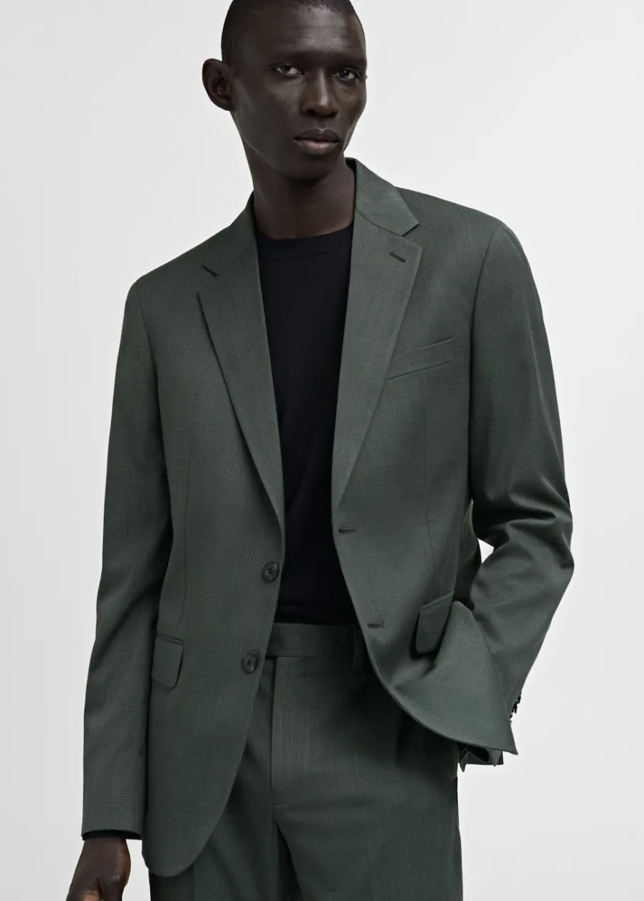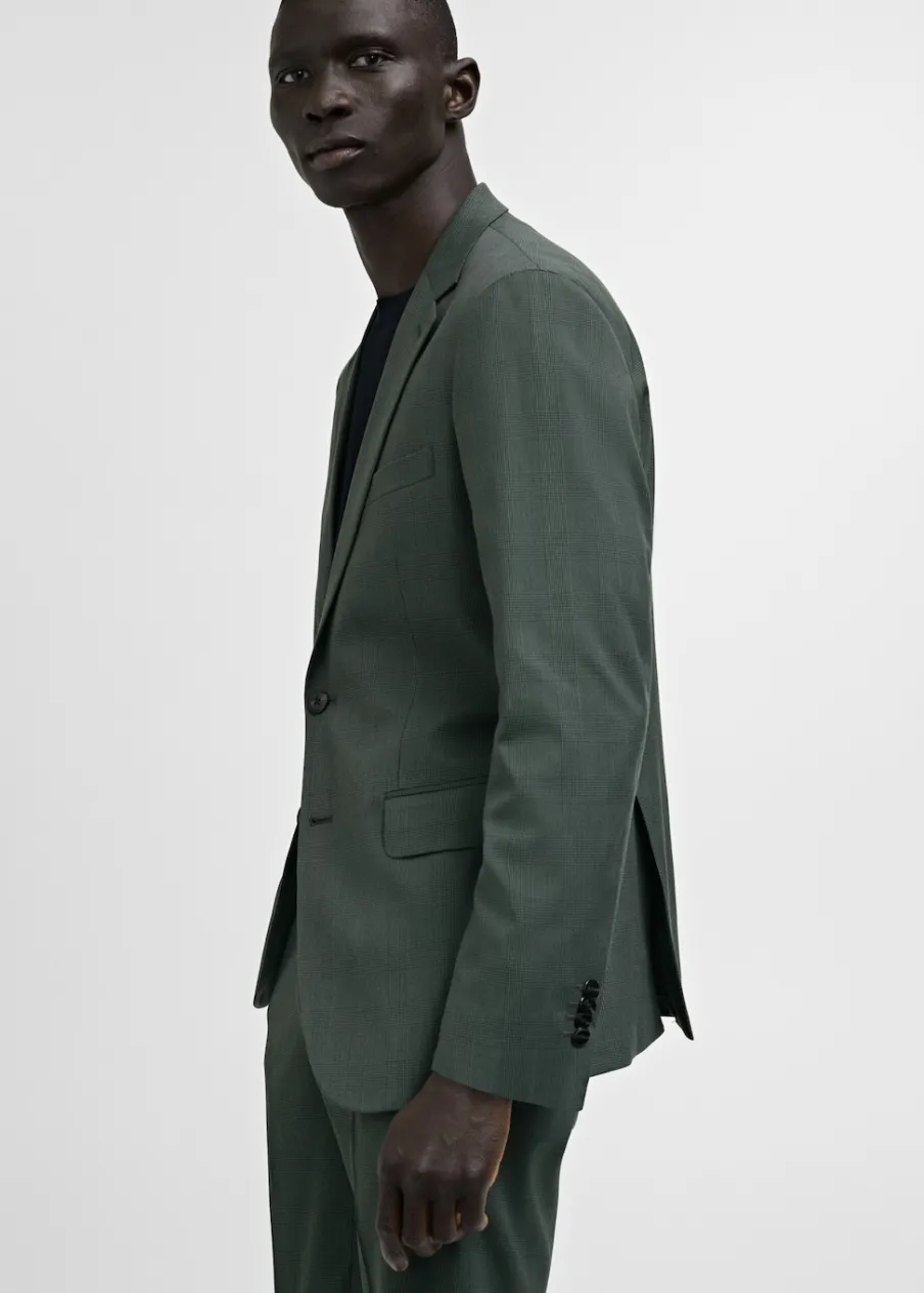 Wzór w kratę Księcia Walii. Slim Fit. Kołnierz z klapami. Dwurzędowe zapięcie. Dwie kieszenie z patkami z przodu. Kieszeń wpuszczana na piersi. Zapinane mankiety. Rozcięcie z tyłu. Wewnętrzna kieszeń. Wewnętrzna podszewka. Model ma 185 cm wzrostu i nosi rozmiar M.