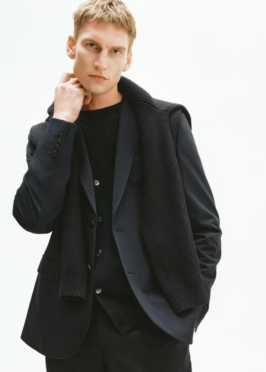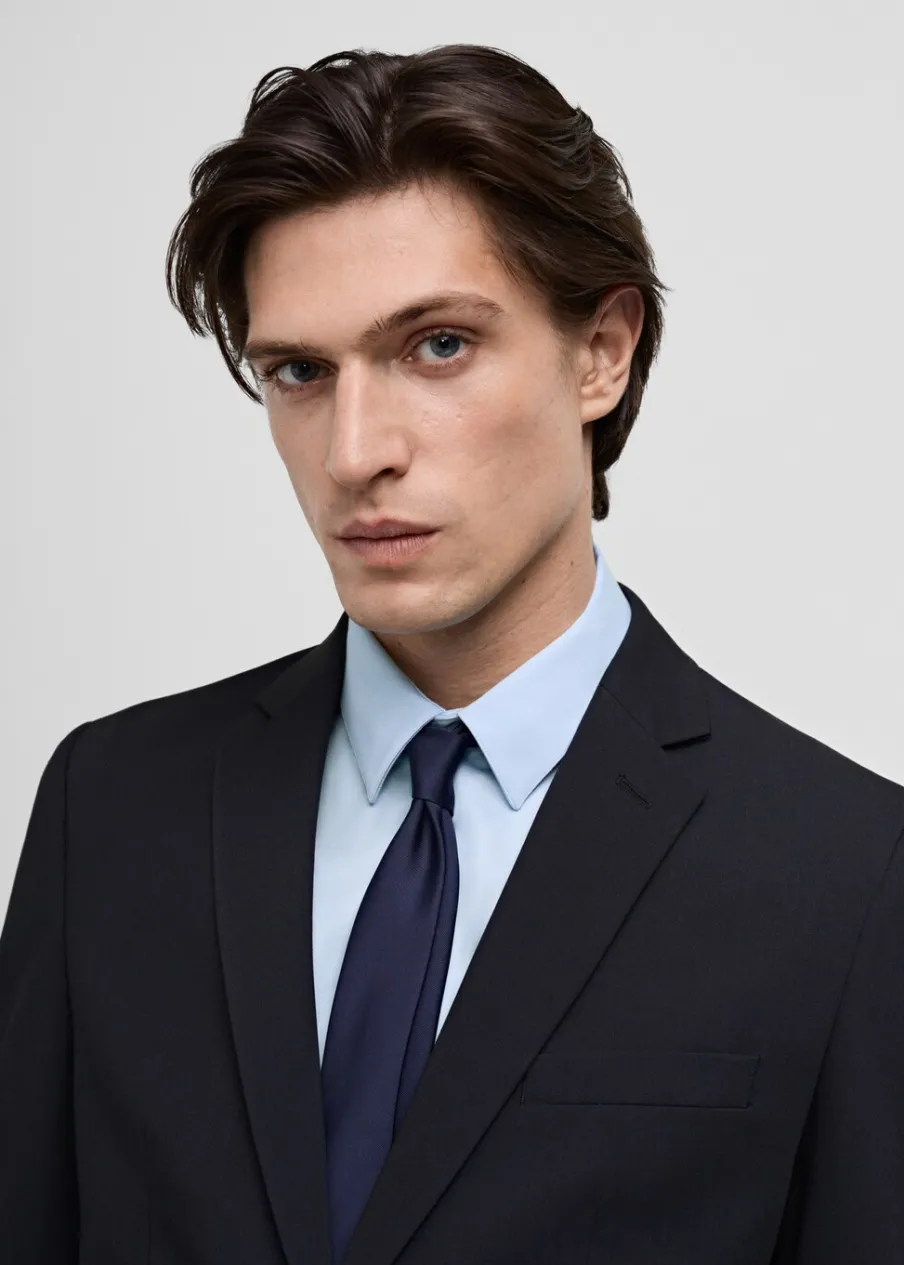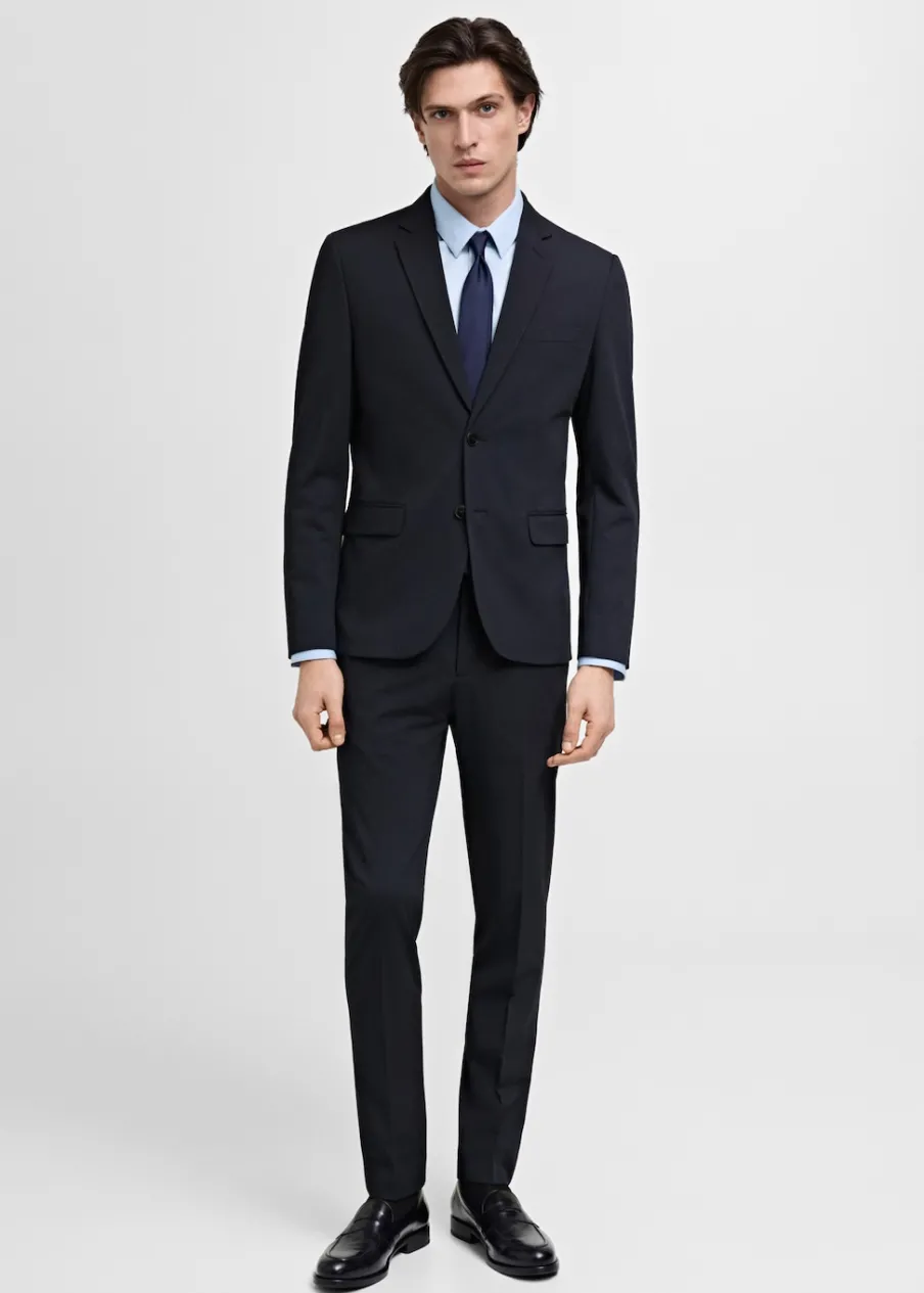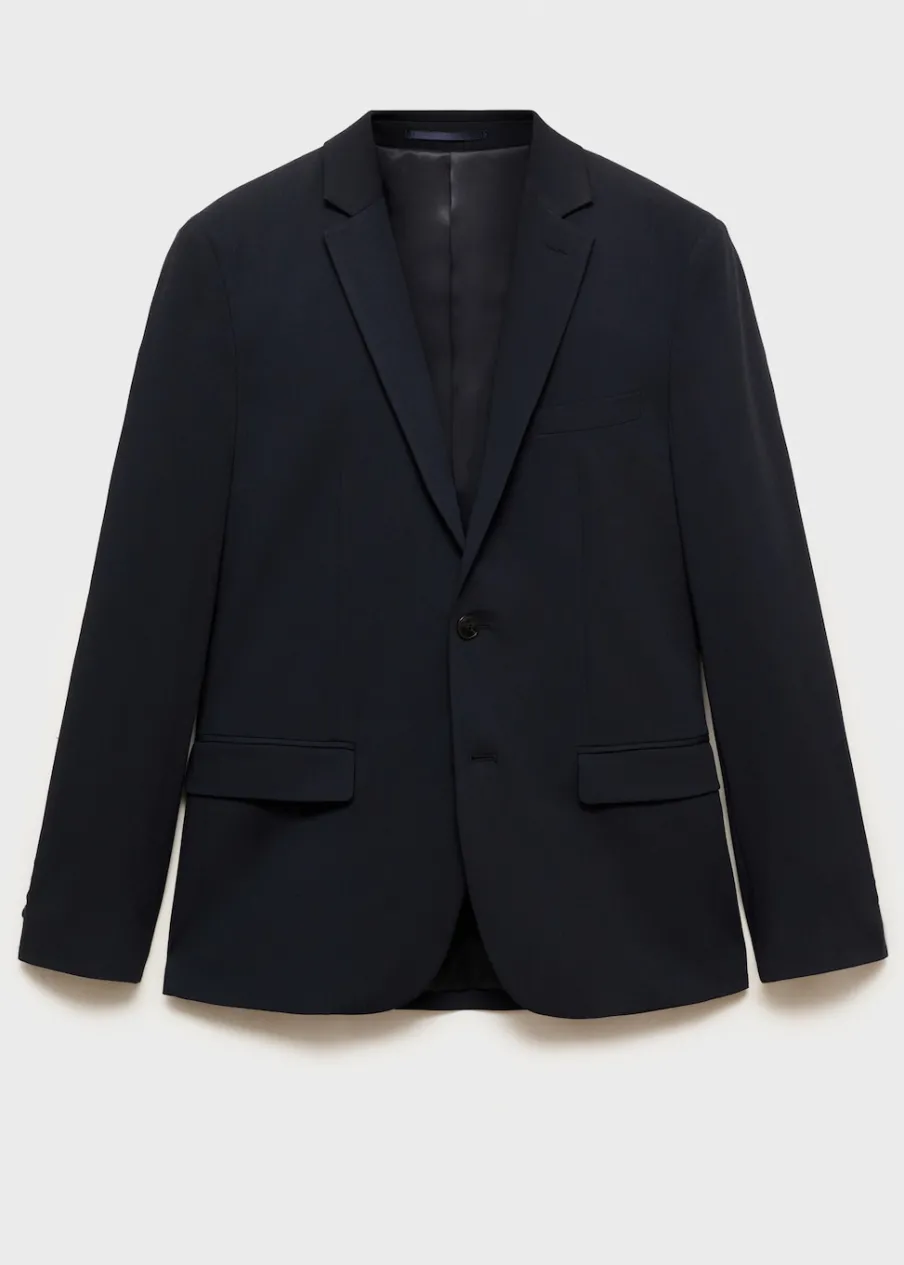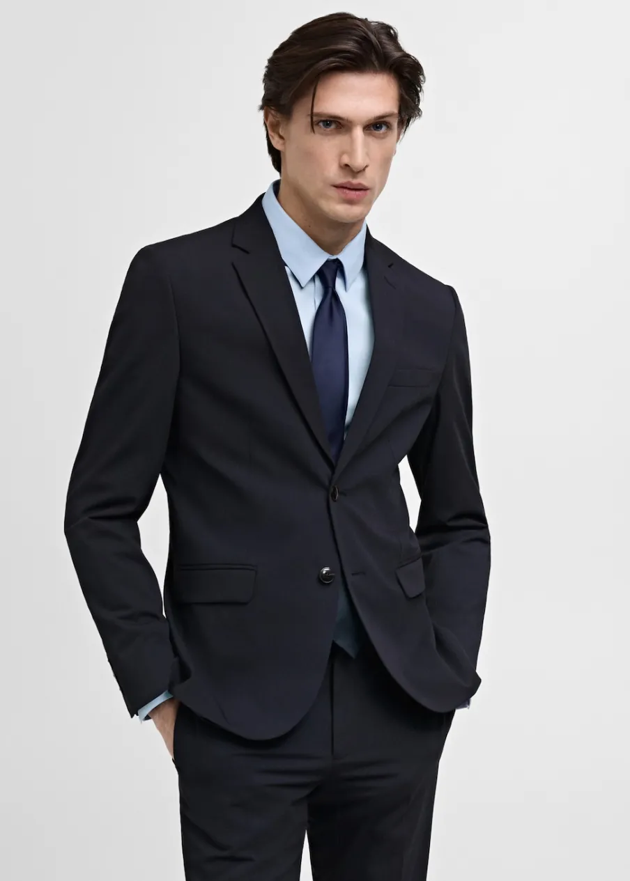 Super slim-fit. Tkanina stretch, która zapewnia maksymalną wygodę i swobodę ruchów. Kołnierz z klapami. Zapięcie na guziki z przodu. Kieszeń wpuszczana na piersi. Dwie wpuszczane kieszenie z patkami z przodu. Długi, zapinany rękaw. Dwie szlice z tyłu. Wewnętrzna podszewka. Wewnętrzna kieszeń. Model ma 190 cm wzrostu i nosi rozmiar 50.