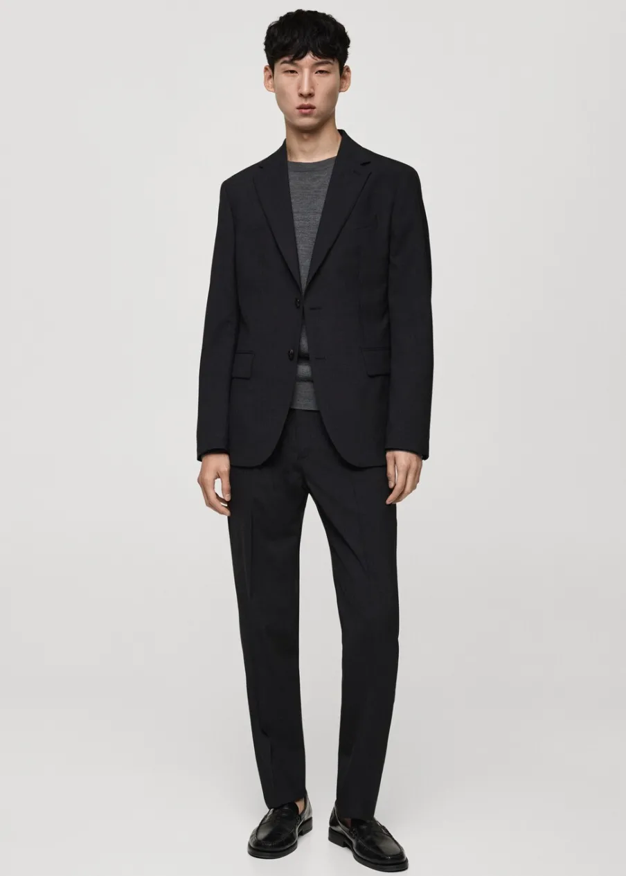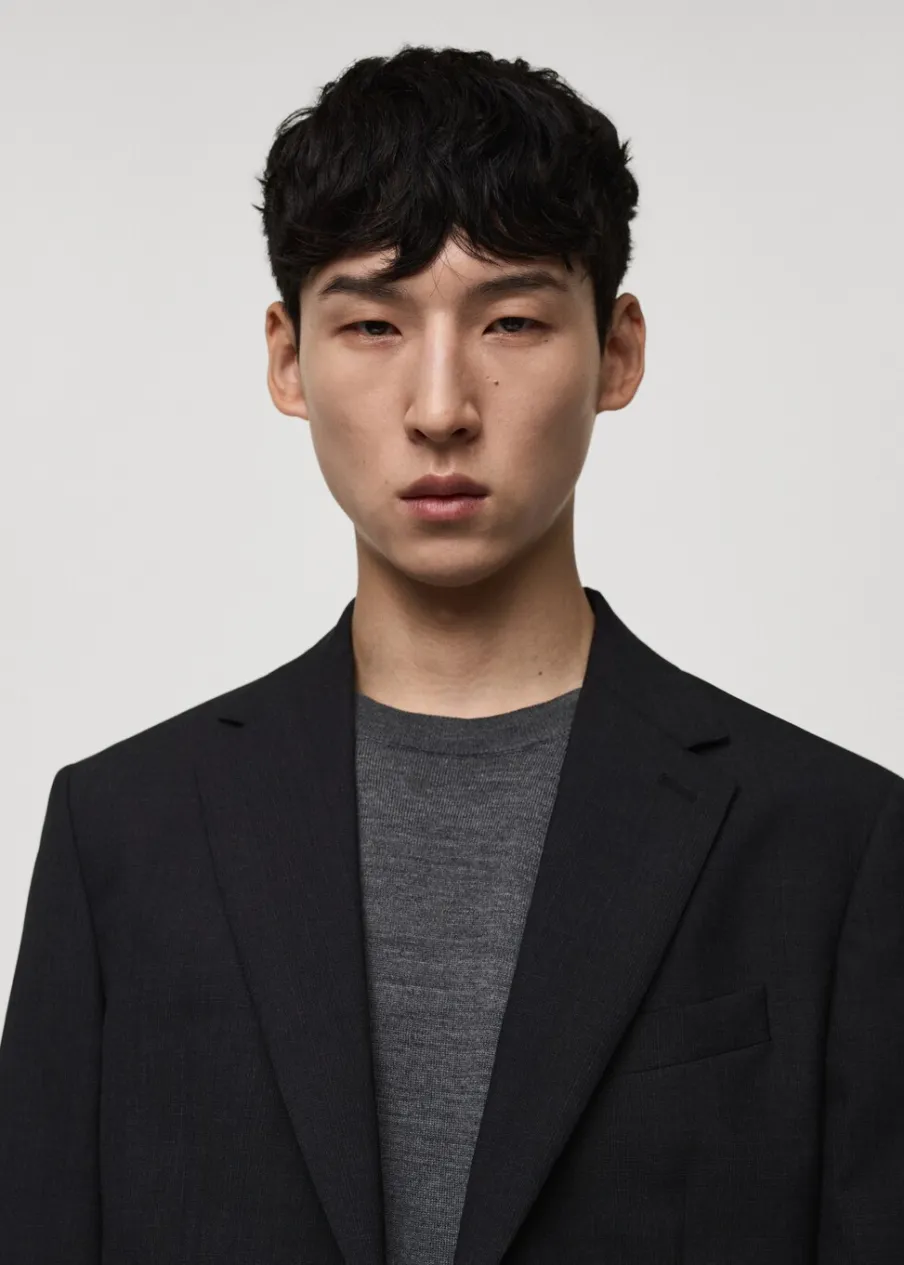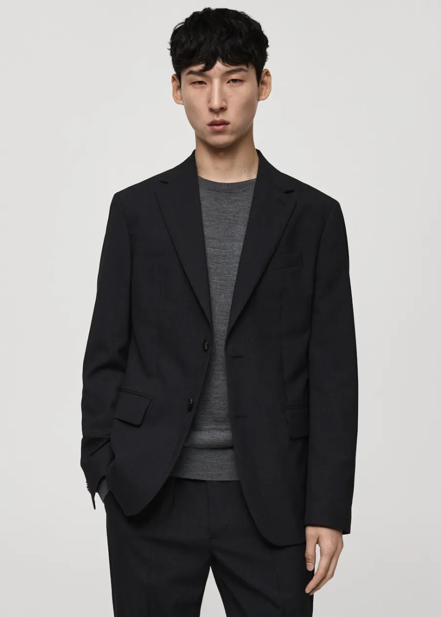 ESSENTIALS: Made to last. Tkanina z 100% wełny dziewiczej. Slim-fit. Kieszeń wpuszczana na piersi. Dwie kieszenie z przodu z wypustkami i patką. Wewnętrzna podszewka. Kieszenie wewnętrzne. Termoregulacyjna: ta tkanina zapewnia optymalną przepuszczalność powietrza, by utrzymać stałą temperaturę ciała. Model ma 190 cm wzrostu i nosi rozmiar 50. Dwie szlice z tyłu. Klapy otwarte. Zapięcie na guziki z przodu. Długi rękaw z zapięciem na guziki.
