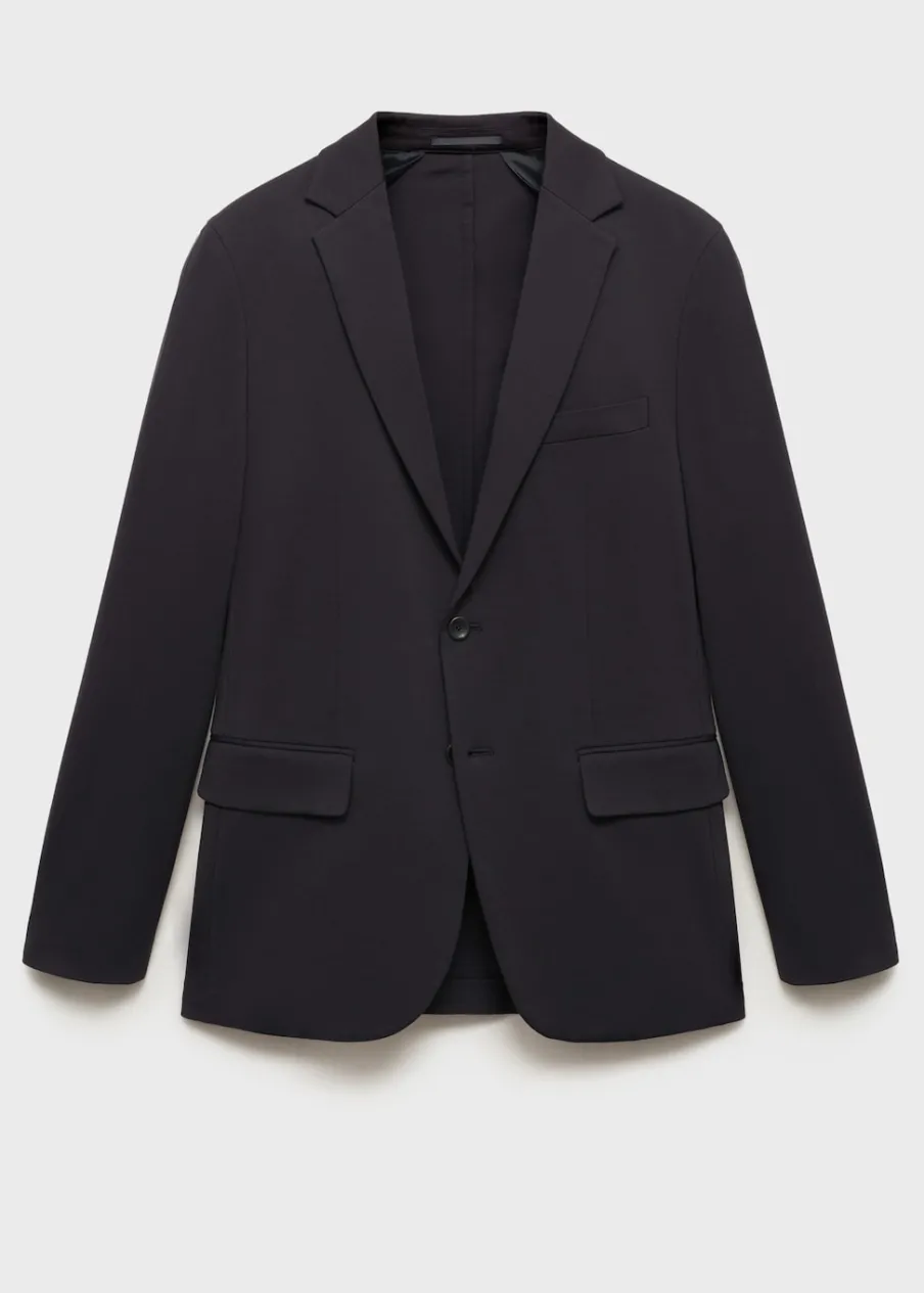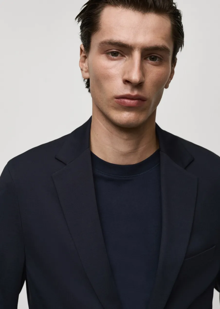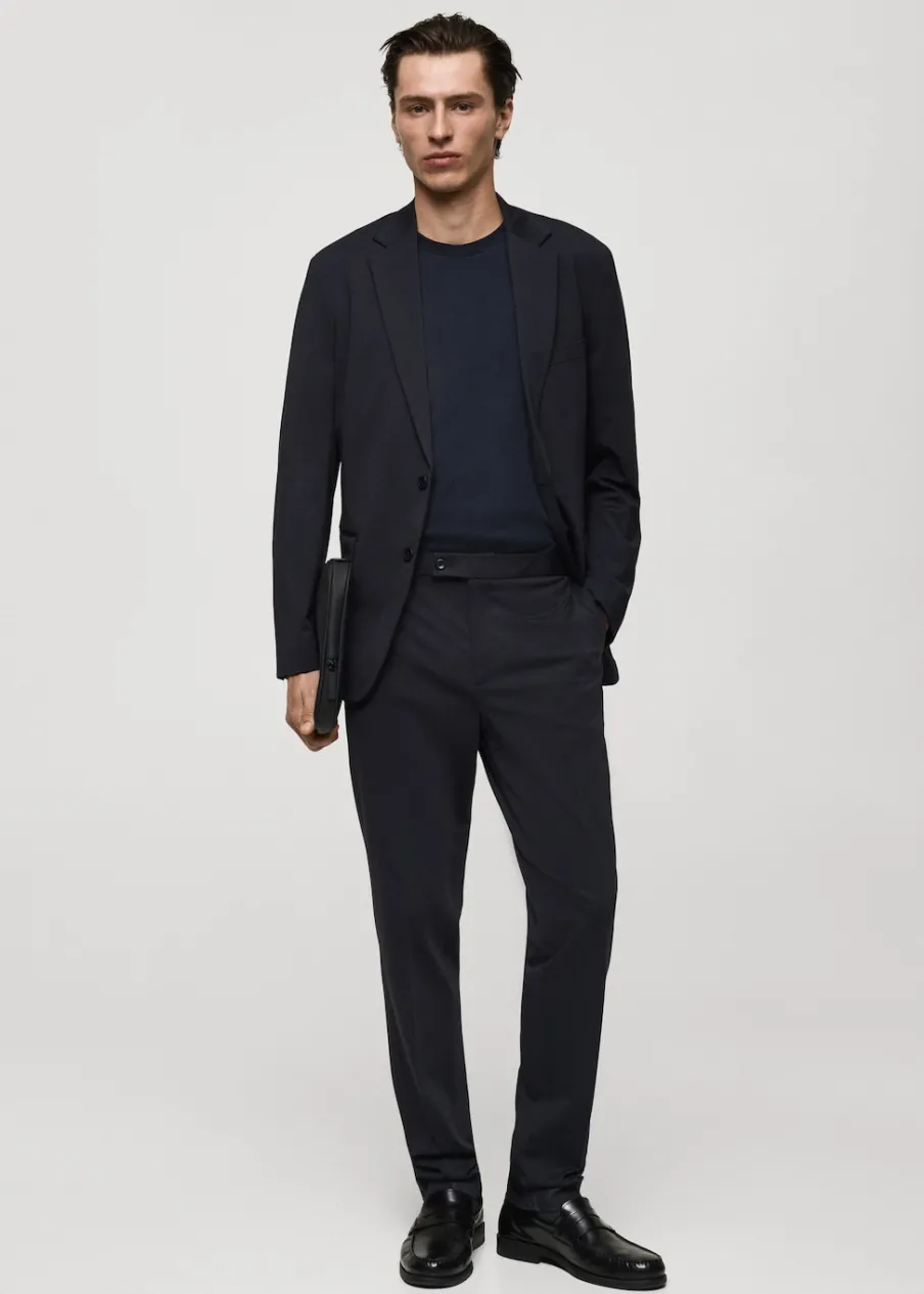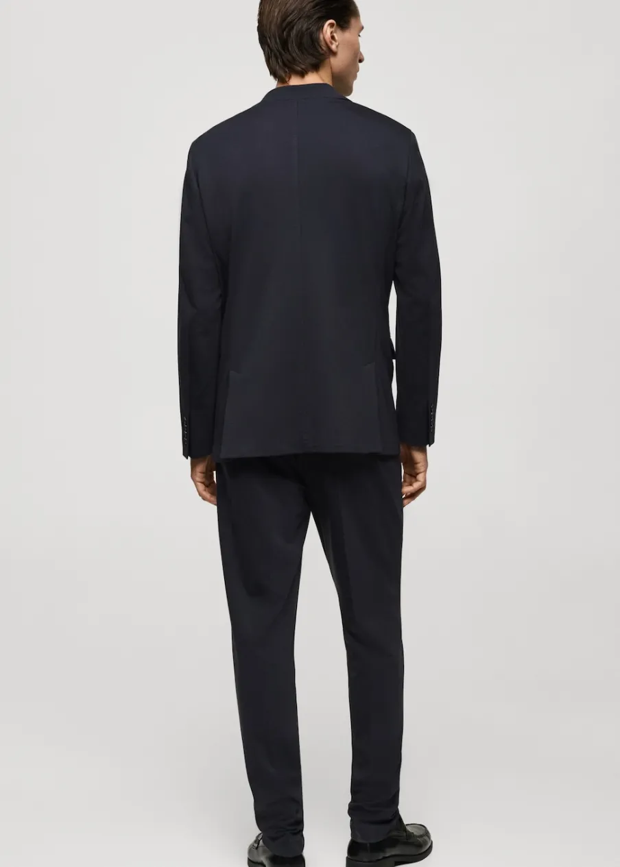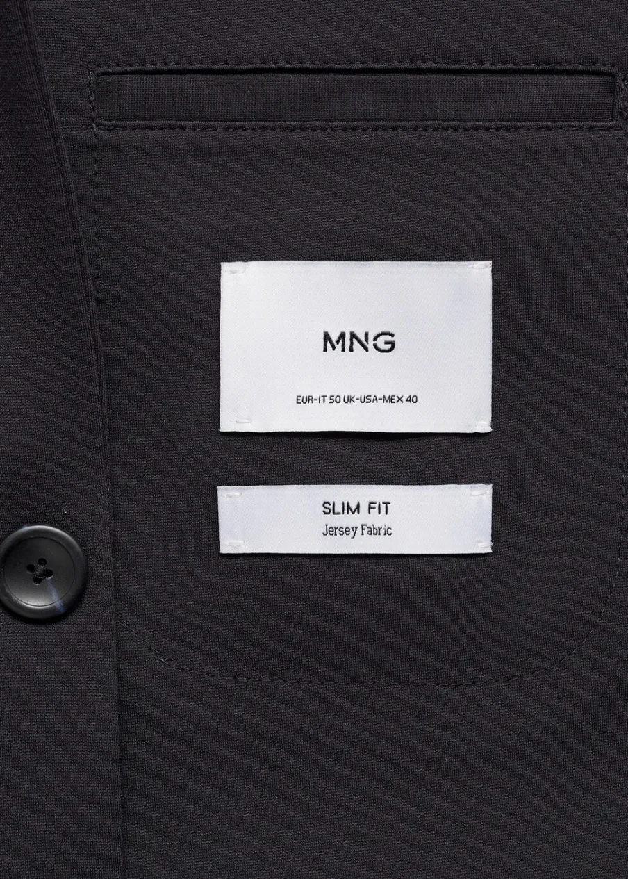 Slim-fit. Dwurzędowe zapięcie. Kieszeń wpuszczana na piersi. Dwie kieszenie z patką z przodu. Kołnierz z klapami. Zapinane mankiety. Rozcięcie z tyłu. Model ma 185 cm wzrostu i nosi rozmiar 50.