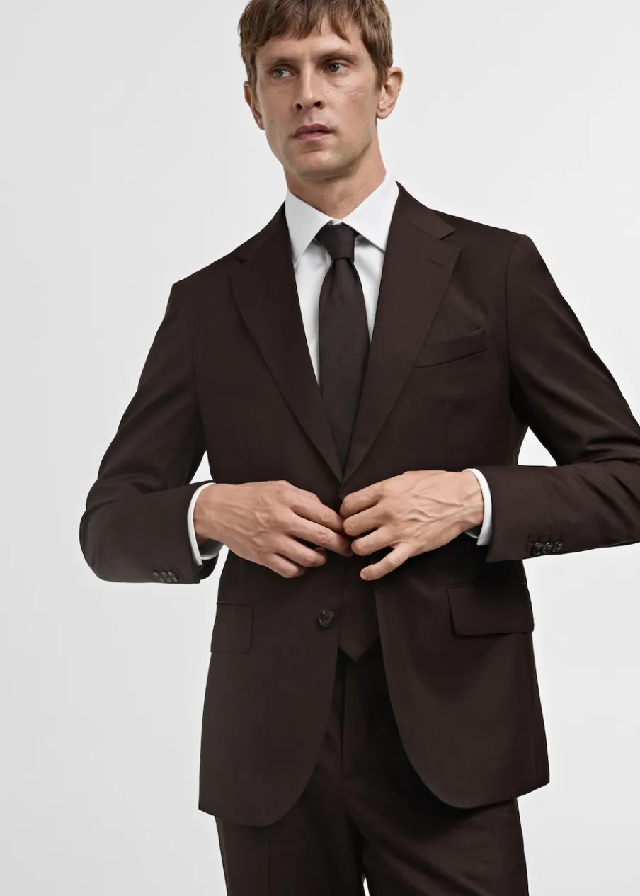 OpisSlim-fit. 100% wełna dziewicza. Klapy otwarte. Zapięcie na guziki. Zapinane mankiety. Kieszenie boczne z patkami. …