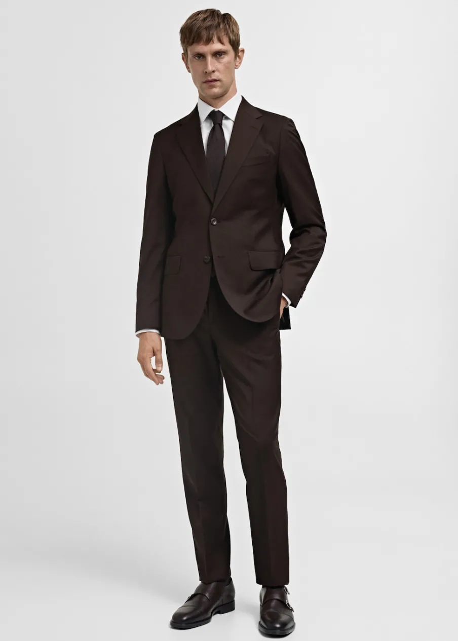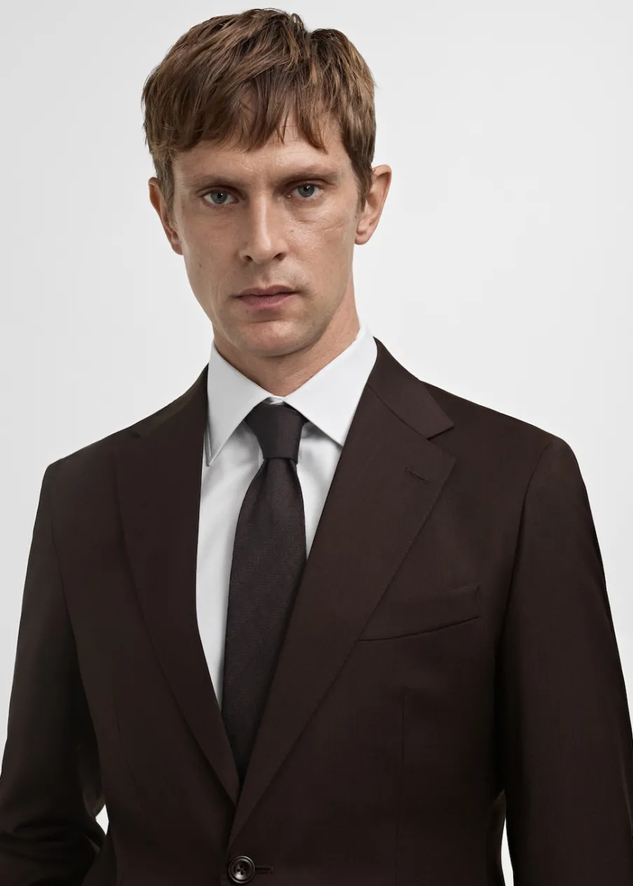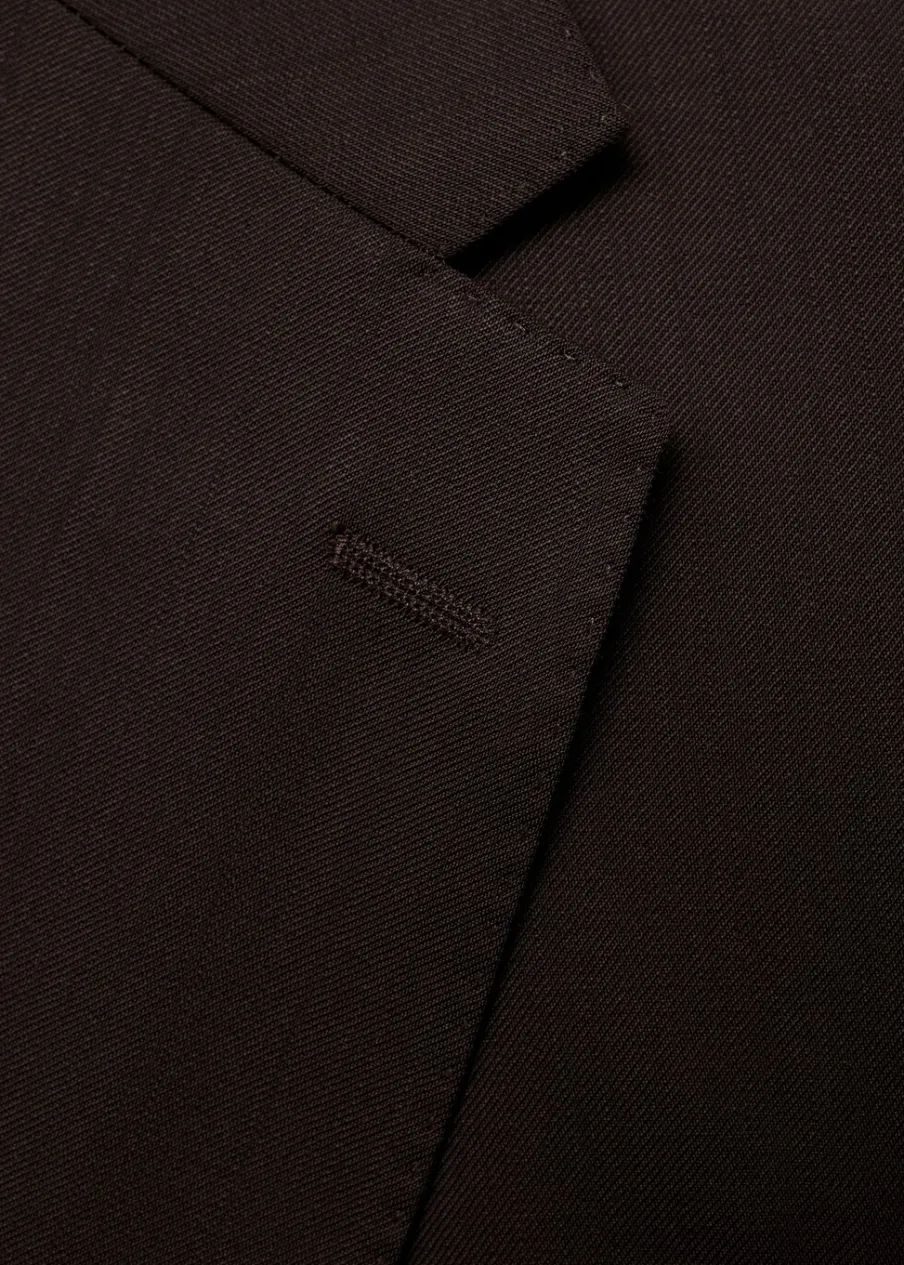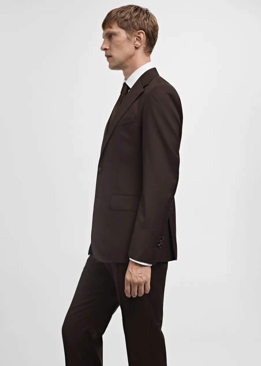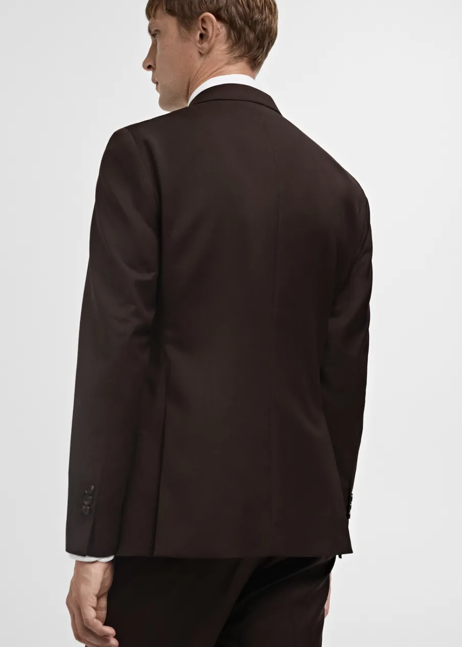 Slim-fit. 100% wełna dziewicza. Klapy otwarte. Zapięcie na guziki. Zapinane mankiety. Kieszenie boczne z patkami. Kieszeń wpuszczana na piersi. Dwa rozcięcia u dołu po bokach. Wewnętrzna podszewka. Model ma 185 cm wzrostu i nosi rozmiar 50.