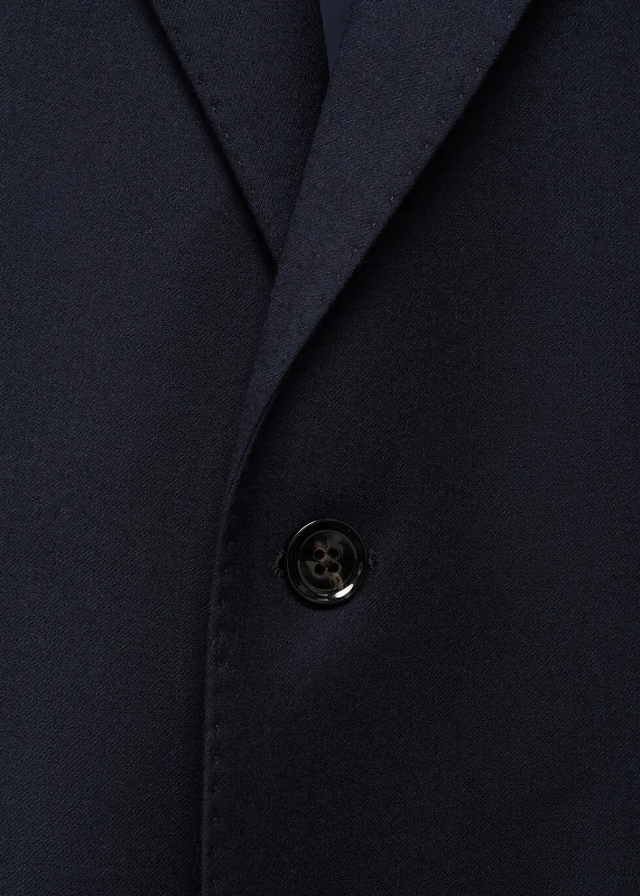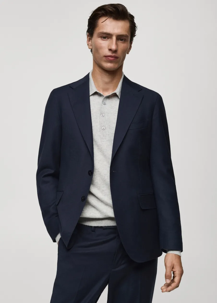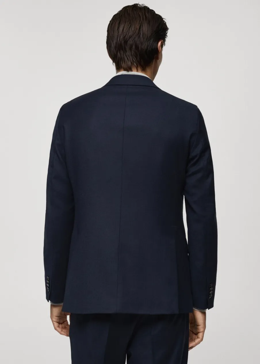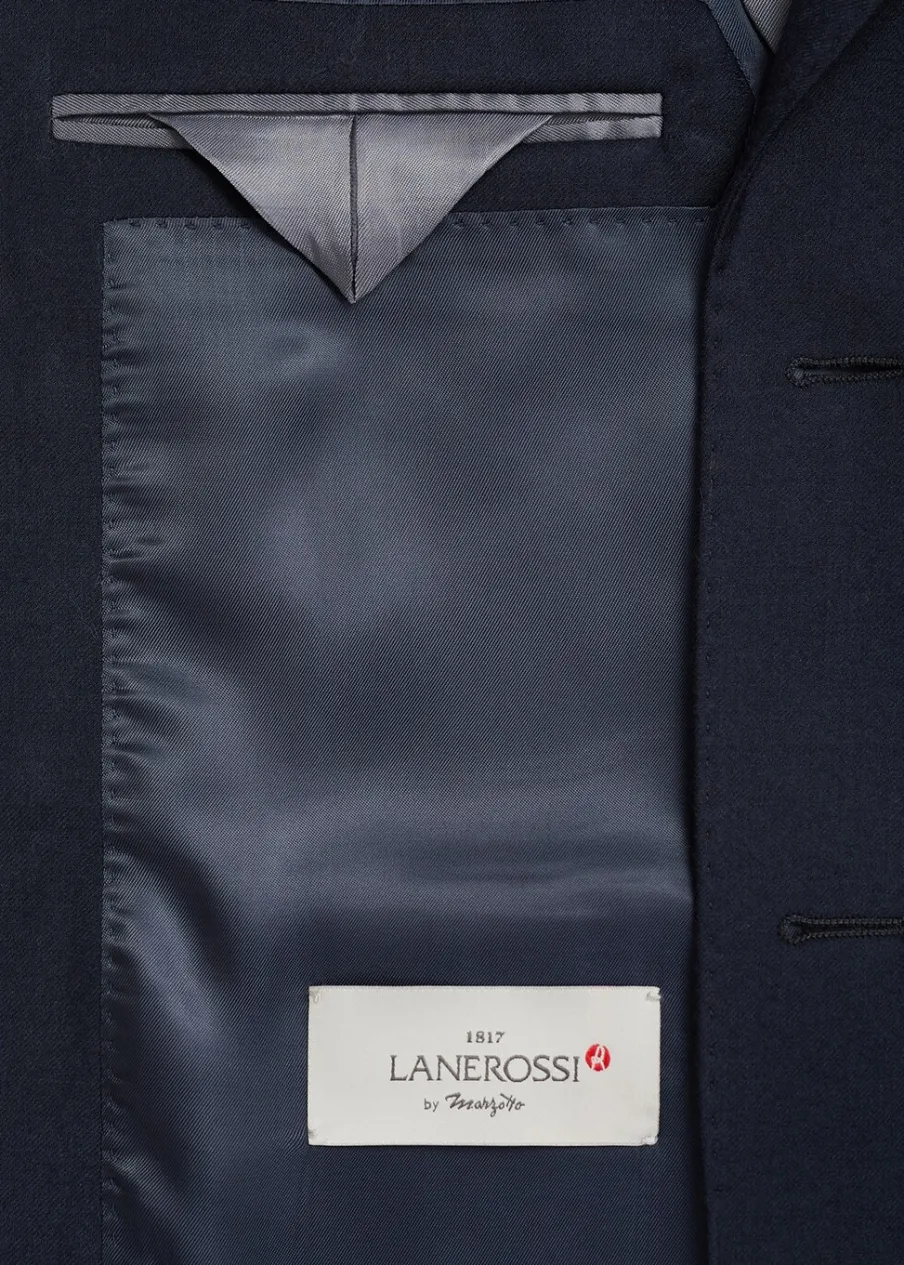 Kolekcja Selection. Wyprodukowano w Portugalii. Tkanina z 100% włoskiej wełny dziewiczej marki LANEROSSI BY MARZOTTO. Slim-fit. Klapy otwarte. Zapięcie na guzik z przodu. Kieszeń wpuszczana na piersi. Dwie kieszenie z przodu z wypustkami i patką. Długi rękaw z guzikami na mankietach. Wewnętrzna podszewka. Wewnętrzna kieszeń. Model ma 190 cm wzrostu i nosi rozmiar 50. Dwie szlice z tyłu.
