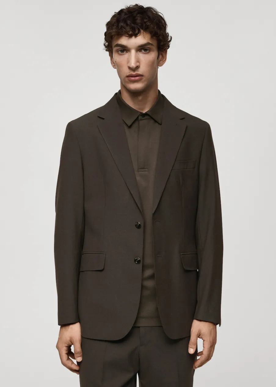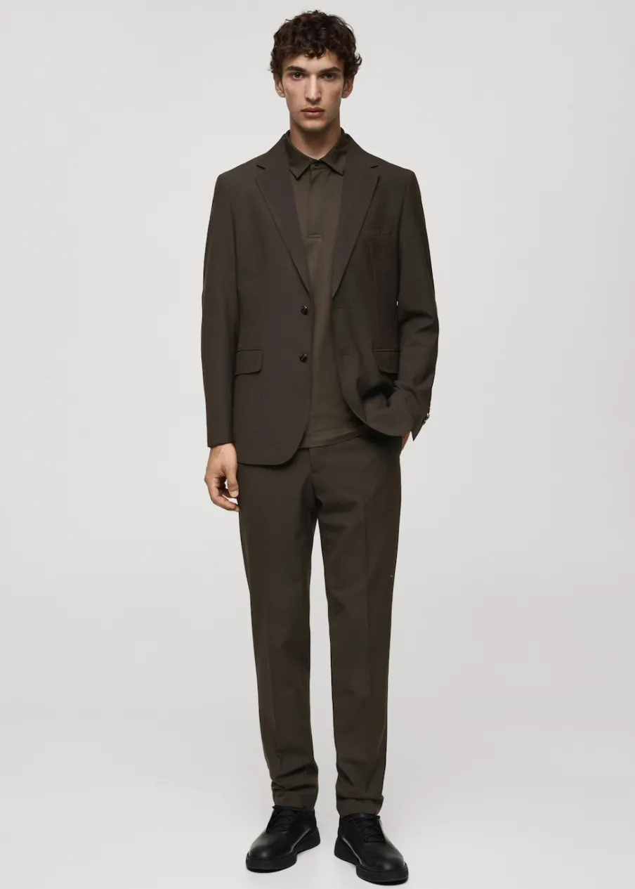 Kolekcja Performance. Tkanina mieszanka wełny. Wrinkle free: niegniotąca się tkanina. Comfort stretch: elastyczna tkanina dla większego komfortu. Slim-fit. Kieszeń wpuszczana na piersi. Dwie kieszenie z patkami z przodu. Kieszenie wewnętrzne. Termoregulacyjna: ta tkanina zapewnia optymalną przepuszczalność powietrza, by utrzymać stałą temperaturę ciała. Można prać w pralce w 30º. Klapy otwarte. Dwie szlice z tyłu. Model ma 190 cm wzrostu i nosi rozmiar 50. Komfort: to ubranie zapewnia pełną swobodę ruchu i odzyskuje swój pierwotny kształt. Zapięcie na guziki z przodu. Długi rękaw z zapięciem na guziki.