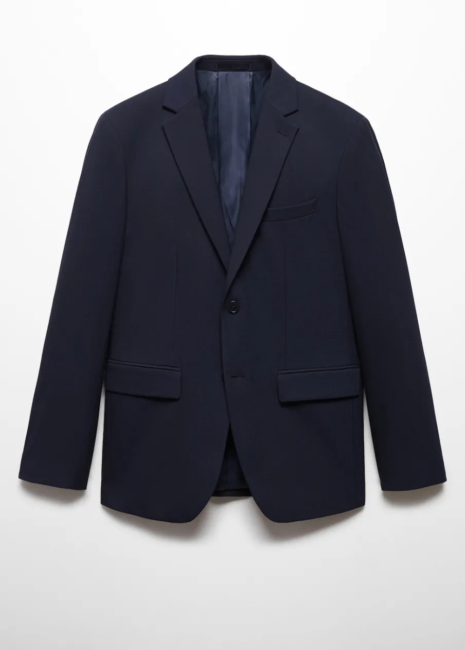 Slim-fit. Wykonano z poliestru z recyklingu: wytrzymałego, oddychającego i łatwego w pielęgnacji materiału, dzięki czemu ubranie jest wygodne w użytkowaniu. Comfort stretch: elastyczna tkanina dla większego komfortu. Wykonano z poliestru: wytrzymałego, oddychającego i łatwego w pielęgnacji materiału, dzięki czemu ubranie jest wygodne w użytkowaniu. Struktura w jodełkę. Klapy z nacięciem. Kieszeń wpuszczana na piersi. Dwie kieszenie z patką z przodu. Podwójne rozcięcie z tyłu. Zapięcie na guziki. Wewnętrzna podszewka. Wewnętrzna kieszeń. Model ma 185 cm wzrostu i nosi rozmiar 50. Długi rękaw z zapięciem na guziki. Komfort: to ubranie zapewnia pełną swobodę ruchu i odzyskuje swój pierwotny kształt.
