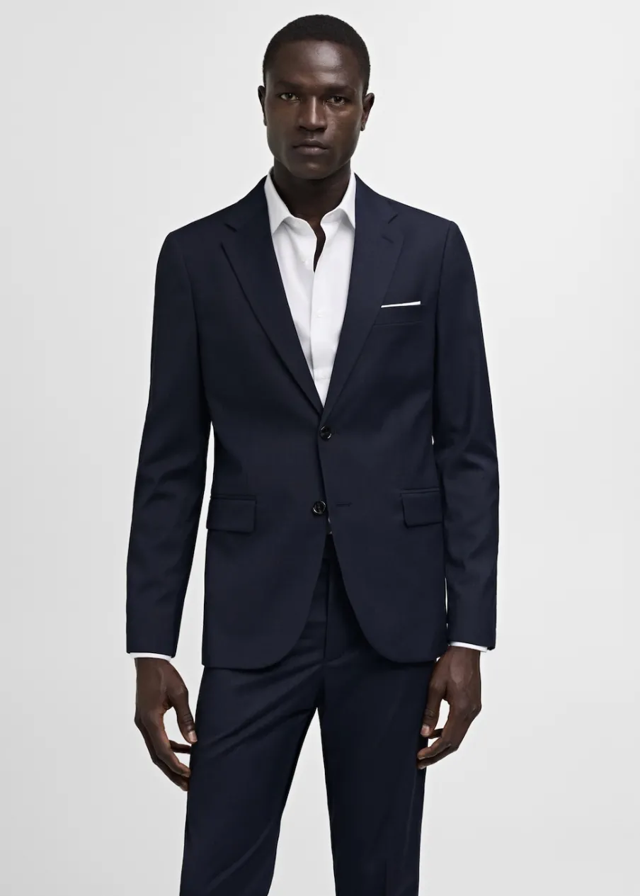Slim-fit. Comfort stretch: elastyczna tkanina dla większego komfortu. Klapy otwarte z butonierką. Zapięcie na dwa guziki z przodu. Kieszeń wpuszczana na piersi. Dwie kieszenie z patkami z przodu. Podwójne rozcięcie z tyłu. Wewnętrzna podszewka. Trzy kieszenie wewnętrzne. Model ma 185 cm wzrostu i nosi rozmiar 50. Długi rękaw z zapięciem na guziki. Komfort: to ubranie zapewnia pełną swobodę ruchu i odzyskuje swój pierwotny kształt.