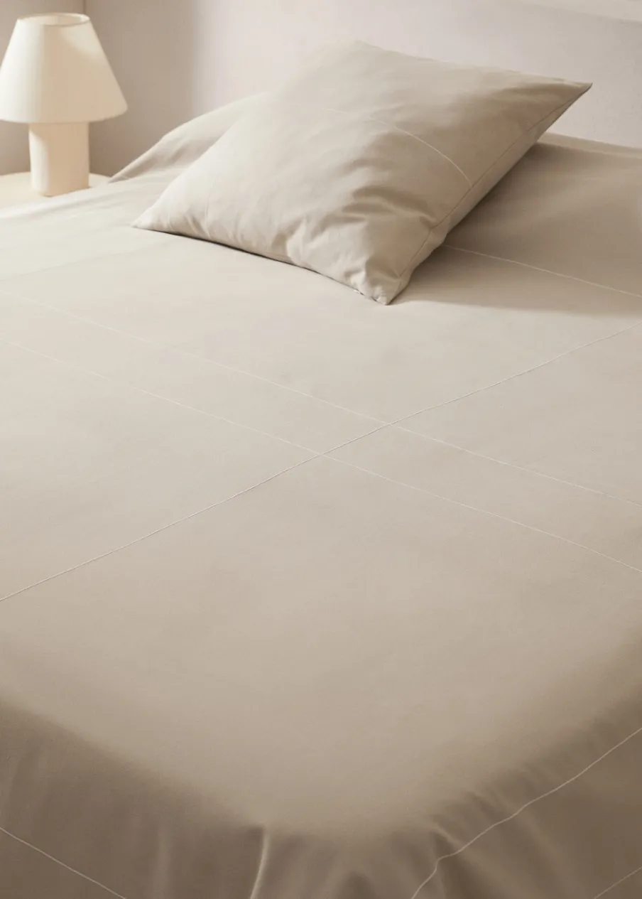 Łóżko 130/140/150 cm. Wymiary: 230 x 250 cm. Dekoracyjne wyhaftowane linie. Zestaw tę narzutę z pasującą poszewką na jaśka. Tkanina z 100% bawełny.