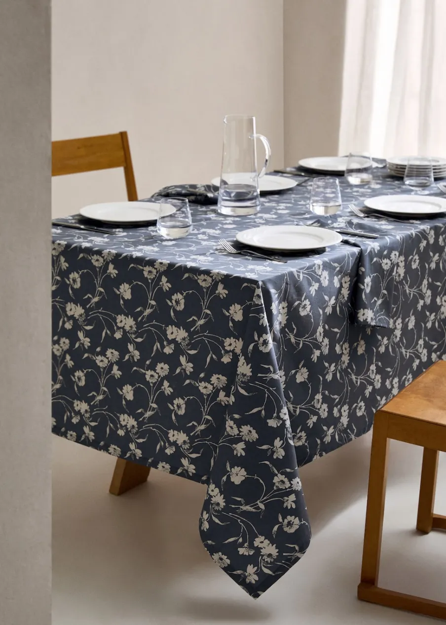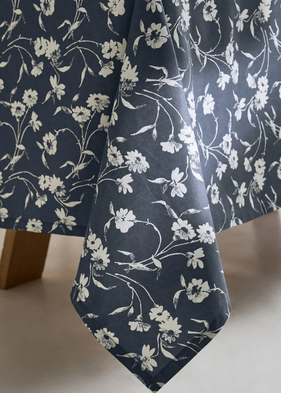 Wymiary: 150 x 250 cm. Tkanina z 100% bawełny. Wodoodporny materiał. Nieprzemakalny materiał. Kwiatowy deseń. Połącz z innymi produktami z kolekcji. Woskowana tkanina diagonal. Idealny wybór, aby dodać świeżości i elegancji do nakrycia stołu. Obrus bawełniany z powłoką żywiczną jest odporny na wodę i plamy, można go łatwo wyczyścić wilgotną ścierką. Chroń swój stół ze stylem i ciesz się dłużej swoim obrusem.